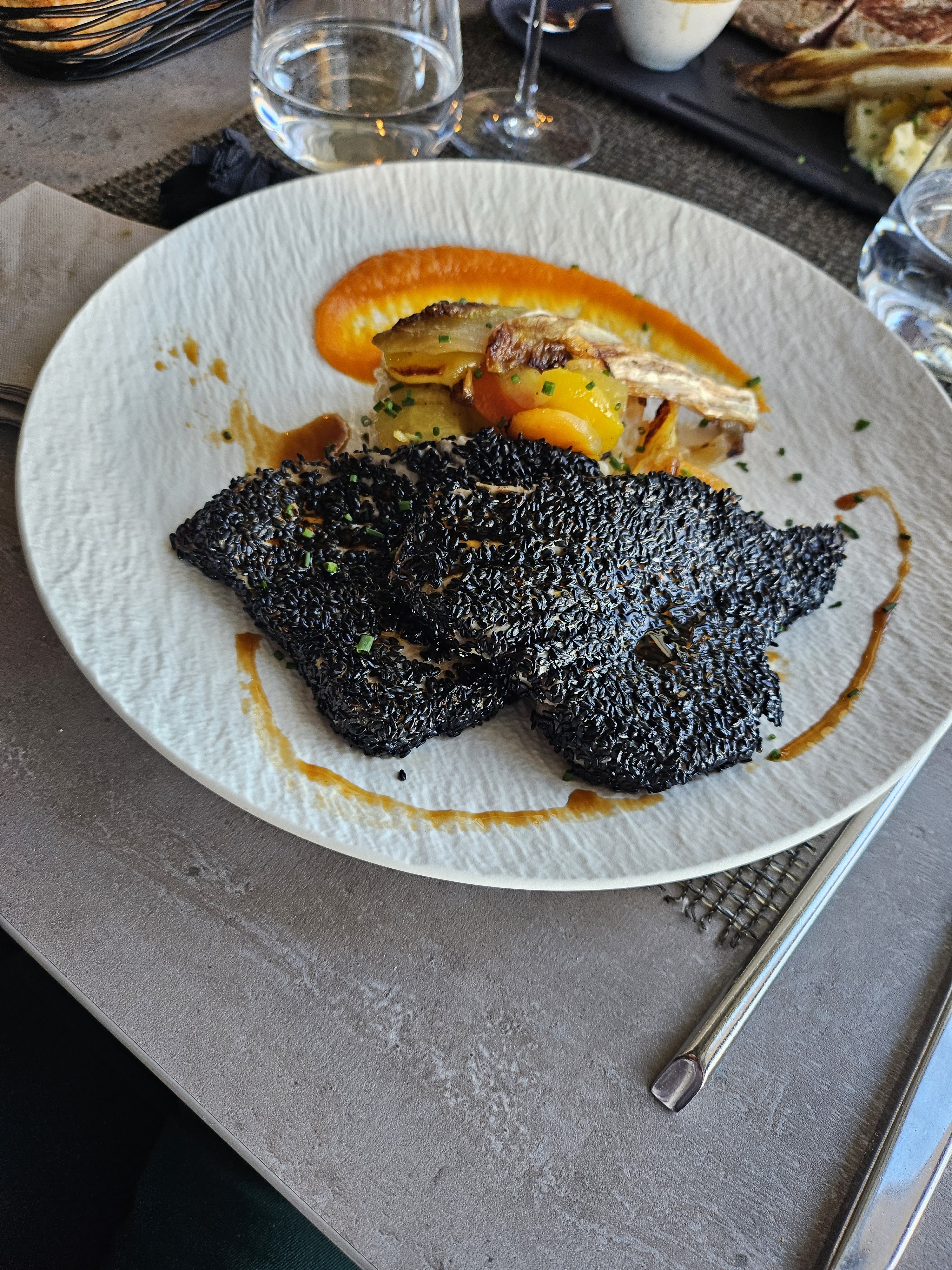 Petite pépite cachée derrière la jardinerie dans une zone commerciale. D'abord le décor est très soigné, moderne, cosy. Ensuite l'accueil et le service sont parfait, le serveur adorable, et enfin les plats... Des petits bijoux bien présentés et délicieux, avec de bons produits. Mention spéciale au mi-cuit de thon en croûte aux deux sésames (juste merveilleux) servi avec un fantastique risotto de petit épeautre blanc qui je me souviens bien. Une découverte crémeuse mémorable. Merci encore, nous reviendrons sûrement !