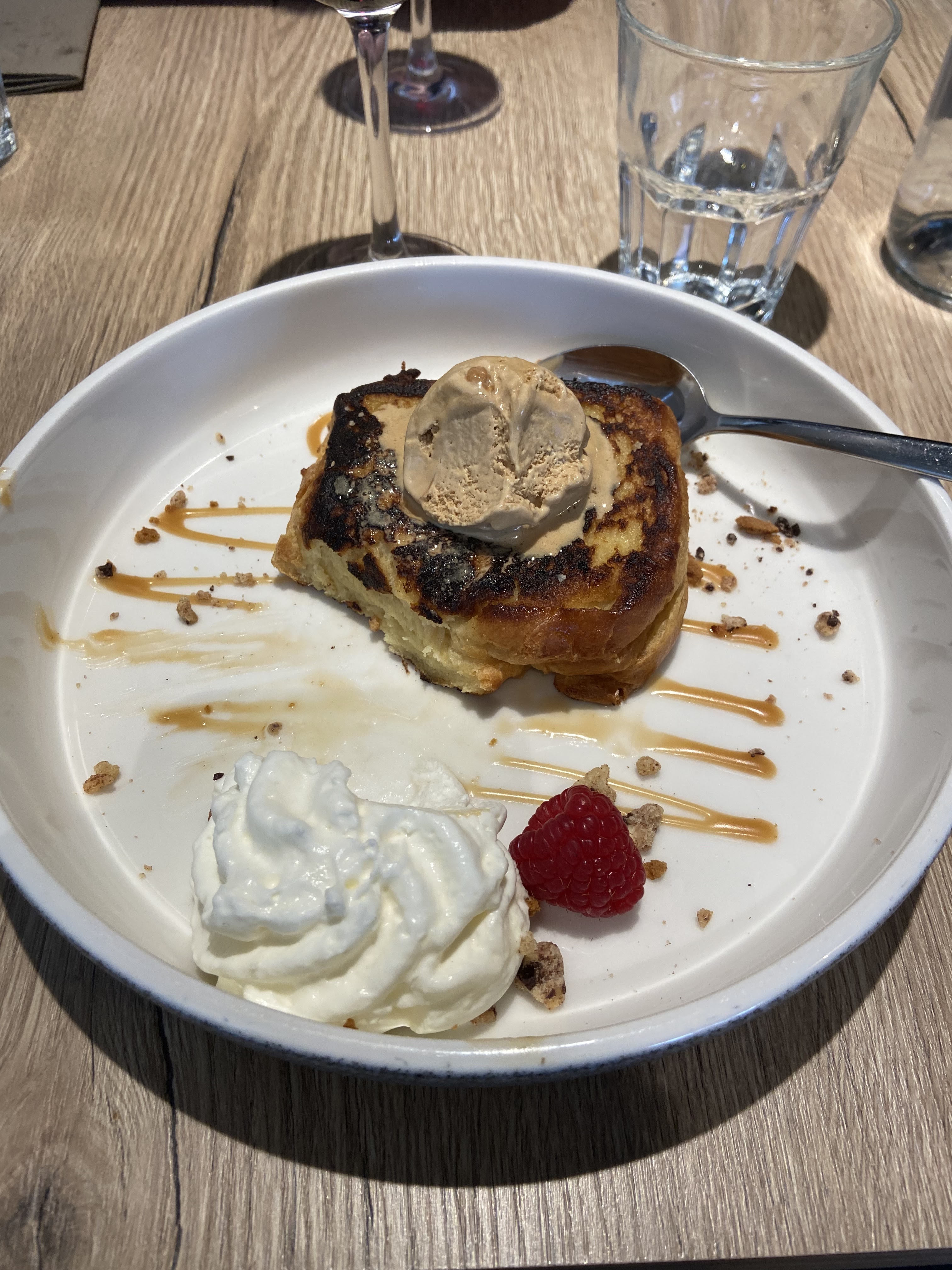 Resto rapide, plats un peu classiques et services assez rapide et polis mais incisif Point positif : la crème brûlée est vraiment préparée comme il se doit, et servie froide avec le sucre chauffé 👌🏻