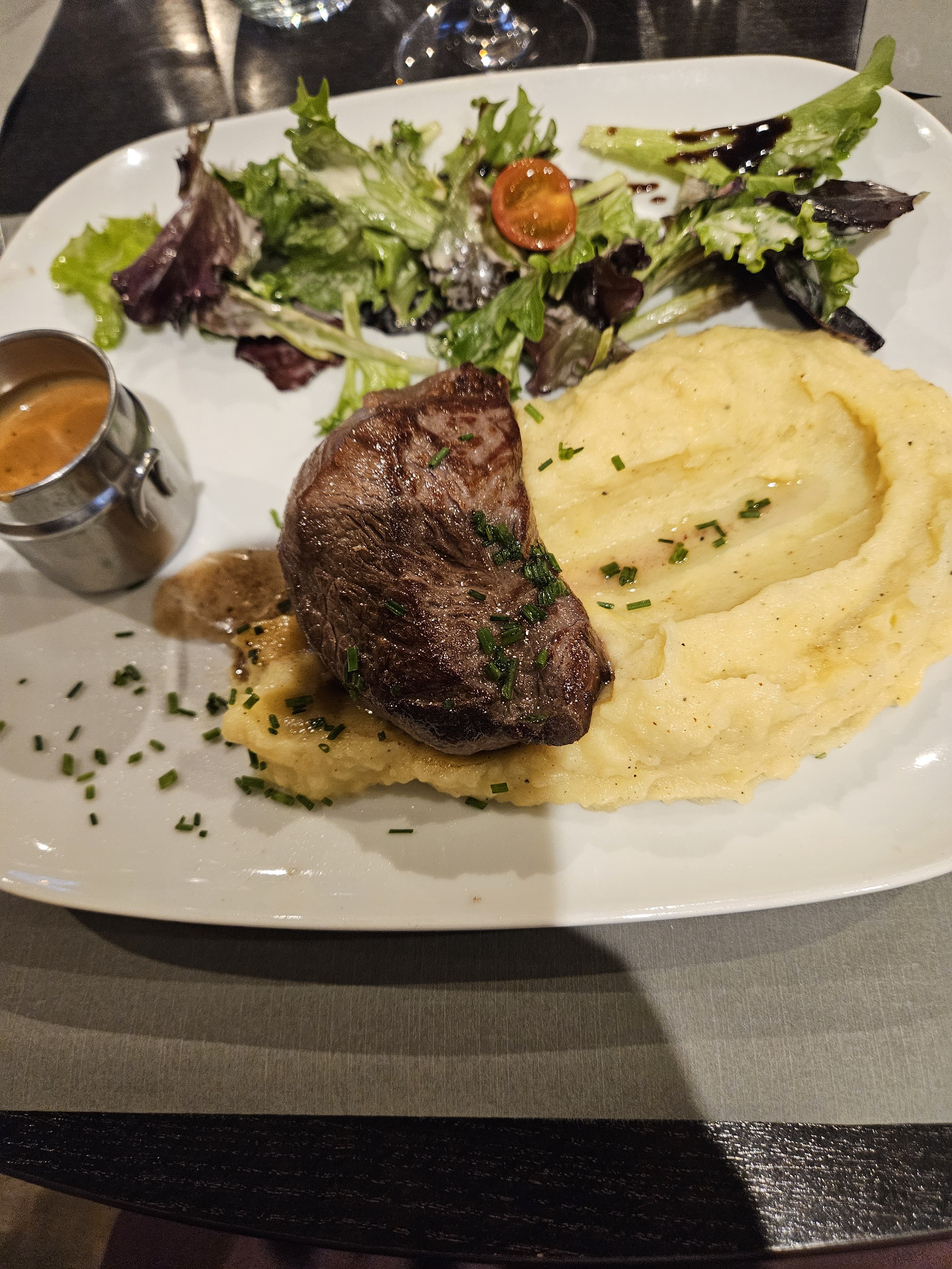 La viande (entrecôte) avait trop de gras. La qualité n'était pas au niveau du prix