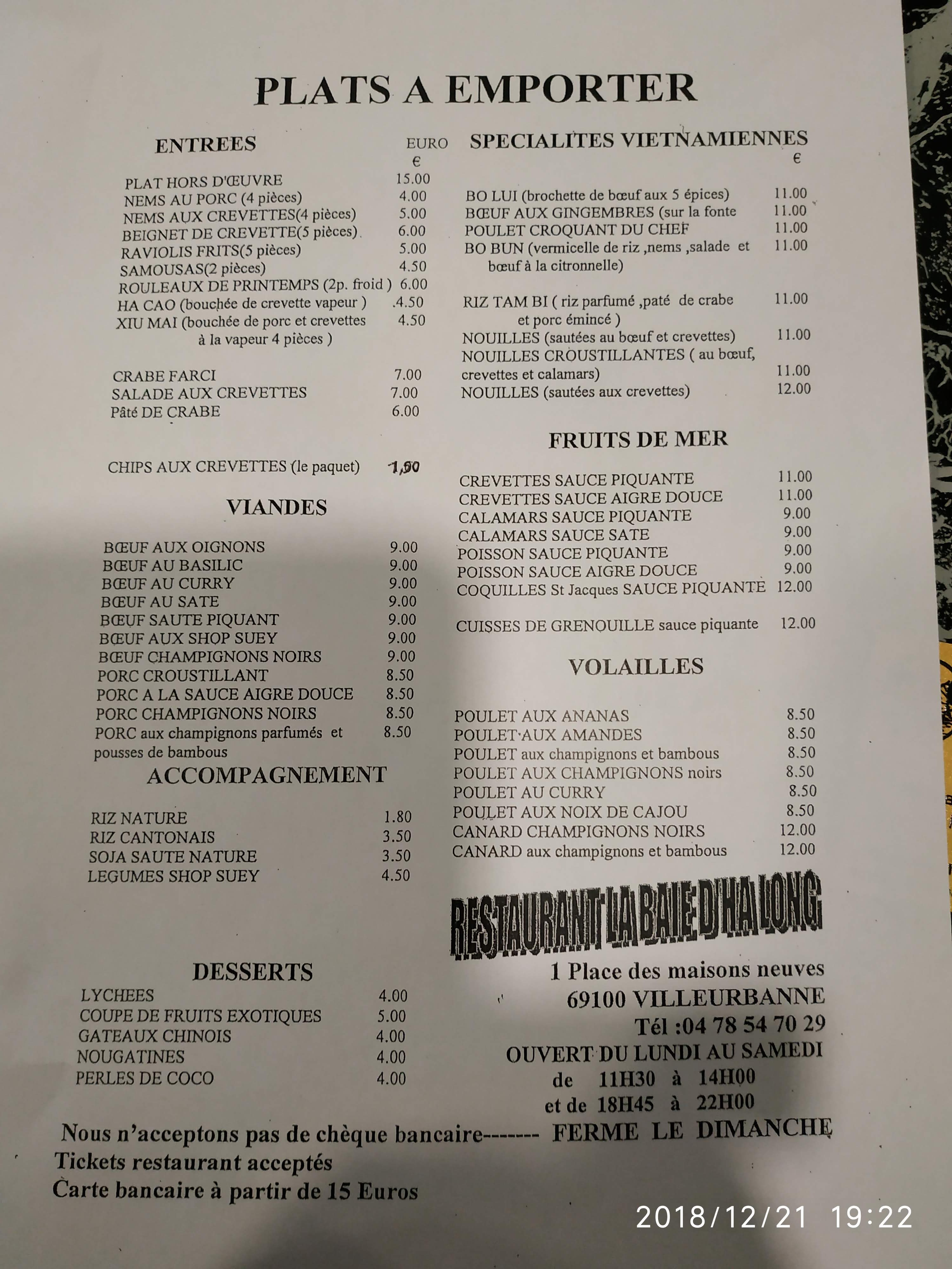 Voici toutes les informations sur le Restaurant vietnamien Restaurant La Baie d'Halong qui ce trouve au 1 Pl. des Maisons Neuves, 69100 Villeurbanne (69). Sur cette fiche vous trouverez les photos, l'adresse, les horaires d'ouverture, le numero de téléphone et les avis clients.Vous pouvez églement rédiger un avis si vous le souhaitez en bas de page.
