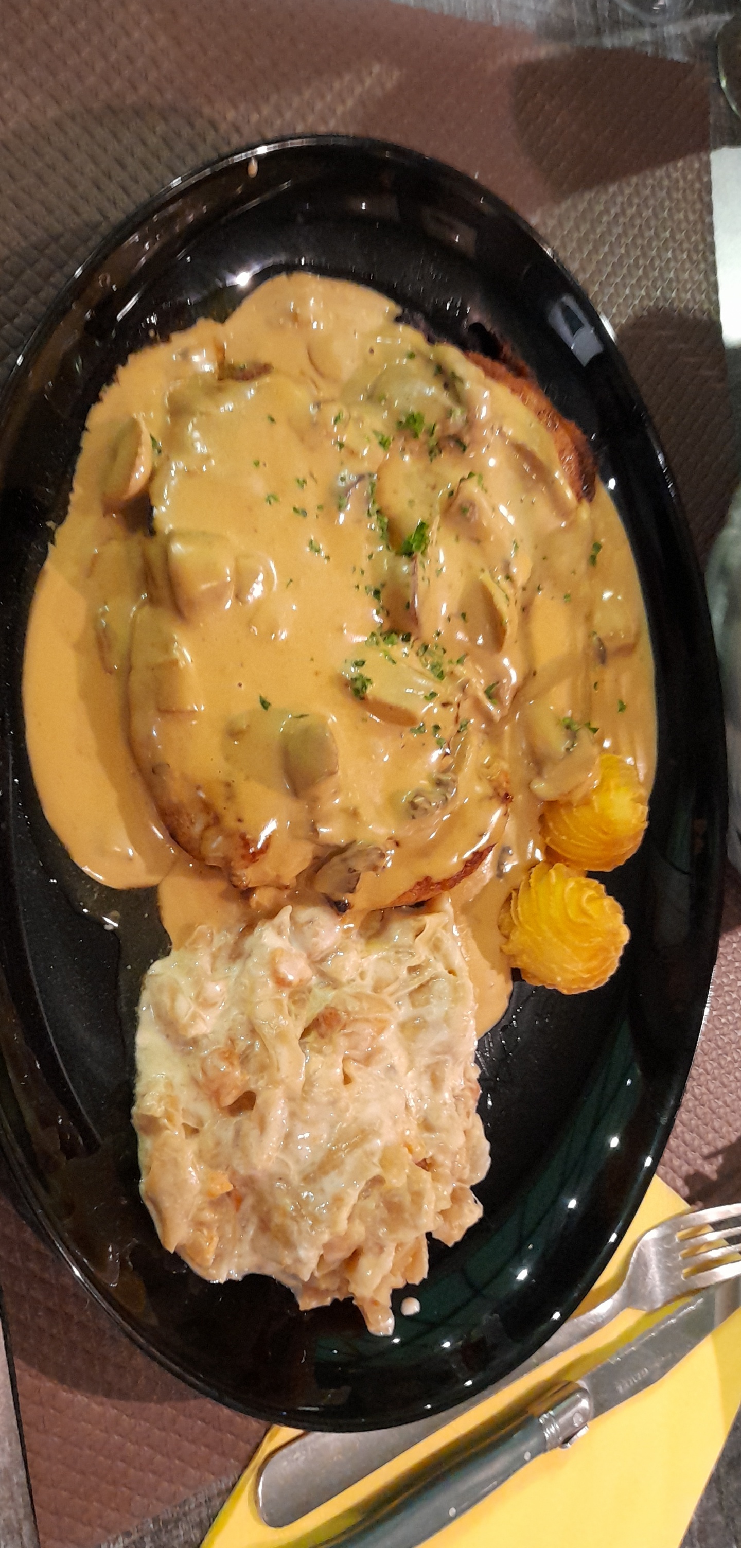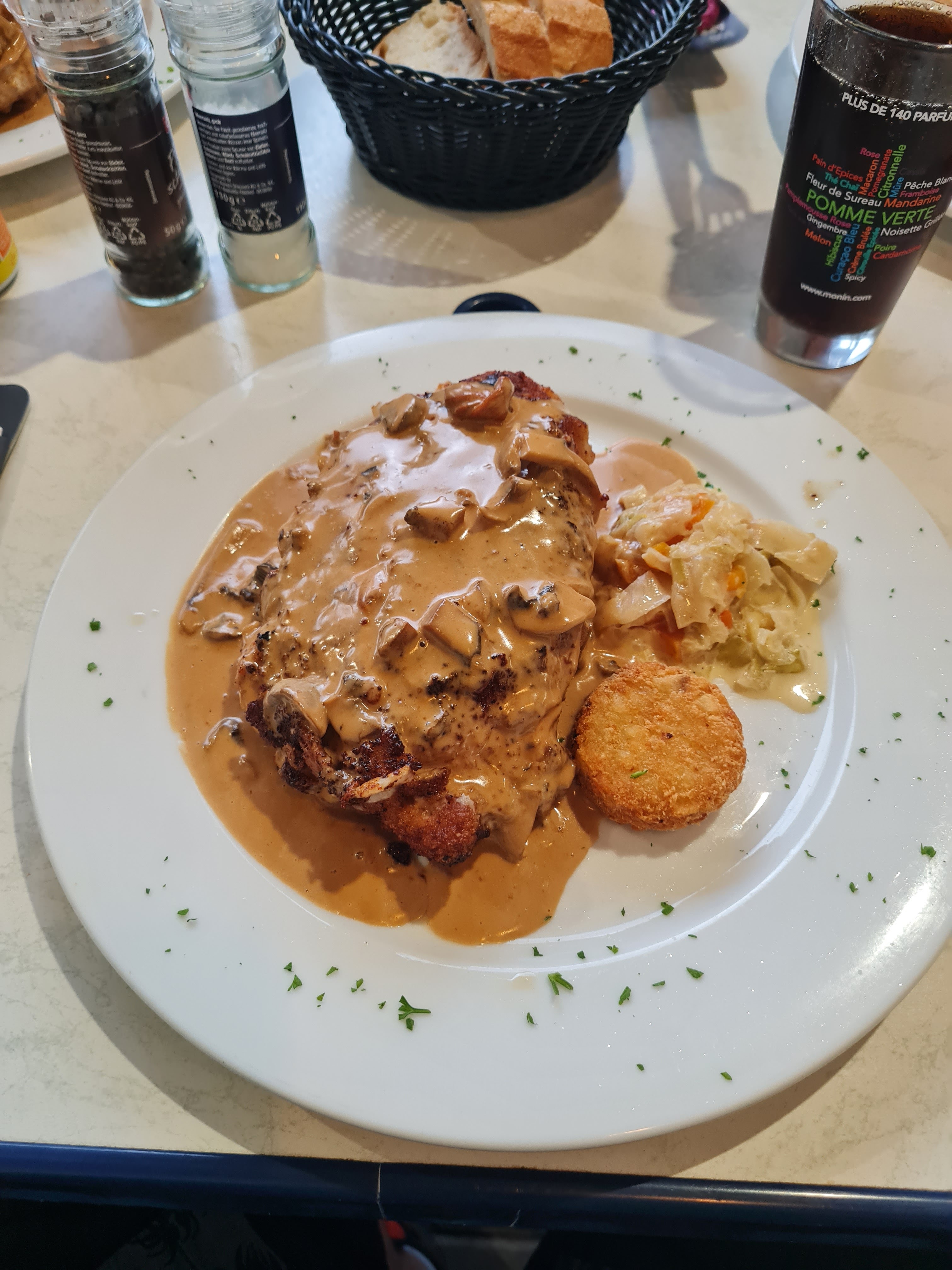 Première fois aujourd'hui, cordon bleu à la crème pour moi et filet maître d hôtel pour madame. Un mot : excellent ! Serveuse sympathique, cuisinier également . Rapport qualité prix très correct. Très bonne adresse. On reviendra c'est sûr !