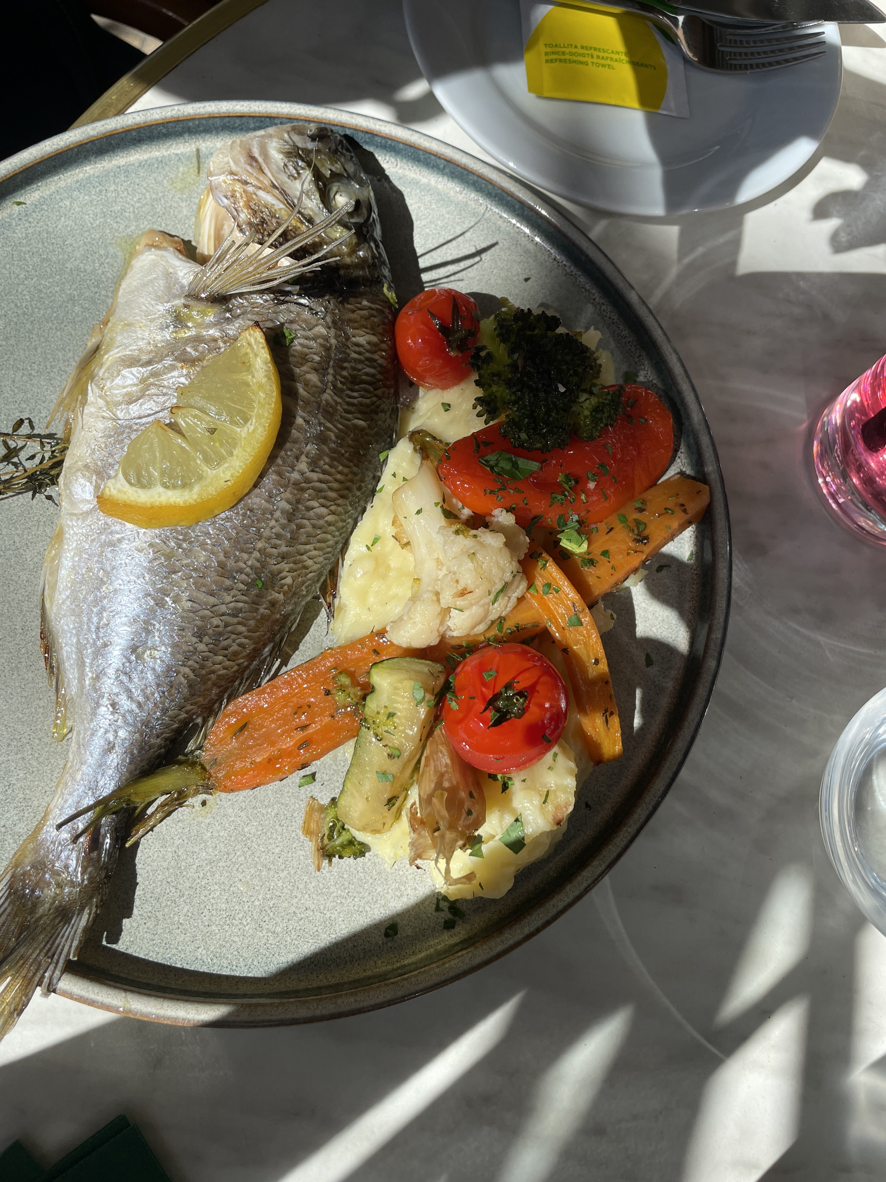 Ce restaurant avec vue sur le port est de super bonne qualité. Le service était super convivial et qualitatif. Notre serveur était à l'écoute, de bons conseils et hyper réactif. L'huile d'olive et le pain était déjà de top qualité... Cela promettait pour la suite. Le poisson était frais et à la hauteur de notre attente. Les pâtes aux couteaux et aux palourdes étaient bonnes mais elles étaient collantes. Dommage. Ceci dit, cela ne nous a pas empêchés d'apprécier notre repas... Le café gourmand était vraiment gourmet-gourmant! Super moment passé dans cet endroit.
