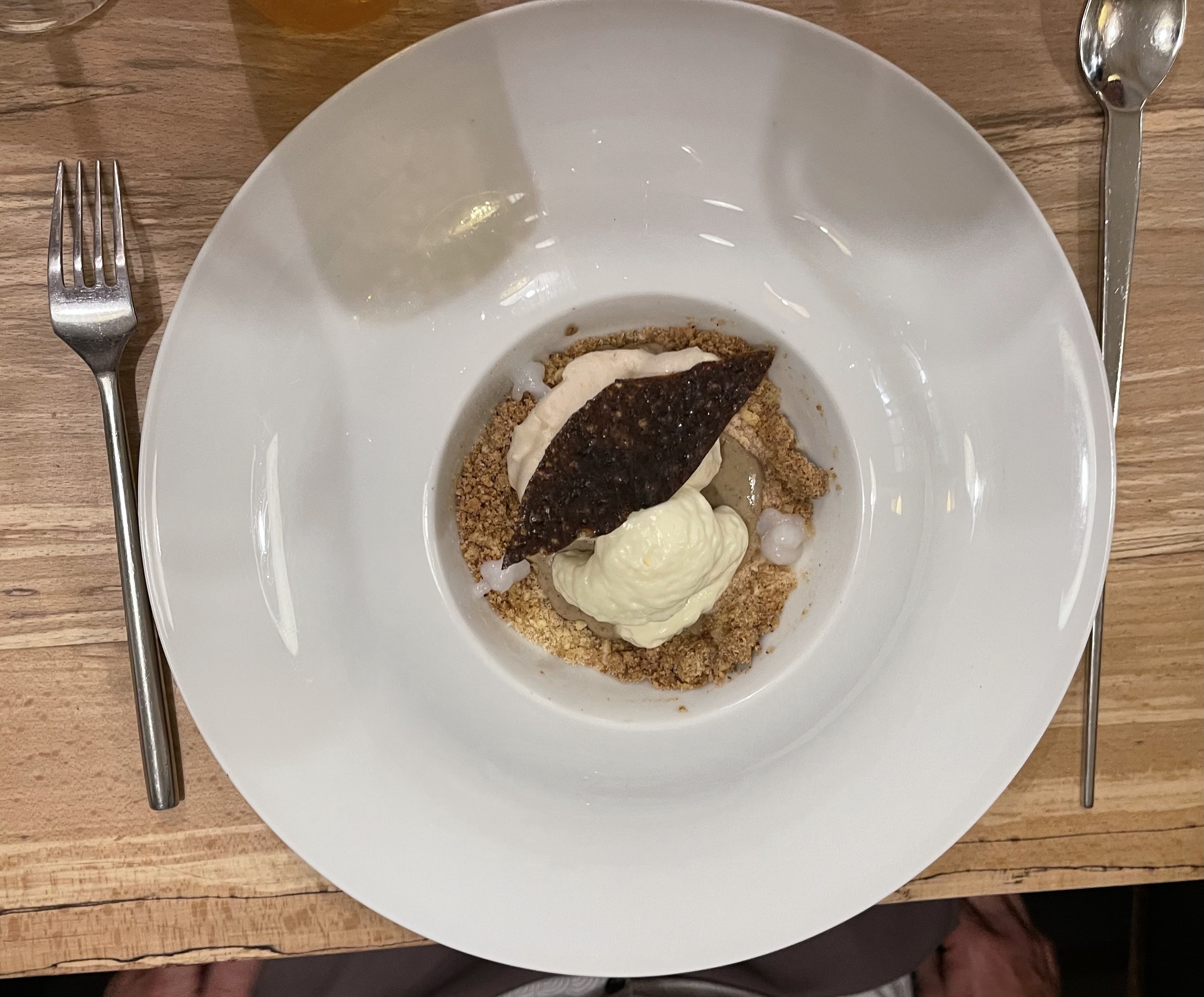 Les entrées et plats étaient vraiment excellents ! Après le dessert aux olives est très particulier nous n’avons pas approuvé mais c’est au goût de chacun sinon le reste est impeccable ! Super adresse je recommande !
