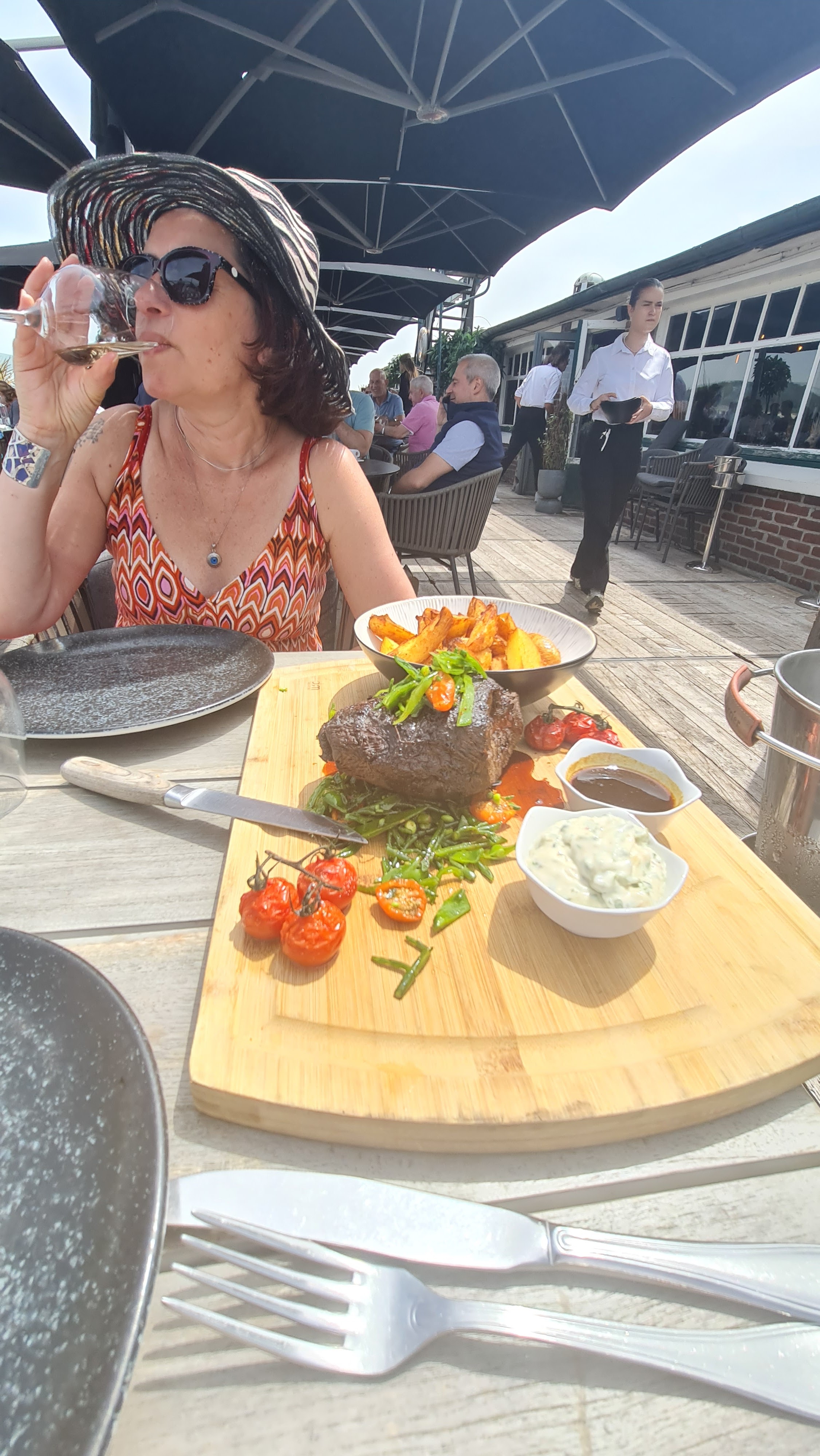 Le steak etait bon… mais ce n’etait rien comparé au serveur! Bien cuit en plus! Par forte chaleur, notre table en pierre s’est transformé en veritable plancha. Mais, il reste un incontournable au Touquet ! Par contre, faites attention a la marre haute, un olibrius m’as beaucoup derangé avec ses appels a l’aide
