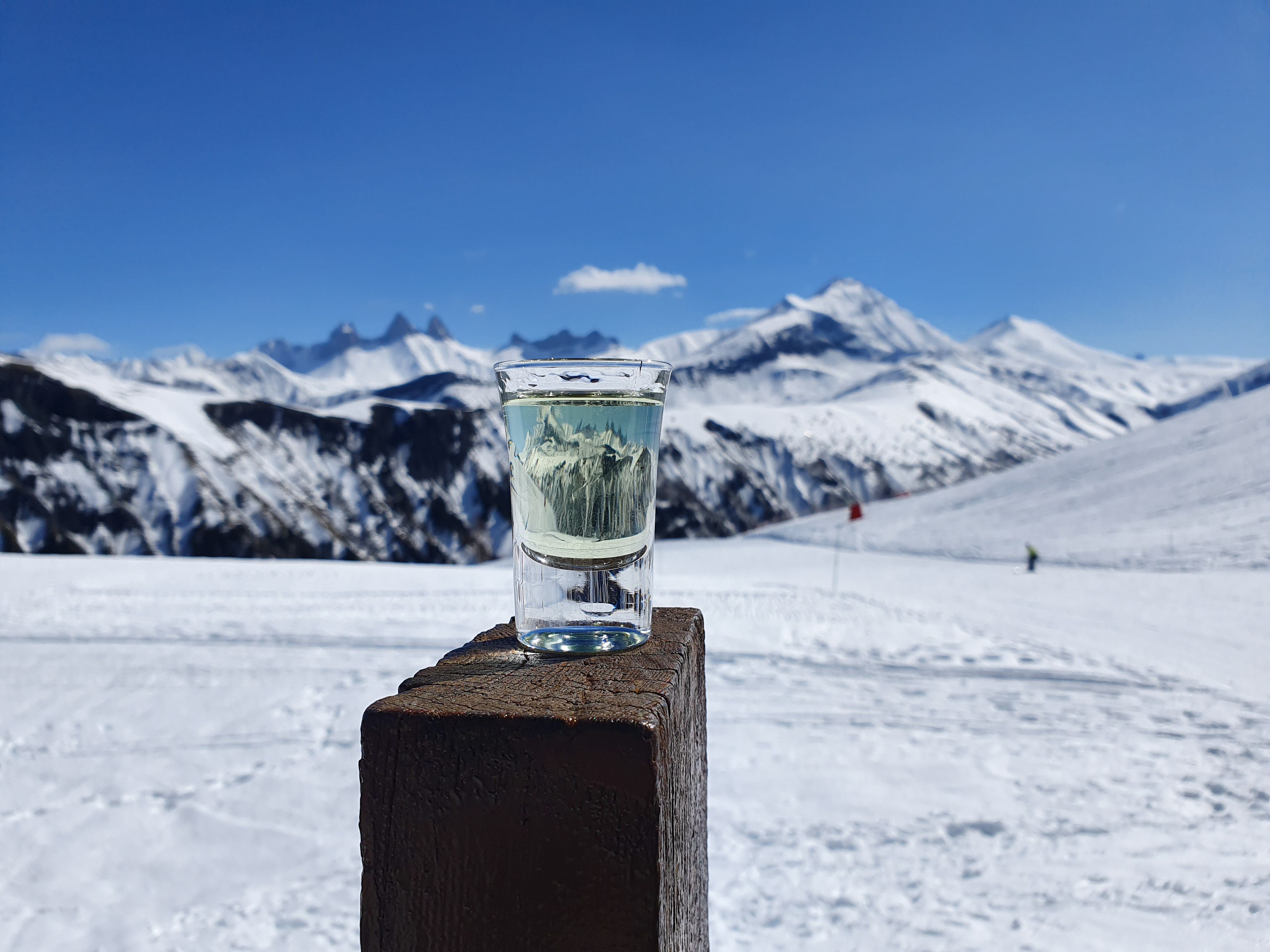 Idéal pour le déjeuner entre 2 descentes. Magnifique vue sur les aiguilles d'arves. Personnel sympathique et très professionnel. Genepi aussi...
