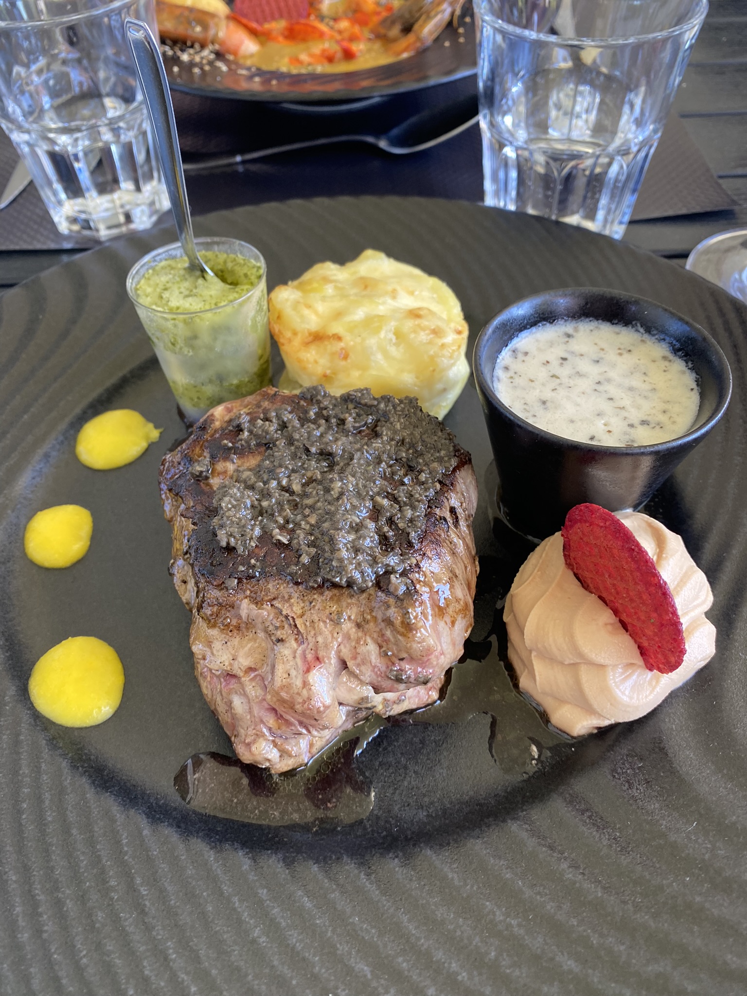 Un cadre idyllique. Des mets raffinés. La viande est succulente. Le poisson très bon. Respect des gestes barrières. Personnel attentif et très agréable. Un très bon moment de partage