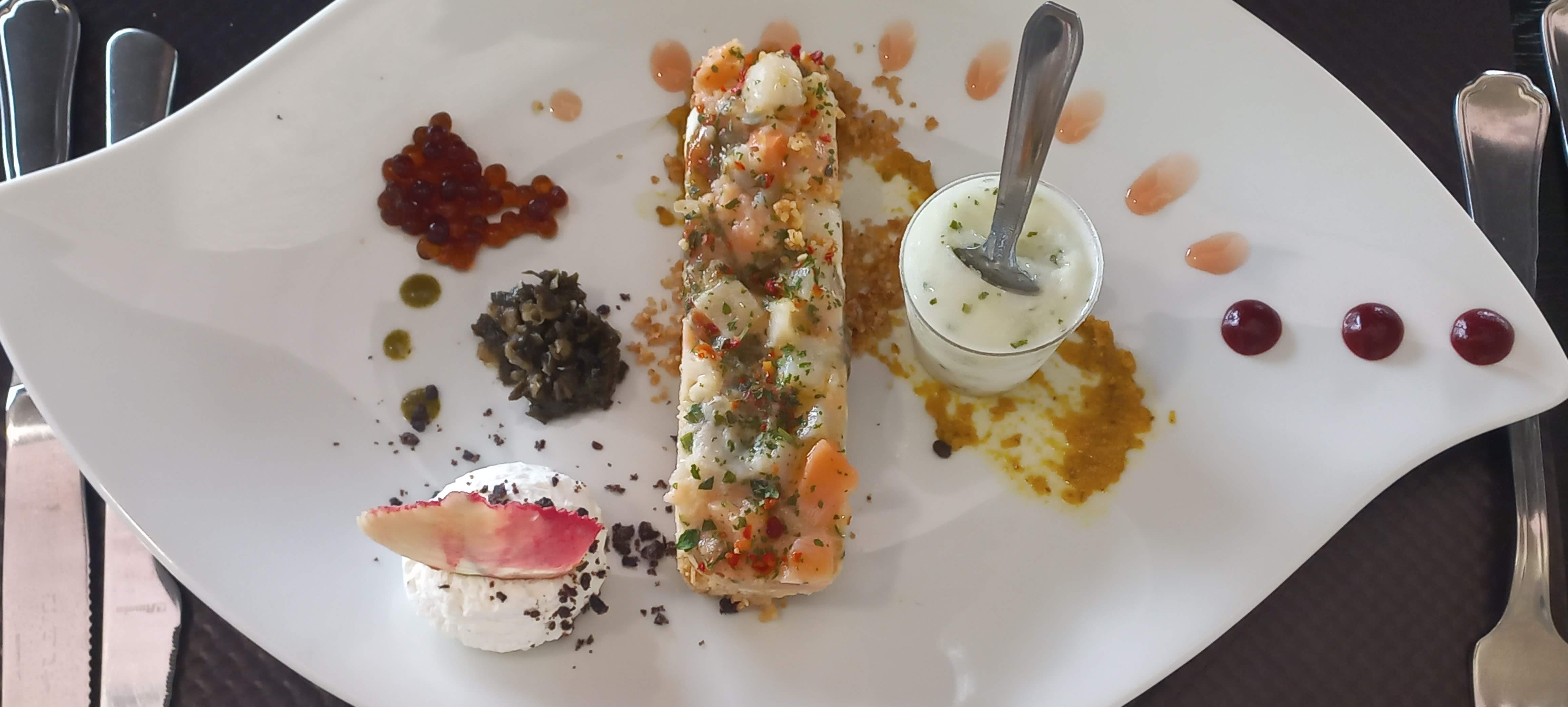 Très bon restaurant trouvé un peu par hasard lors de notre séjour dans les environs. 3menus allant de 29€ a 44€, possibilité végétarien sur demande. Nous avions le menu du rocher à 29,50€, on s'est régalé.