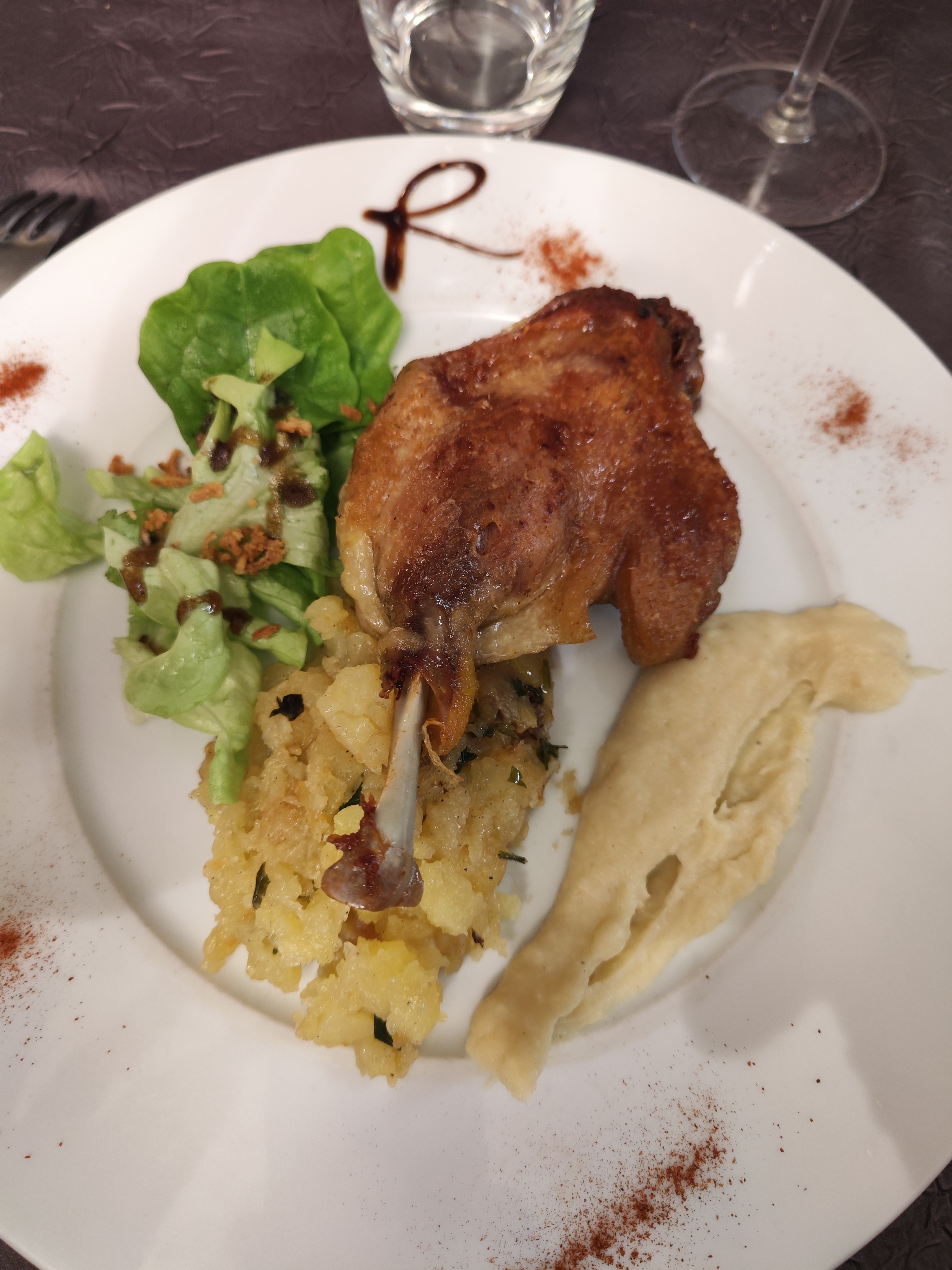 Très bonne garbure très copieuse, les truites excellentes, le filet de canard tendre...