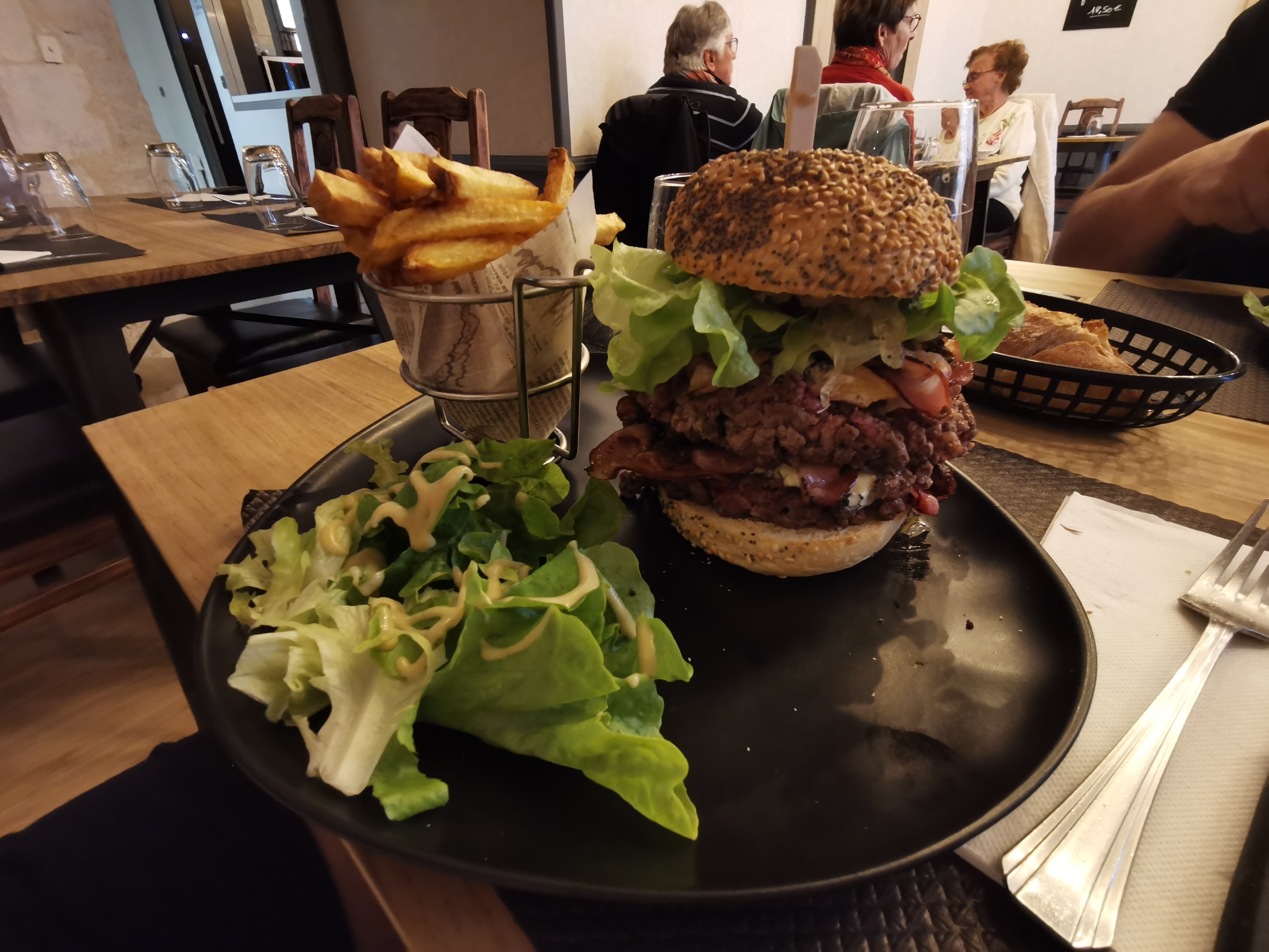 Burger excellent, viande de qualité, frites et sauces maison.