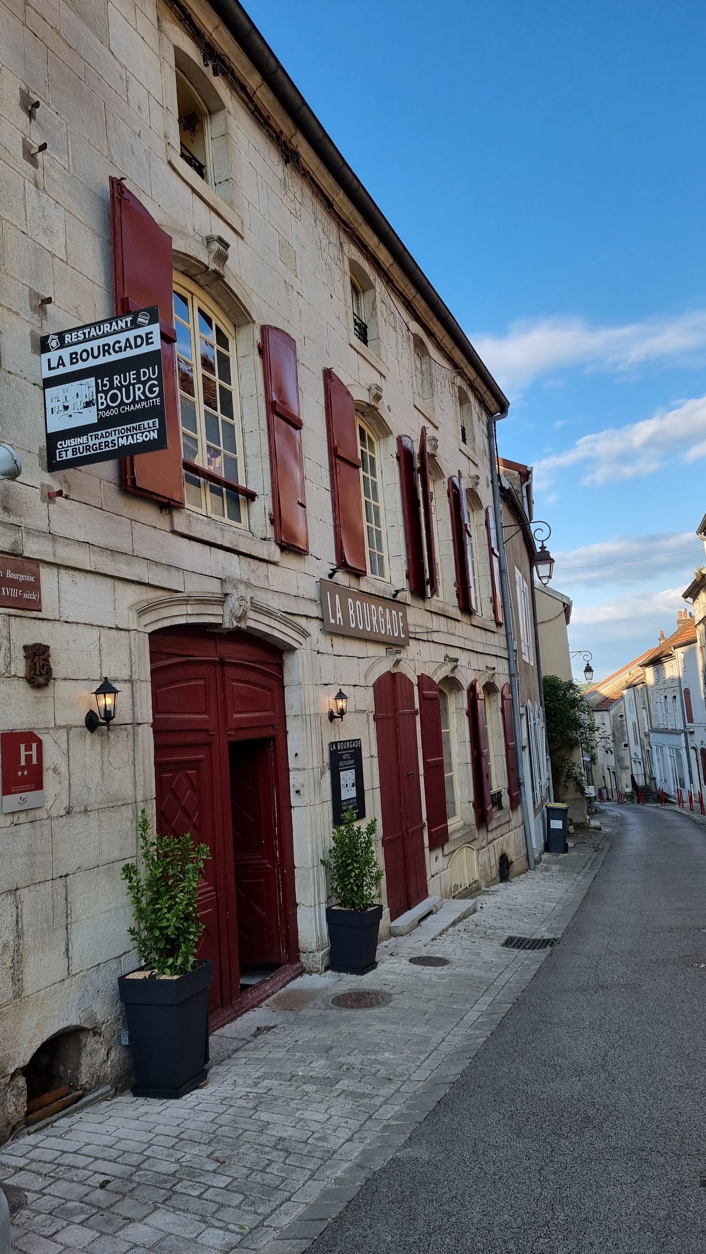 A deux pas du superbe château de Champlitte, ce petit restaurant vous accueillera avec des produits du terroir et une carte qui fait la part belle aux burgers, mais pas que ! Une entrée au chèvre réveillera vos papilles et la pièce de viande du marché, ce jour-là la poire de boeuf, était généreusement à accompagnée de frites maisons et d'une belle sauce au Langre. Une jolie étape, enfants bien venus.