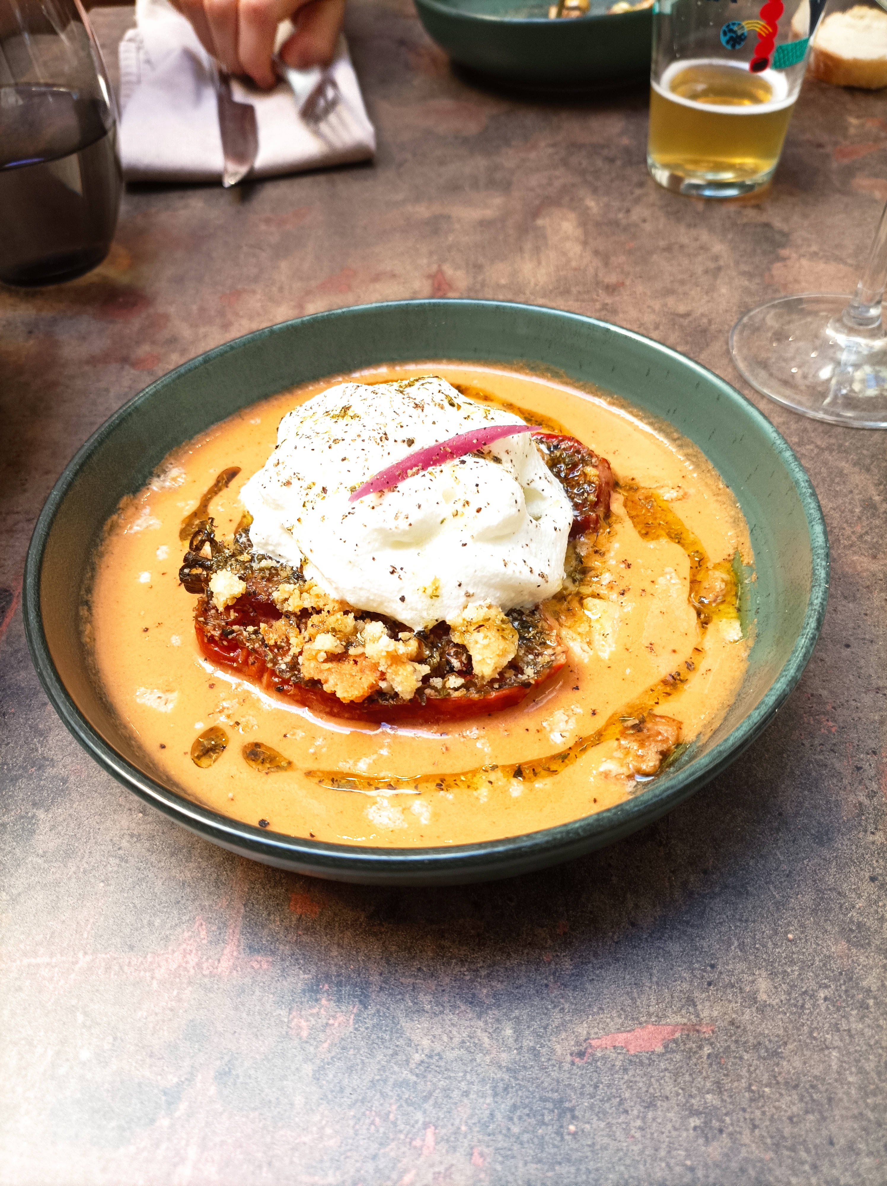 Quel bon moment! La nourriture est très bonne et originale (les végétariens sont la bienvenue d’ailleurs), le vin est bon, le service et l’équipe sont au top!