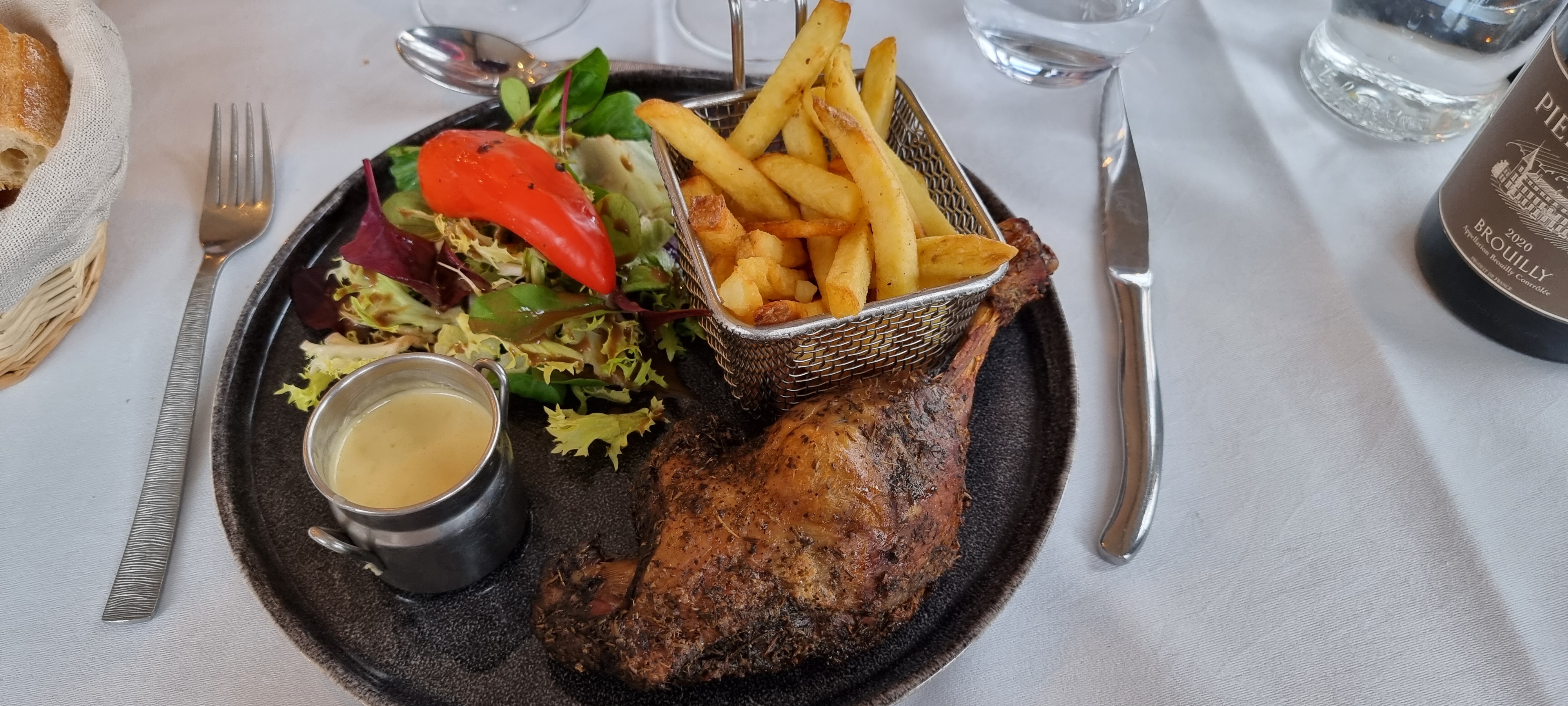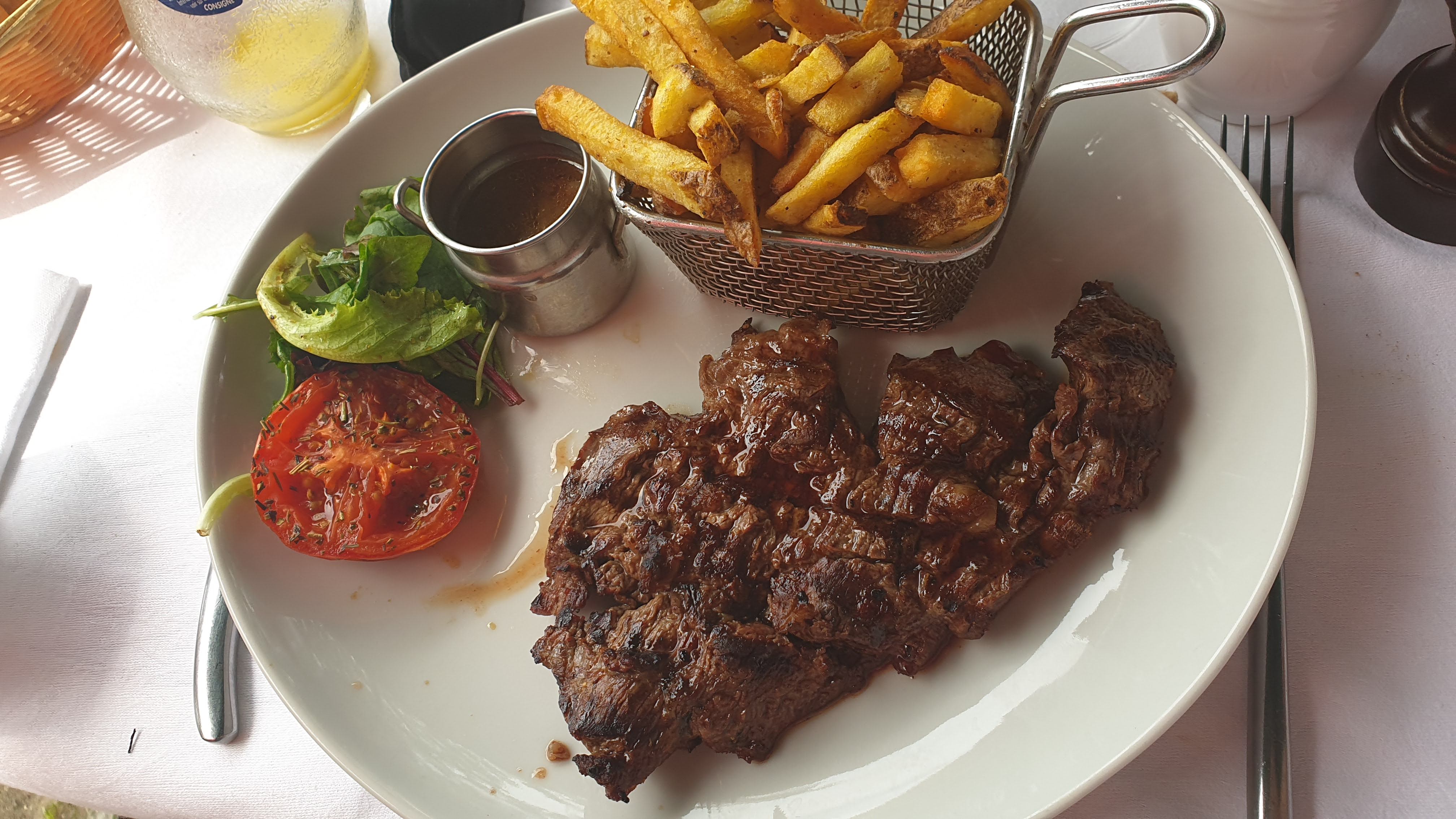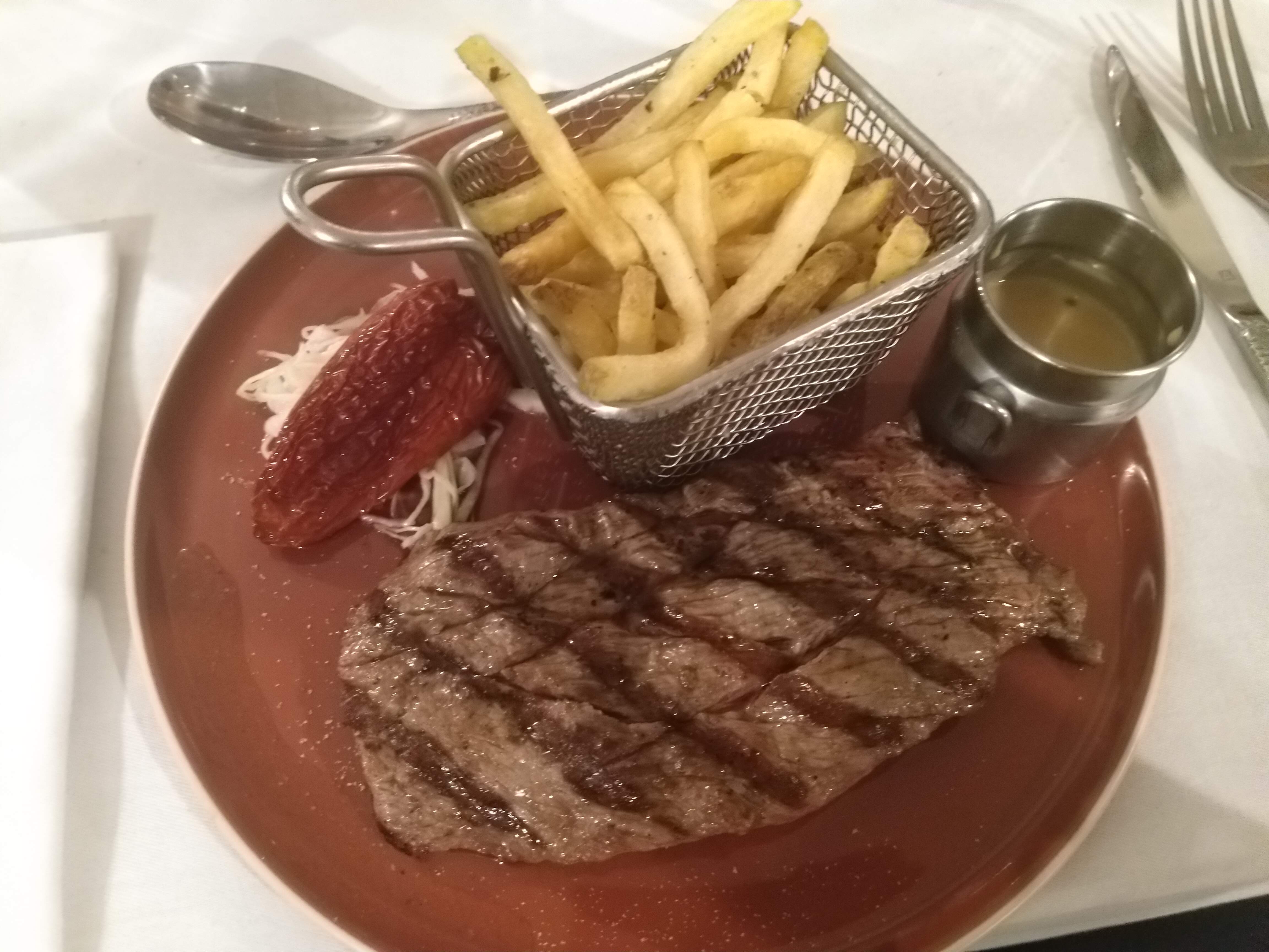 Repas excellent, de l'entrée jusqu'au dessert. La viande est très bonne (araignée de boeuf), les accompagnements (frites maison et pomme de terre cendre), la sauce aussi. Je suis assez exigente sur les crèmes brûlées, ici la crème brûlée est parfaitement onctueuse ! Les serveurs sont très sympathiques et efficaces ; big up pour un en particulier qui a un humour et une autoderision géniale ! Gardez ça, on a passé un très bon moment !