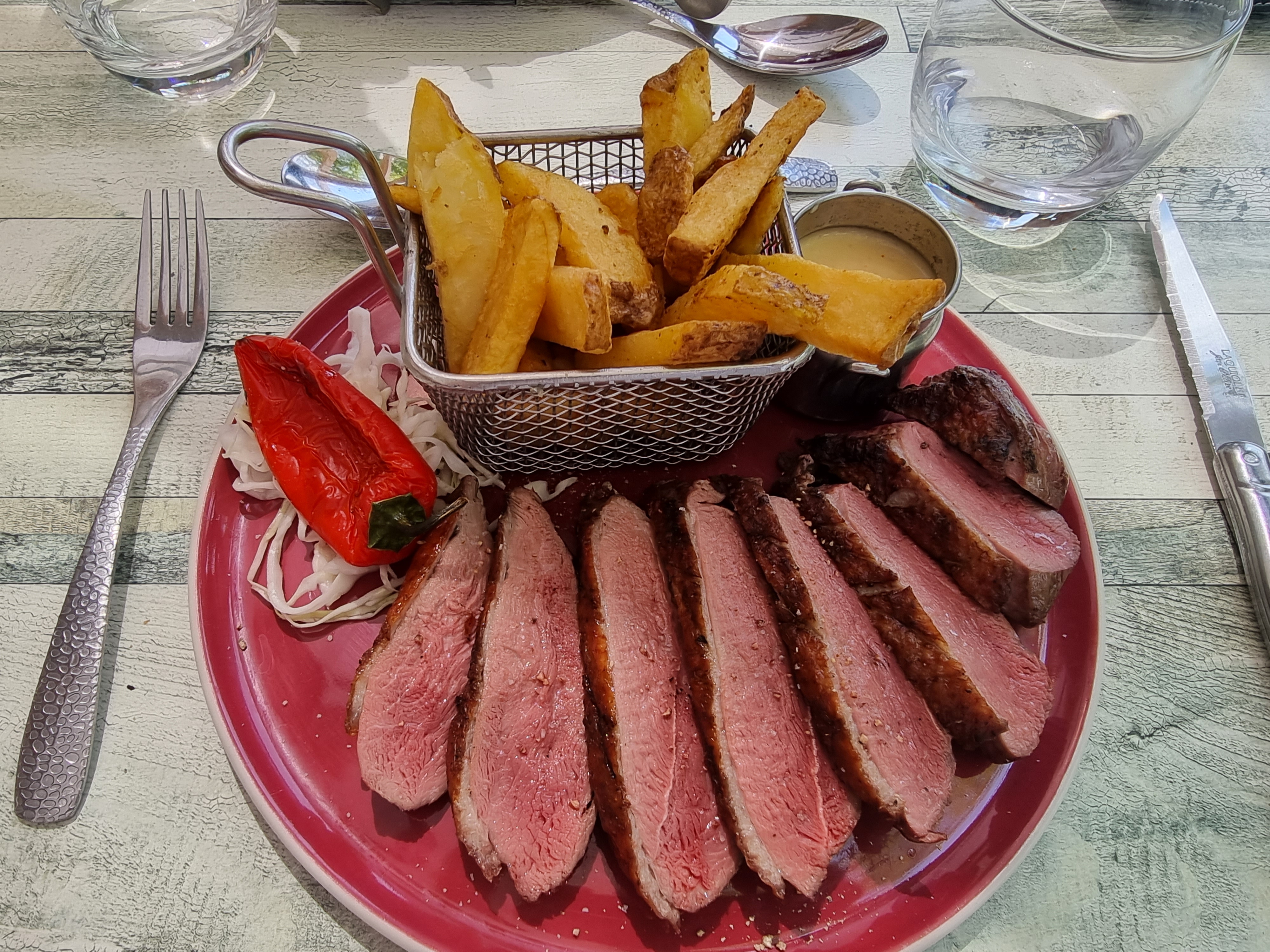 Un repas qui m a déçu une pièce de bœuf soit disant de 500 g et qui est servi découpé ,j aurai préféré que l on me la présente avant et que l on me demande si je désire qu'elle soit découpé