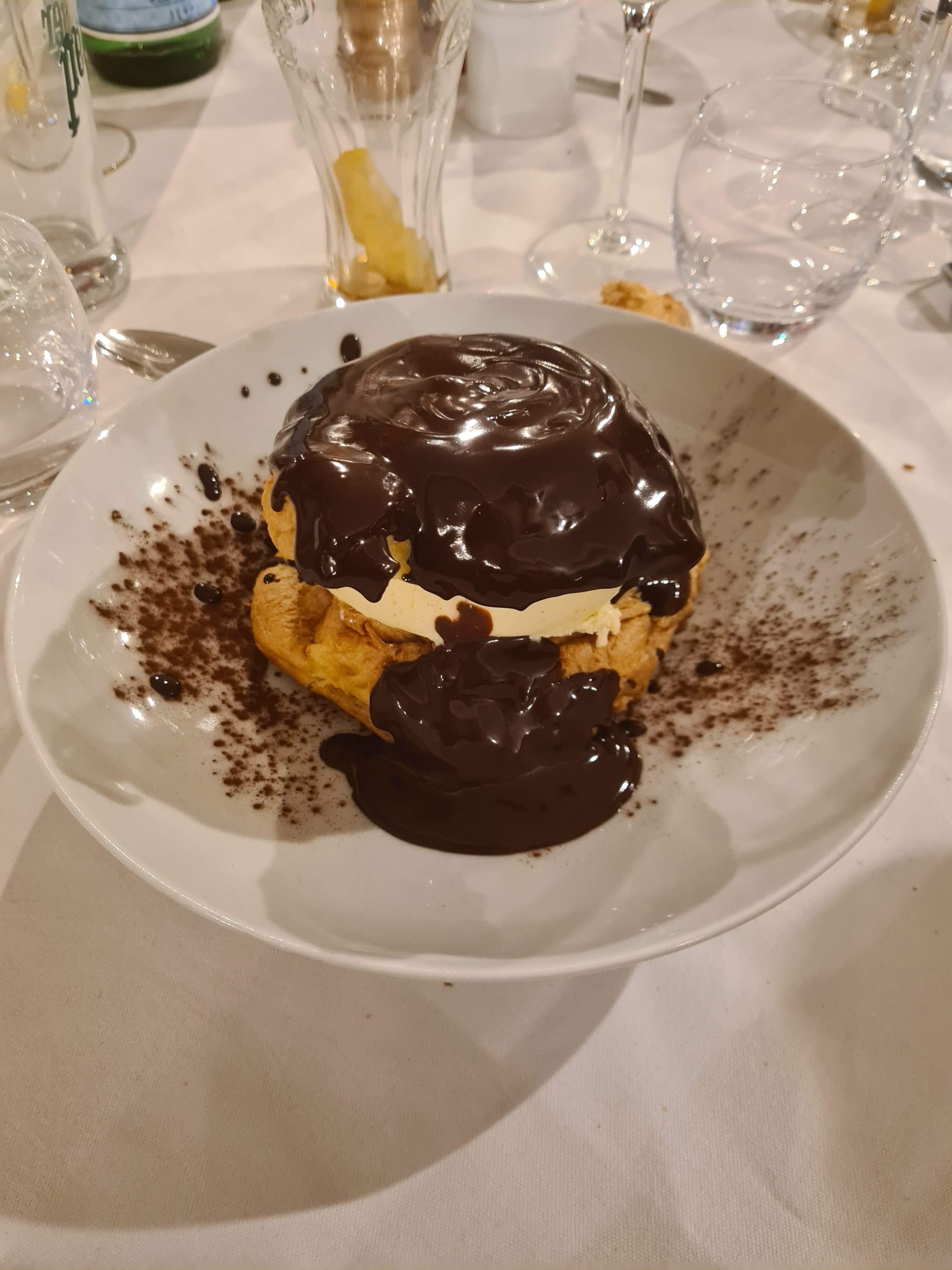 Bonne cuisine, de l'entrée au dessert. Je recommande la profiterole géante et son coulis de chocolat maison.