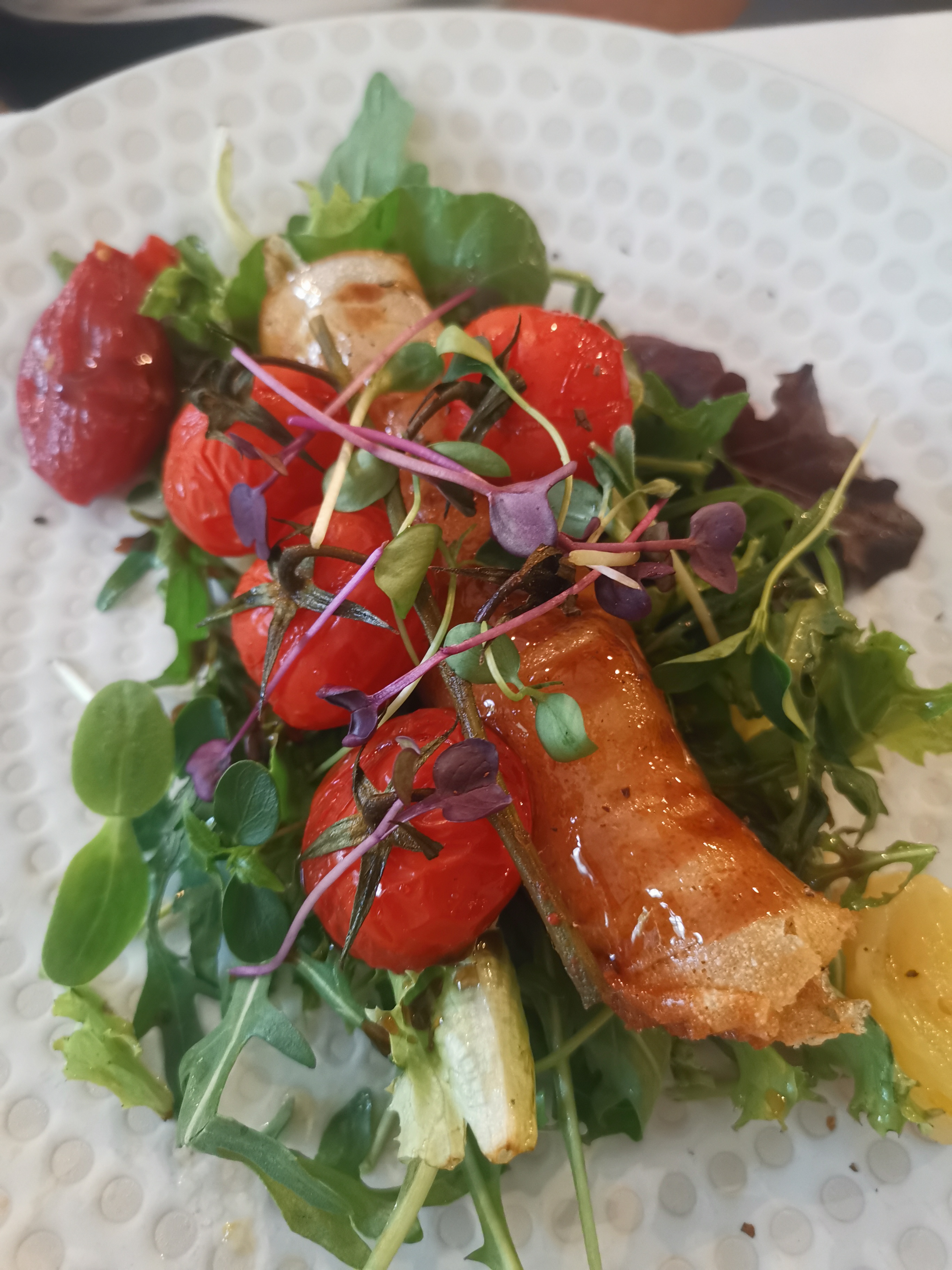Ambiance très cosy, service dynamique un peu trop rapide...arrivés vers 20h15...fin du dîner 21h30(apéritif entrée plat dessert café), un peu dommage entrées servies apéritifs pas terminés 🥵...par contre très belle cave, le concept est sympa