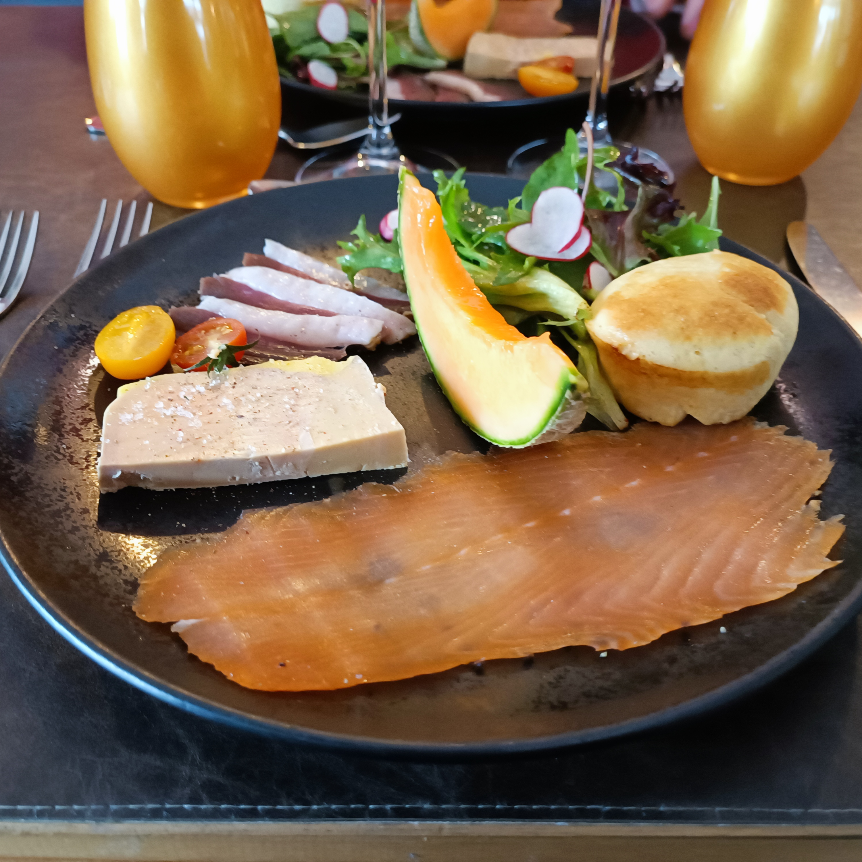 Repas fin et vraiment délicieux. Belles assiettes bien garnies. Personnel agréable.