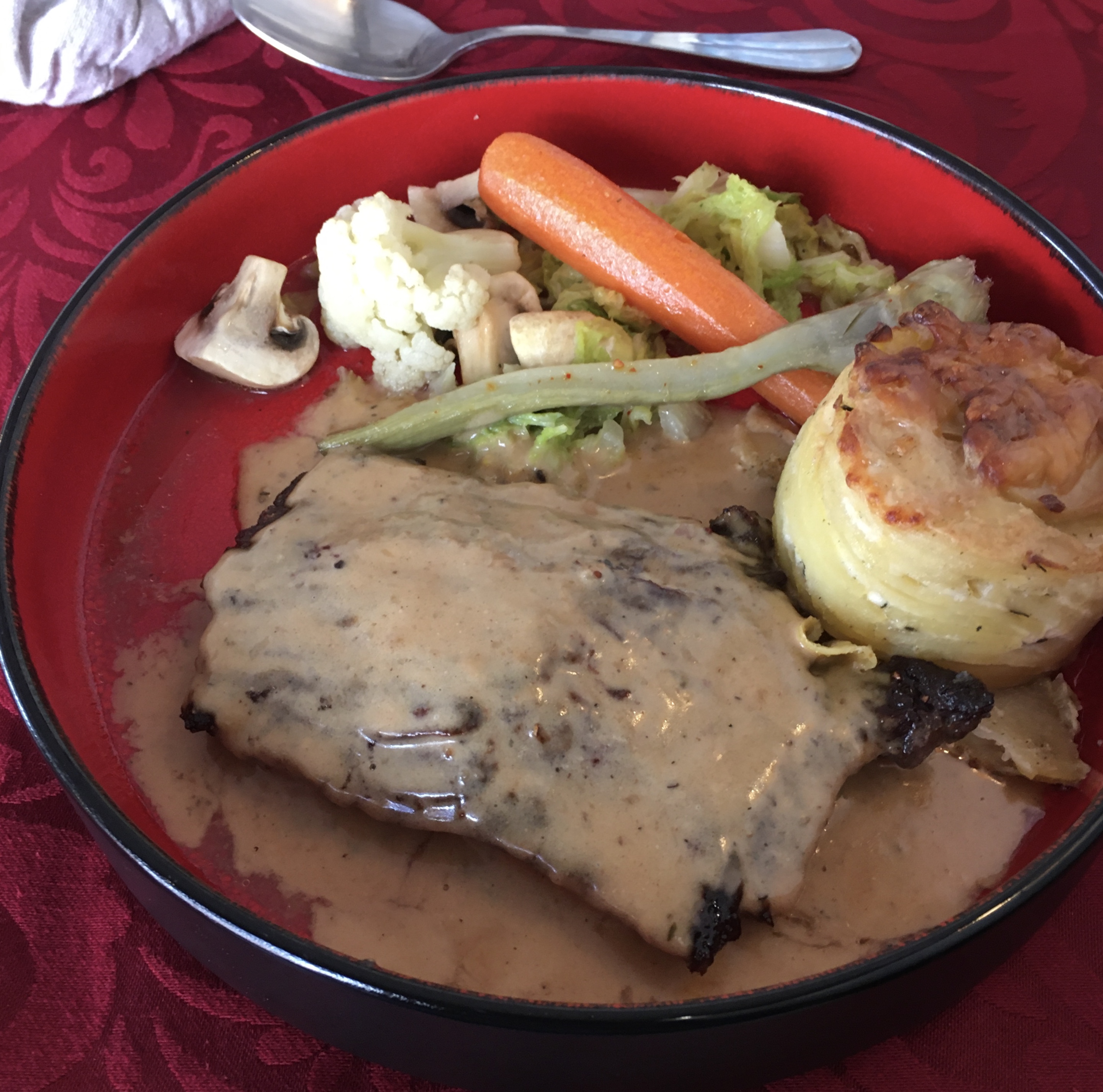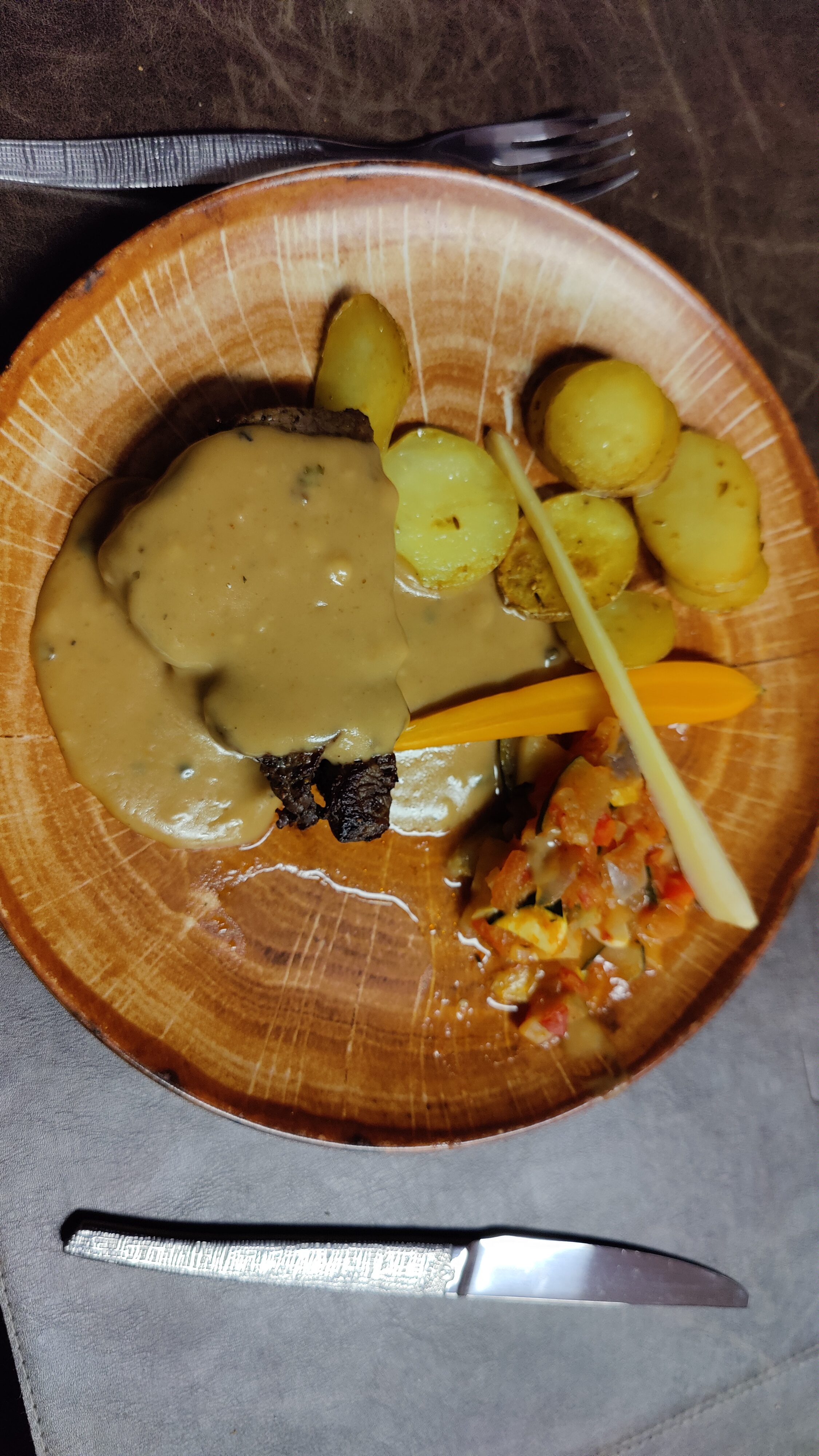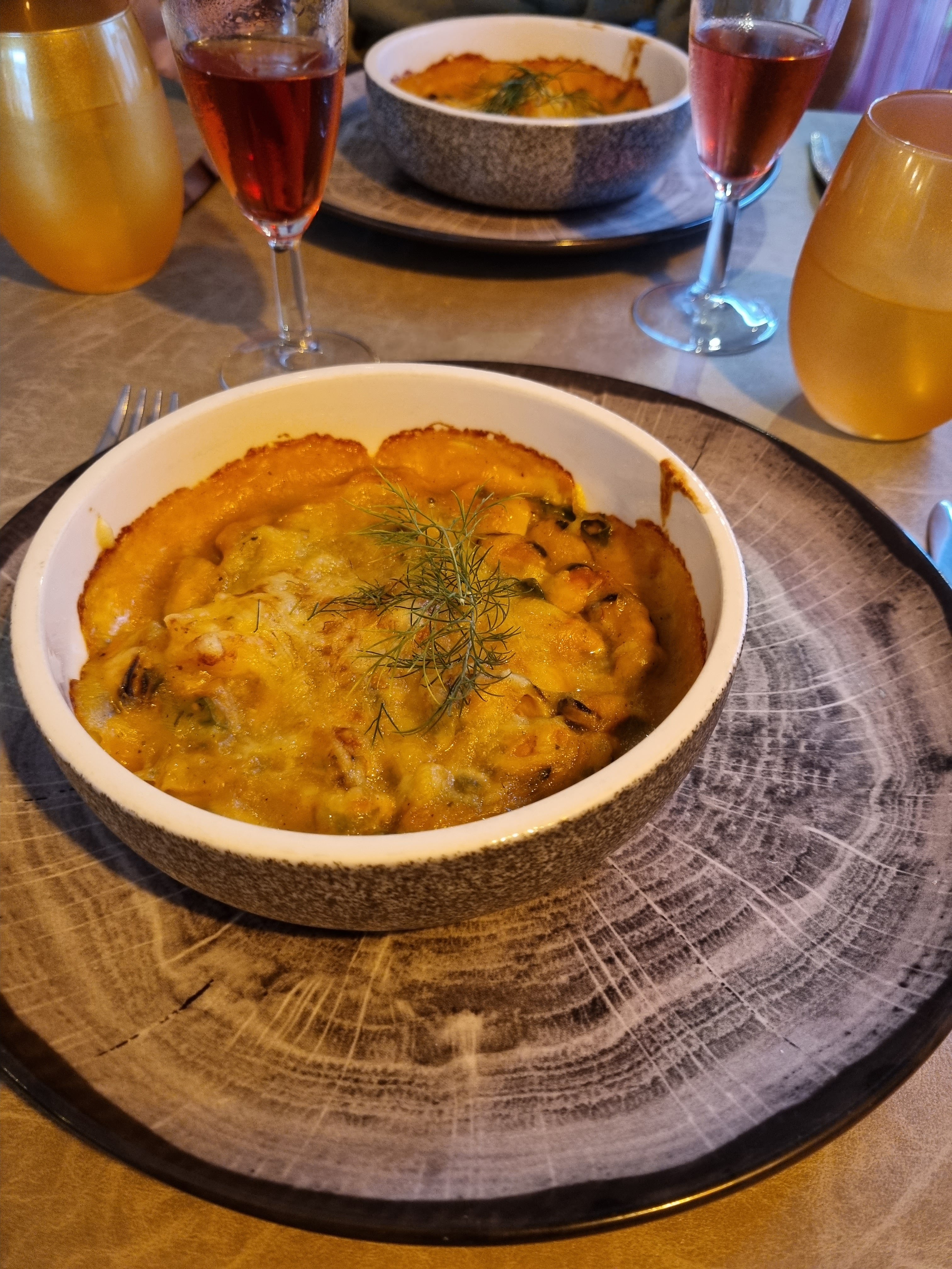 Entrée très bonne, plat principal malheureusement pas du tout à notre goût. Trop cher et pas beaucoup de choix. La serveuse n'a pas fait de gros efforts pour compenser notre déception par son attention. J'ai oublié ma commande et j'ai attendu une éternité pour le dessert et l'addition. Malgré la recommandation de notre couple d’auberges, c’était très décevant.