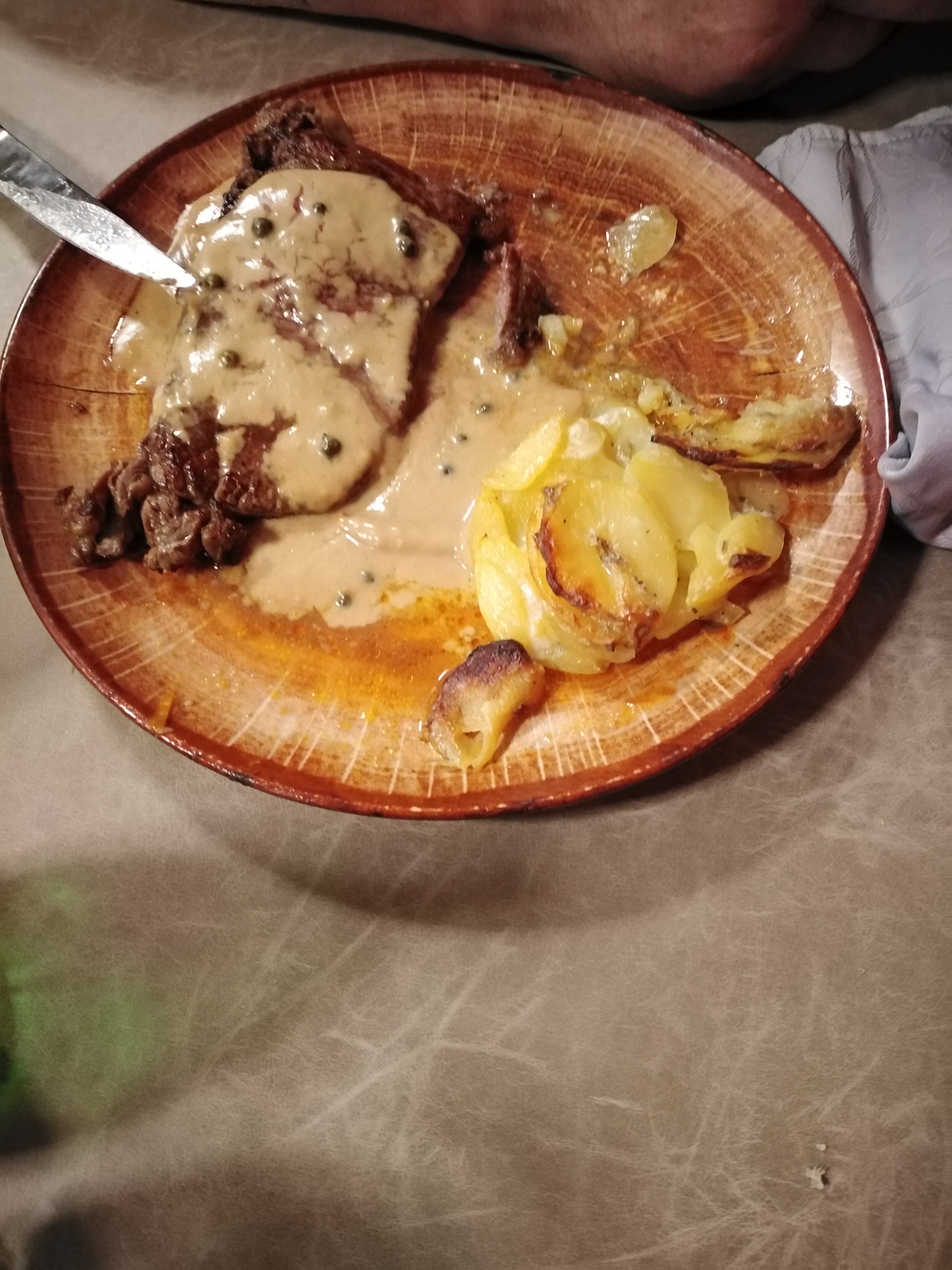 Des hôtes agréables, un menu réduit, gage de qualité et de fait-maison. Cela se révèle au moment de la dégustation. (En photo blanquette de veau, sauce citronnée. Le veau fondant, la sauce subtilement parfumé, les légumes pleins de saveurs). On passe un moment fort agréable accompagné de très bon vins. Le seule bémol: penser à jeûner avant de venir car le menu est copieux.