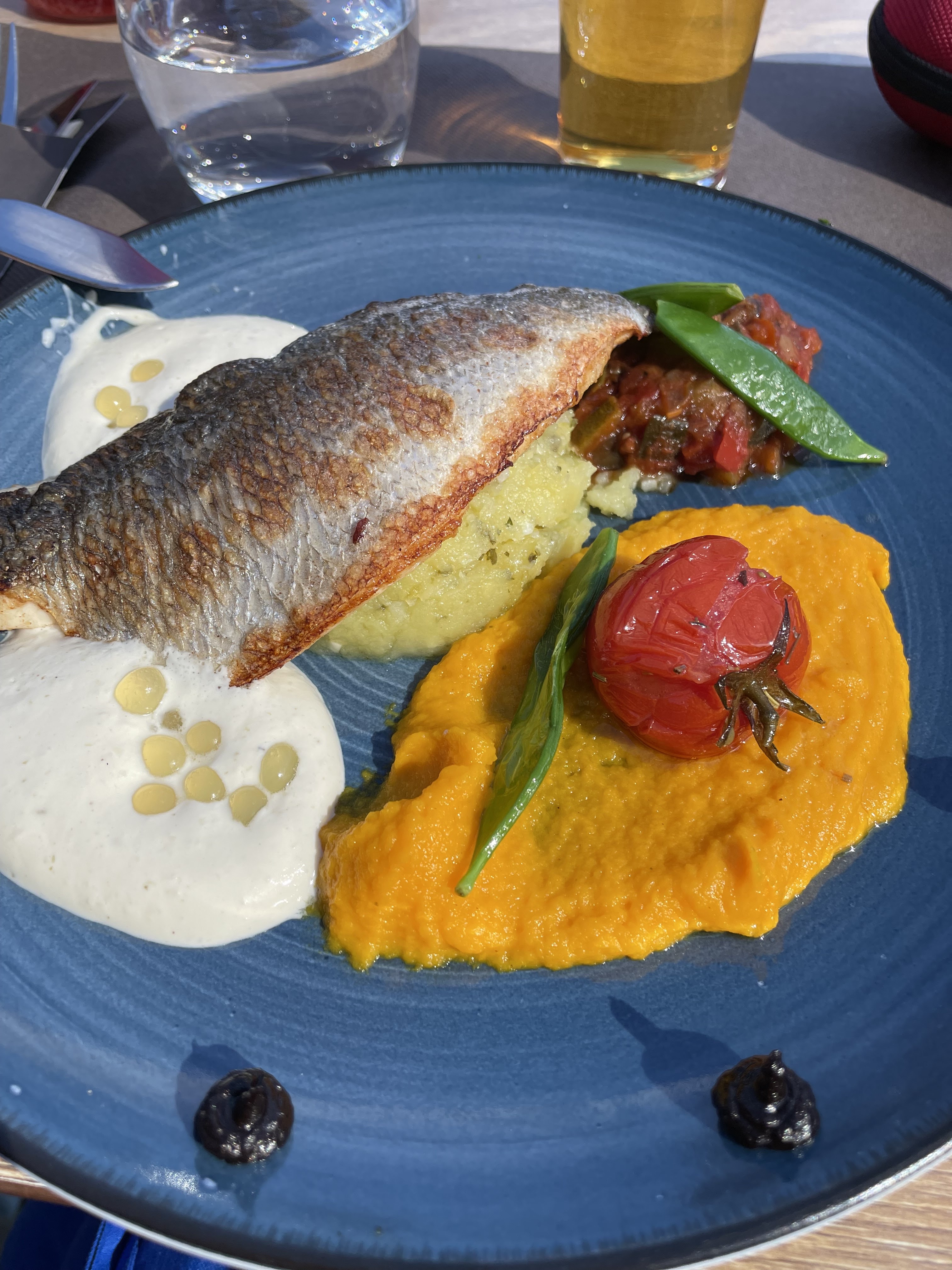 Incroyable petit restaurant juste à côté d'un sentier vert. Je ne l'ai trouvé qu'en regardant sur Google Maps, puis j'ai utilisé l'application Serre Chevalier qui dispose d'un plan des pistes interactif afin que vous puissiez voir votre position GPS par rapport à l'endroit où se trouve le restaurant. Beaucoup de critiques disent que vous devez Réservez mais nous venons d'arriver et tout allait bien (nous sommes arrivés à 13h30) le 20 mars, alors peut-être que c'est plus vers la fin de la saison que nous n'avons pas eu besoin de réserver. Moins de 20 minutes après s'être assis (à l'extérieur) pour profiter du soleil, il a vite commencé à être occupé et tout le monde a également choisi de s'asseoir dehors et de se réchauffer. la nourriture est fraîche et très savoureuse Un véritable joyau de restaurant de montagne, différent de tous les autres lieux de restauration de montagne. Nous avons eu la daurade et aussi le steak. Les saveurs des deux plats mettent l’eau à la bouche.