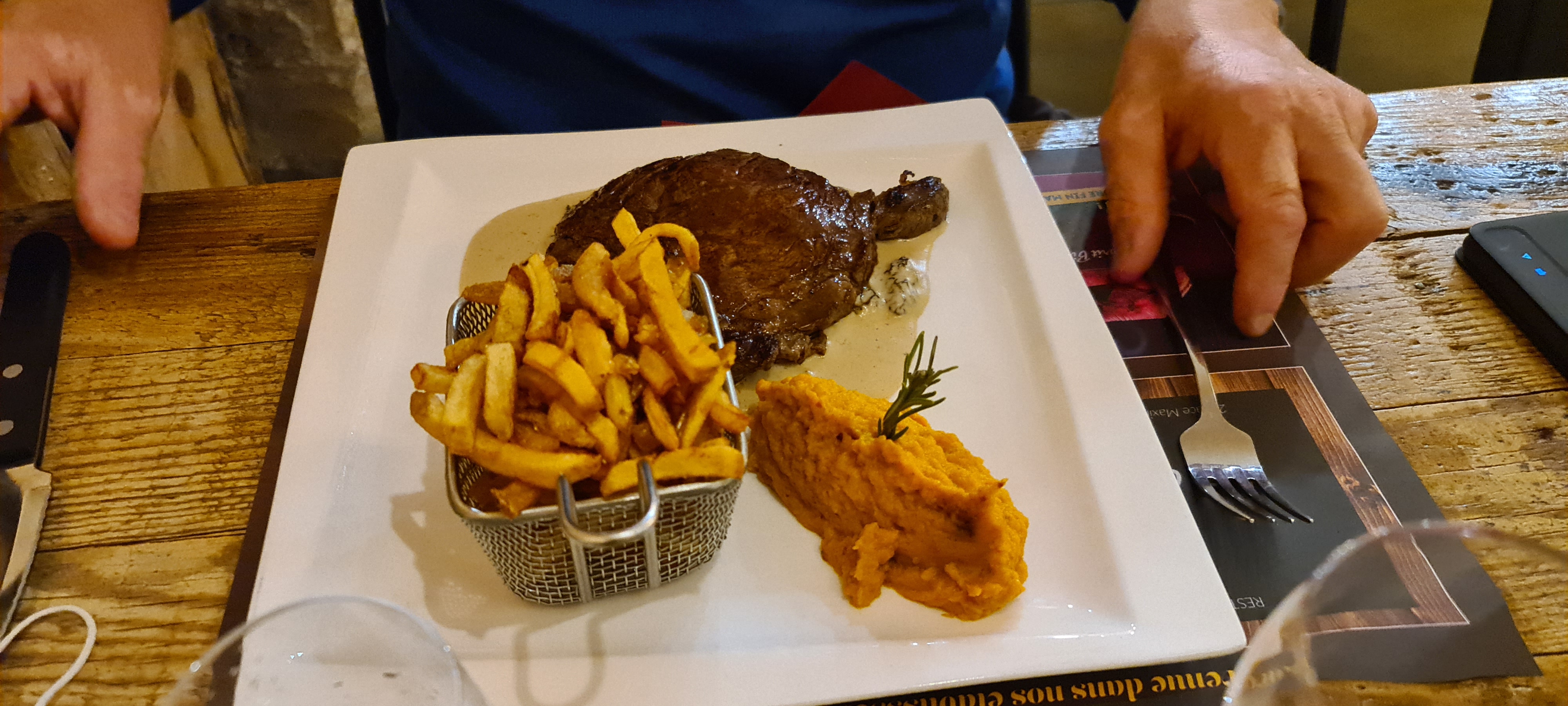 Franchement ben très bien manger, frites maison viande tendre et bien cuite, Très bon restaurant je recommande, très bon accueil et serveuse au top super sympathique, je reviendrai 👍👍👍