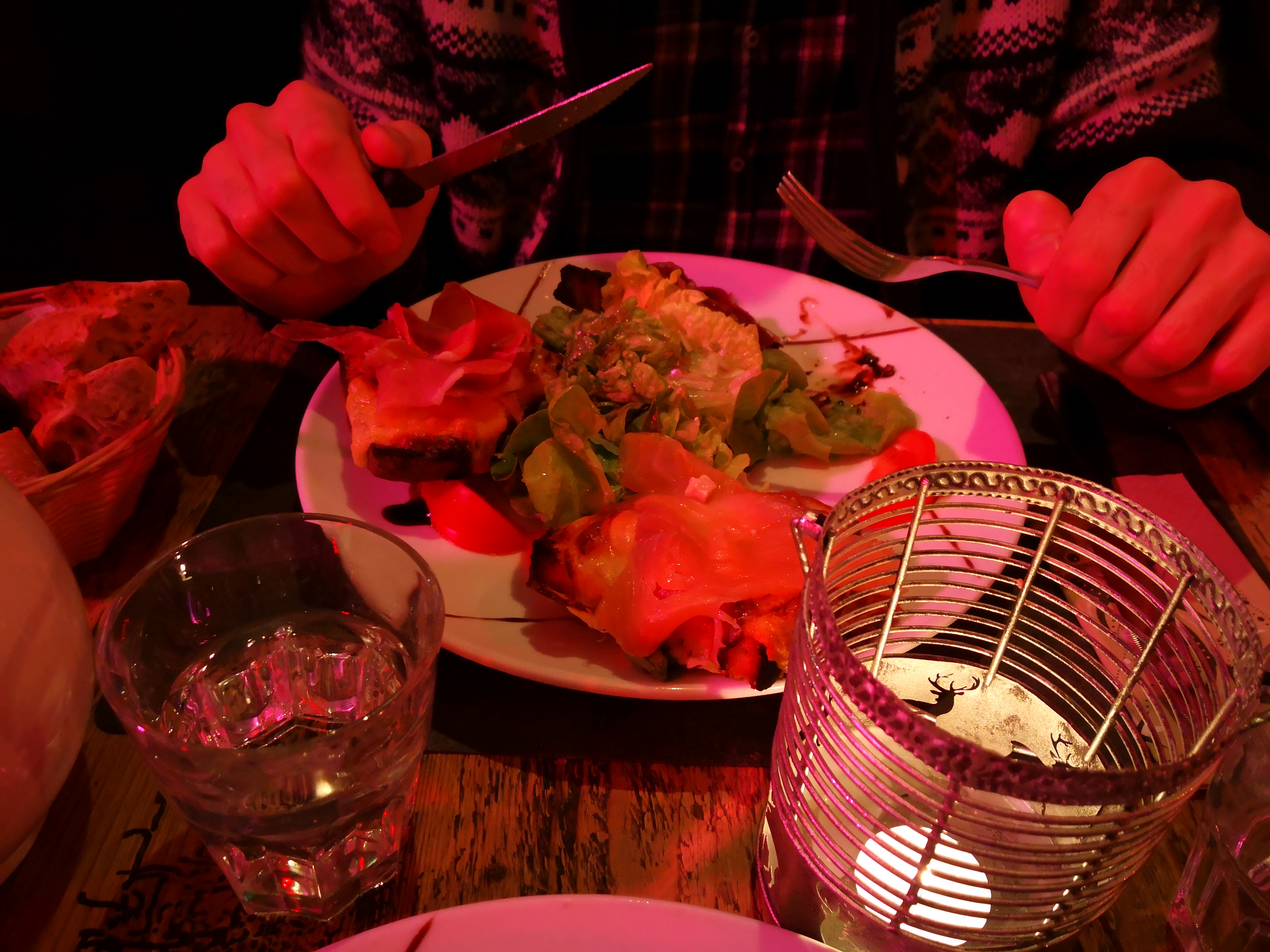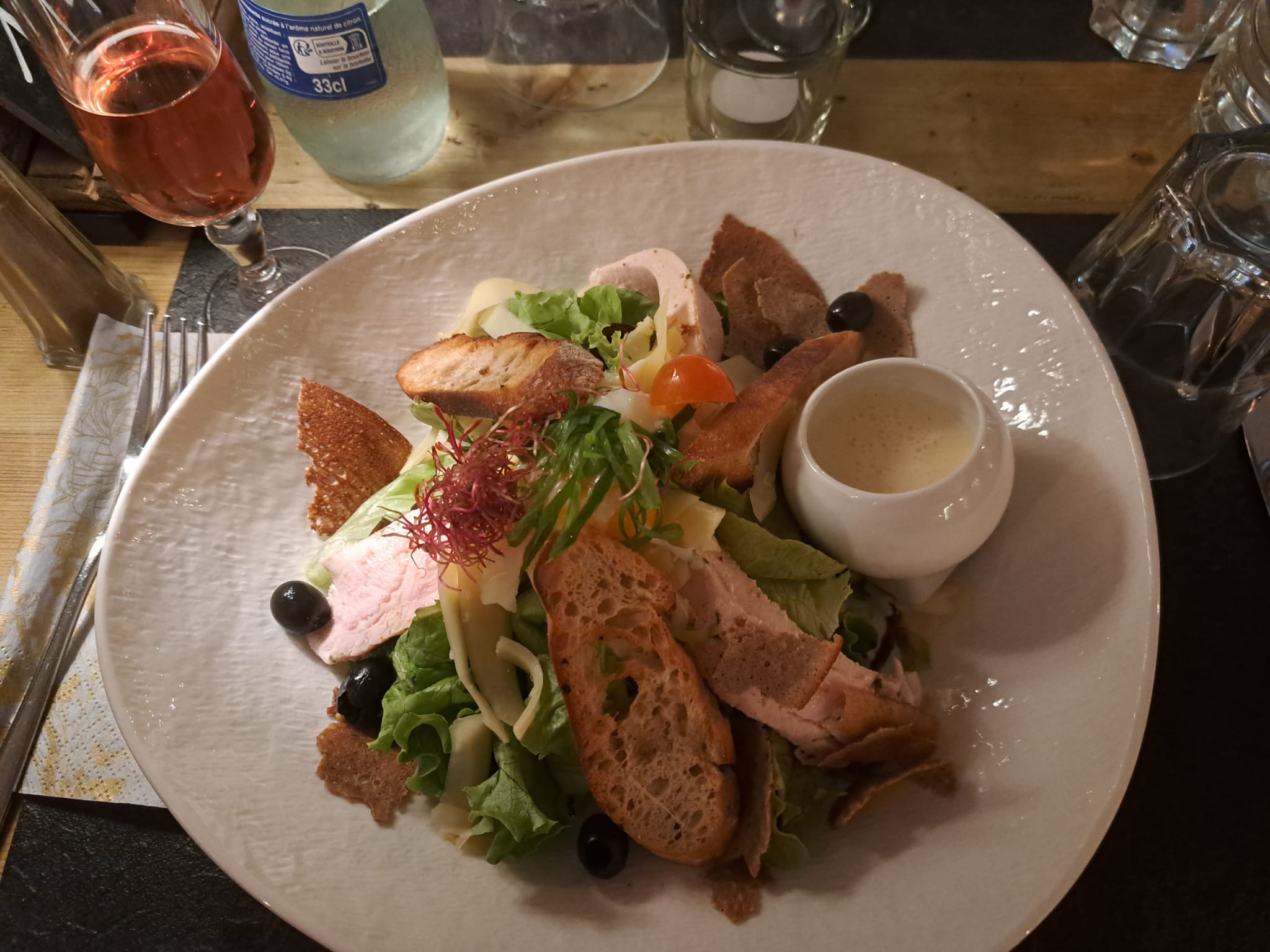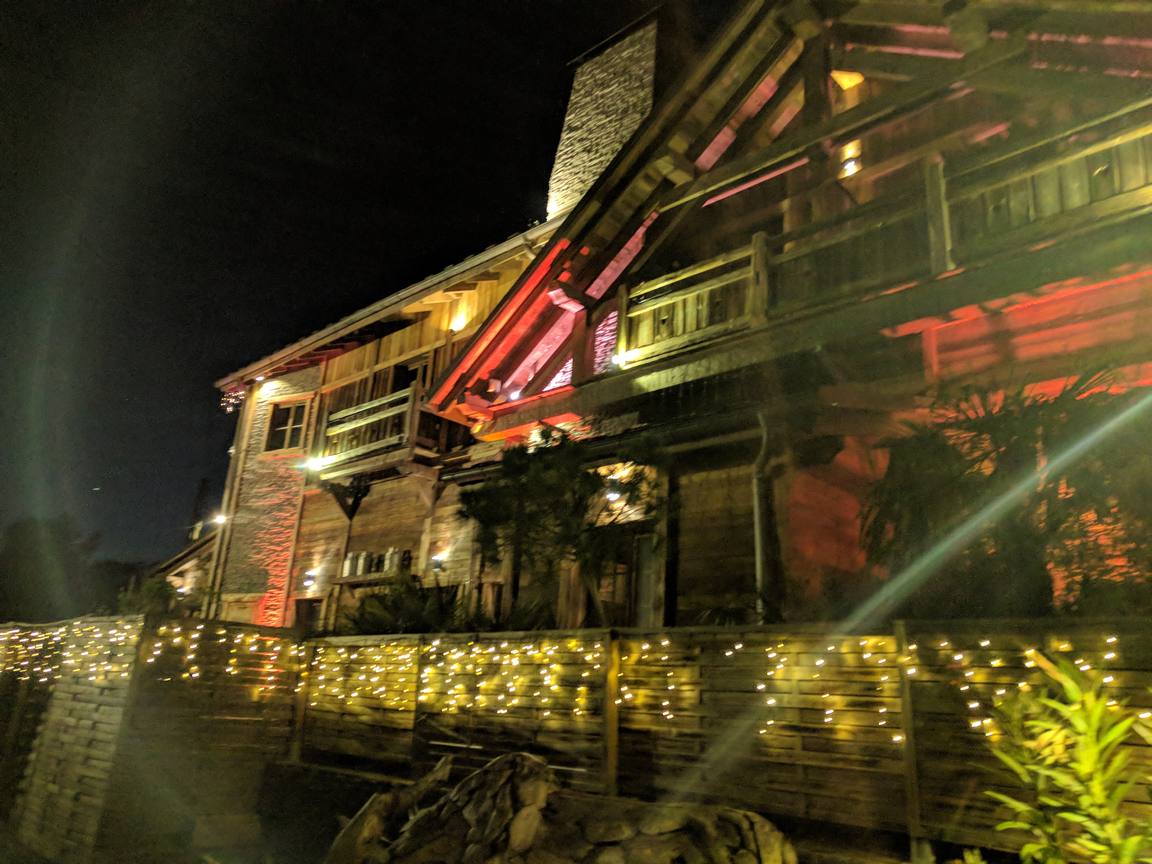 Cadre et service exceptionnels. Des décos et décors de Noël fabuleux à l'extérieur comme à l'intérieur, belles tables en bois, une ambiance scandinave, très cosy, lumières toutes douces et musique rock en fond. Plat de truite excellent avec son écrasé de pomme de terre et très bon dessert ananas et sa glace au poivre de Sichuan très onctueuse. Pour le reste c est ambiance chalet de montagne donc galettes de froment ou sarrasin avec du fromage raclette, du jambon, du lard, des pommes de terre, et tout ce qui tient bien au corps :) il y a des plats de viande/pomme de terre/ fromage fondu. Le vin rouge était très bon. Allez y en période de Noël ça vaut le détour ! Pensez à réserver
