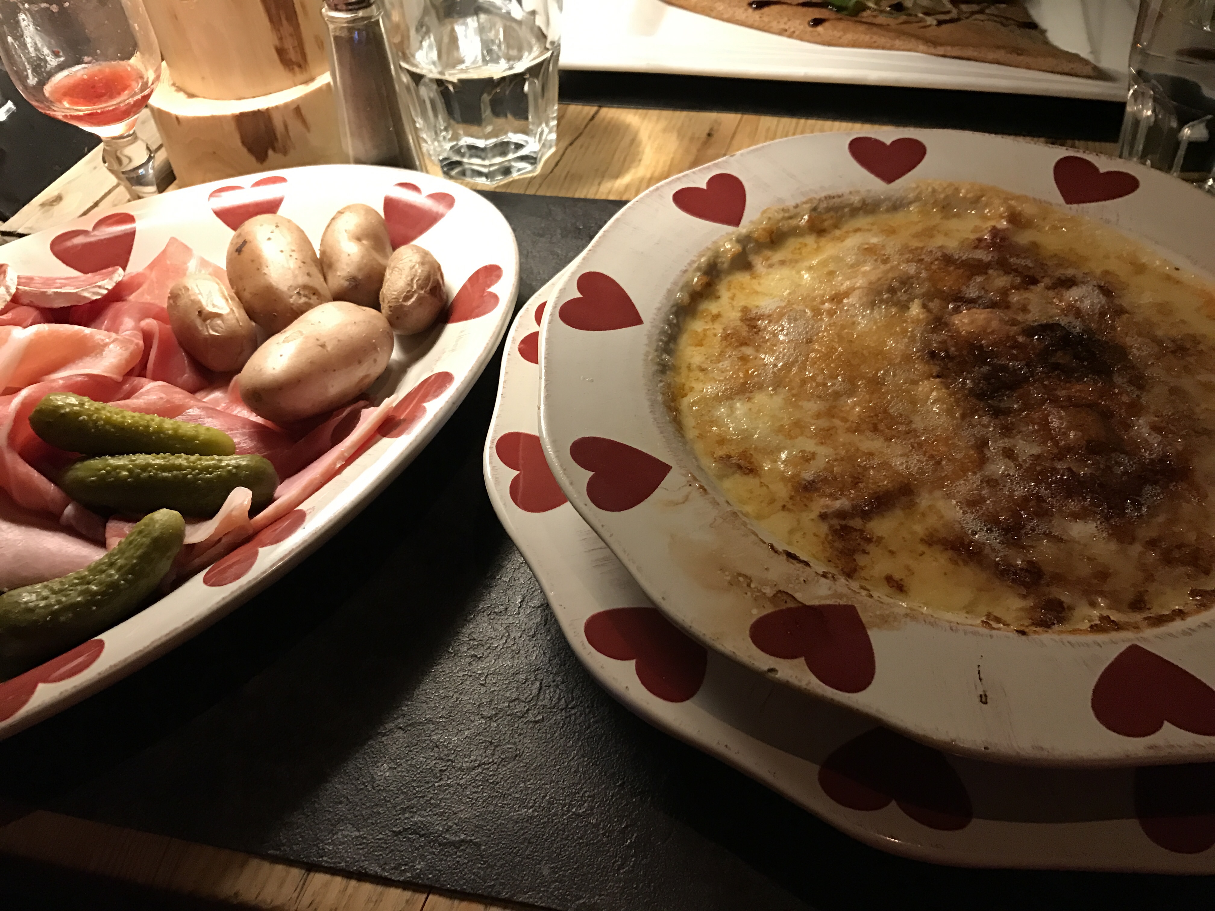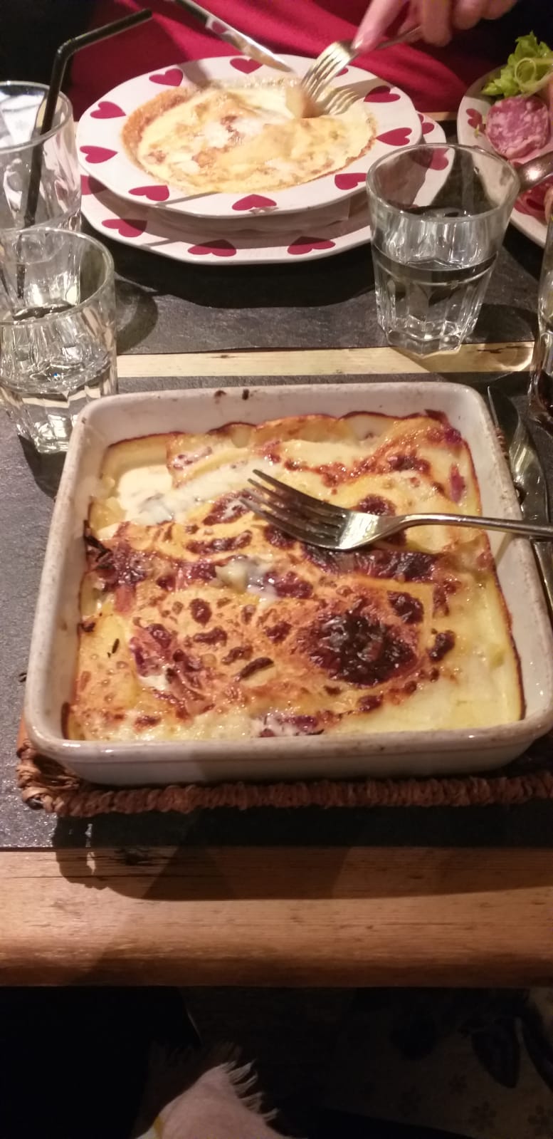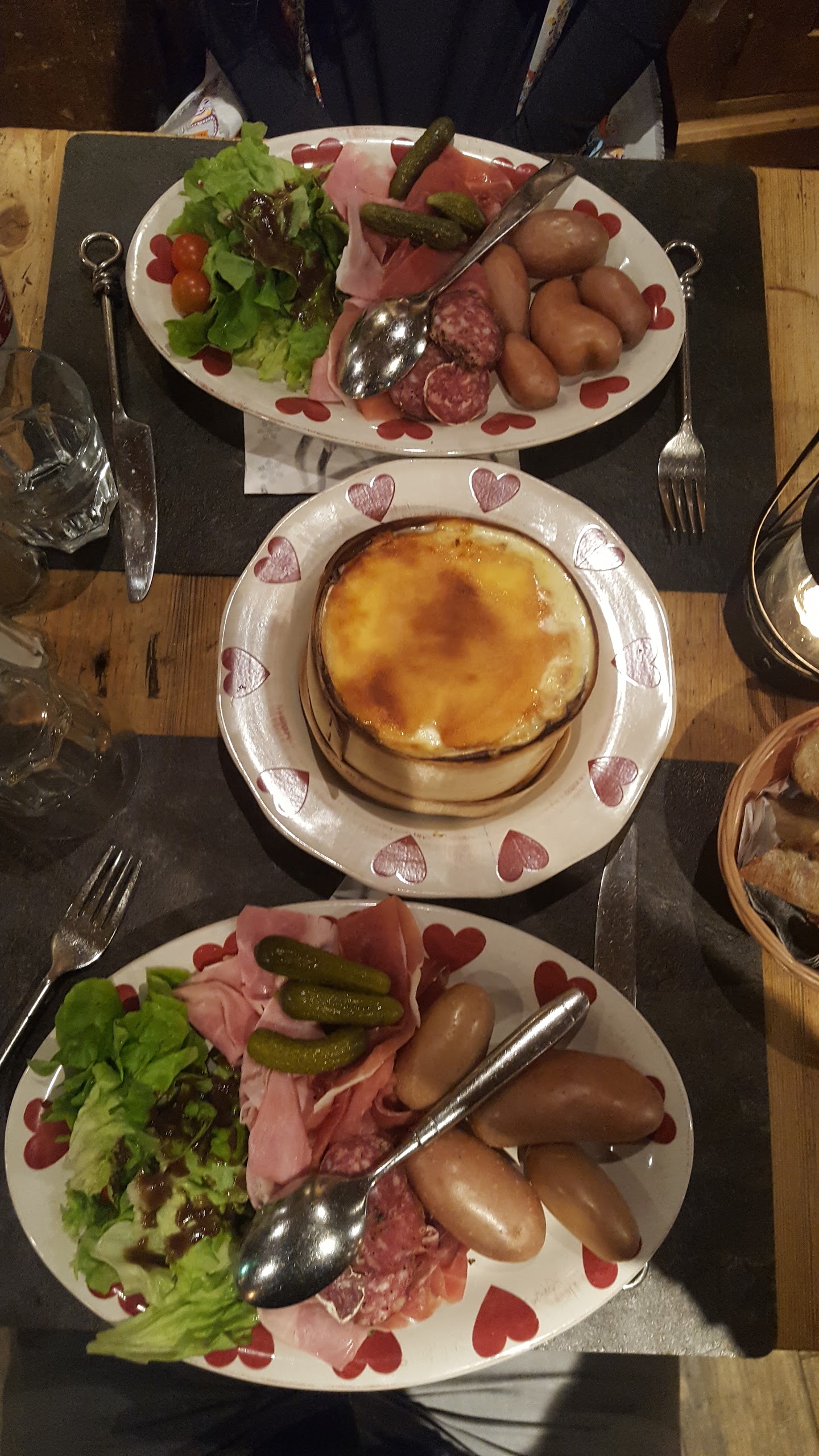 Première visite, agréablement surpris en arrivant dans un cadre où l'on se sent dans un chalet de montagne avec tout le charme de la boiserie veillie et les décors, serveur au petit soins, petite fondue flambée à la liqueur de génépi très copieuse accompagnée d'une ardoise de charcuterie. Je recommande cette adresse pour les amateurs de plats de montagne.