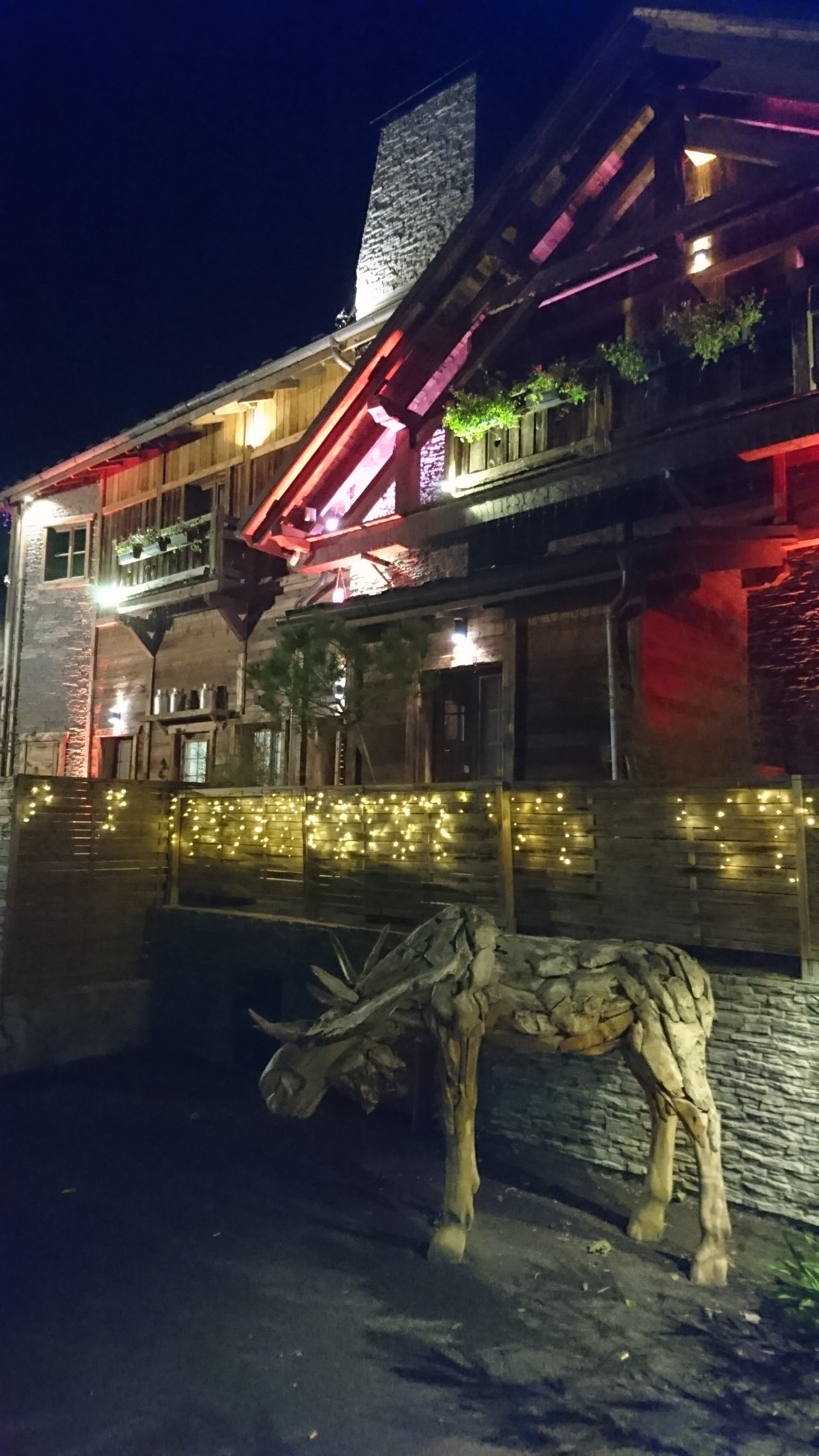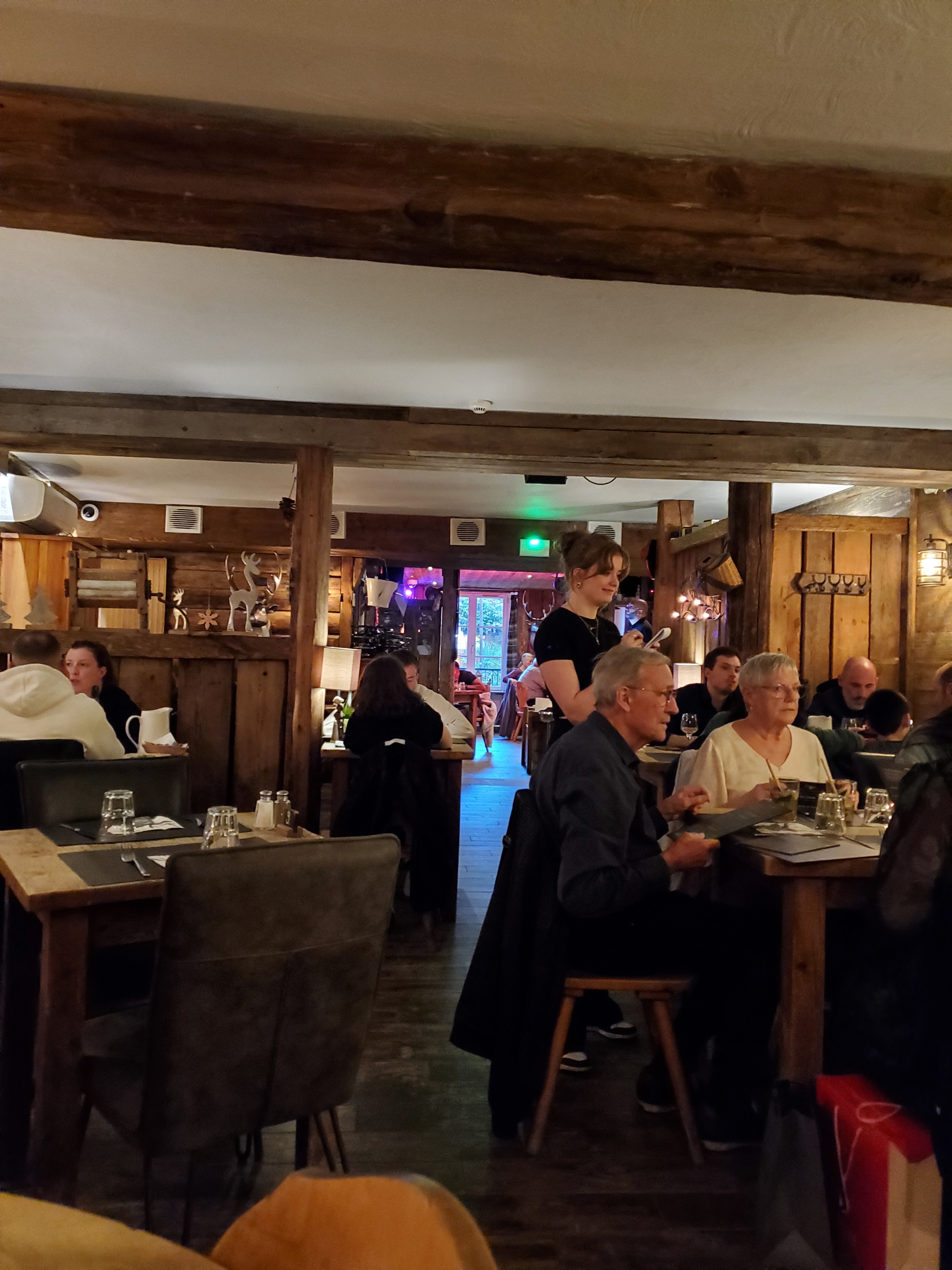 Superbes décors d halloween 🎃 L ambiance est bonne, restaurant plein. Familiale, les anniversaires sont souhaités ! Le lieu en soit est montagnard, imposant et chaleureux. L assiette est copieuse et riche. Avis aux petits estomacs, passez votre chemin ! Dépaysement assuré