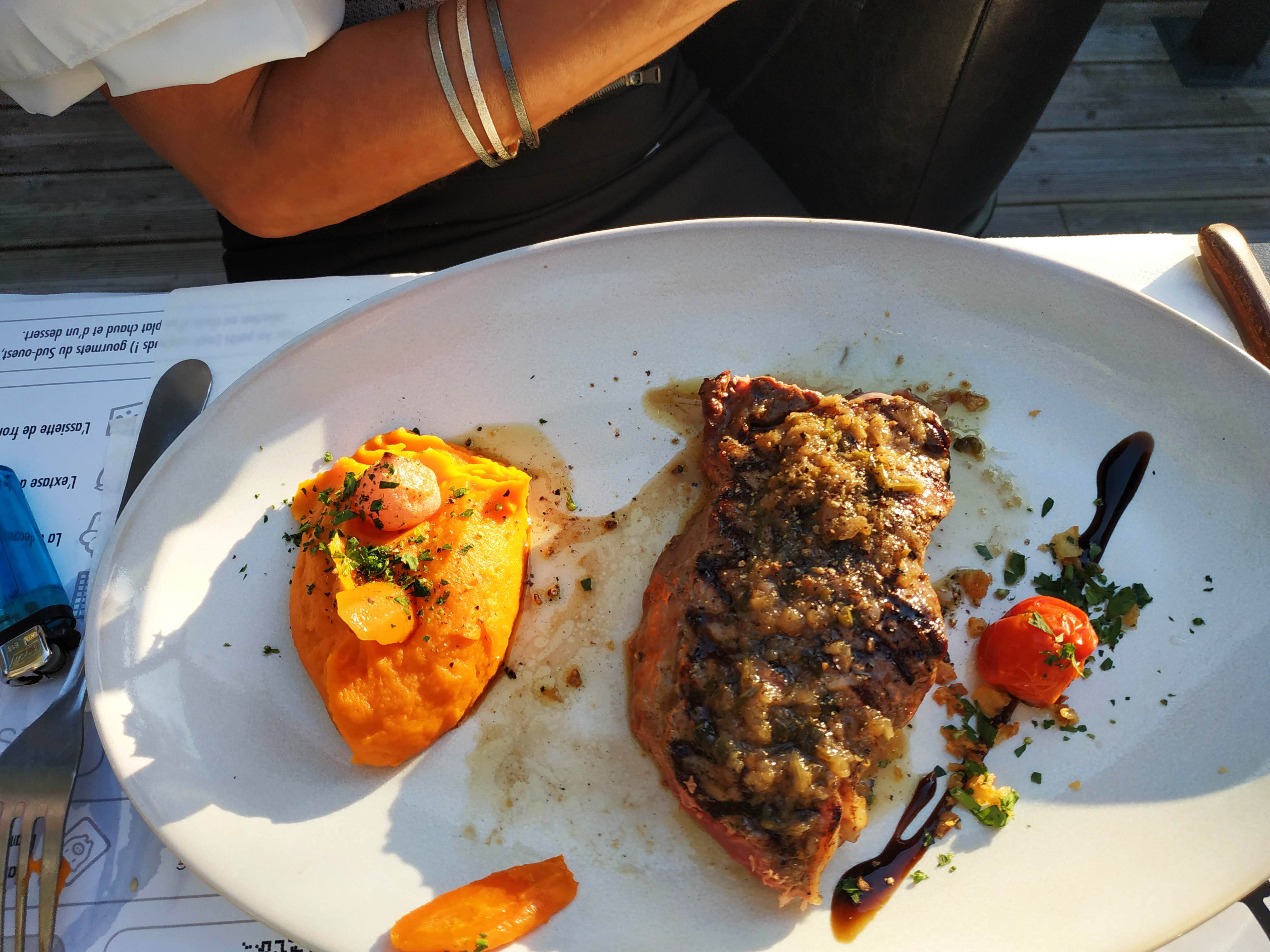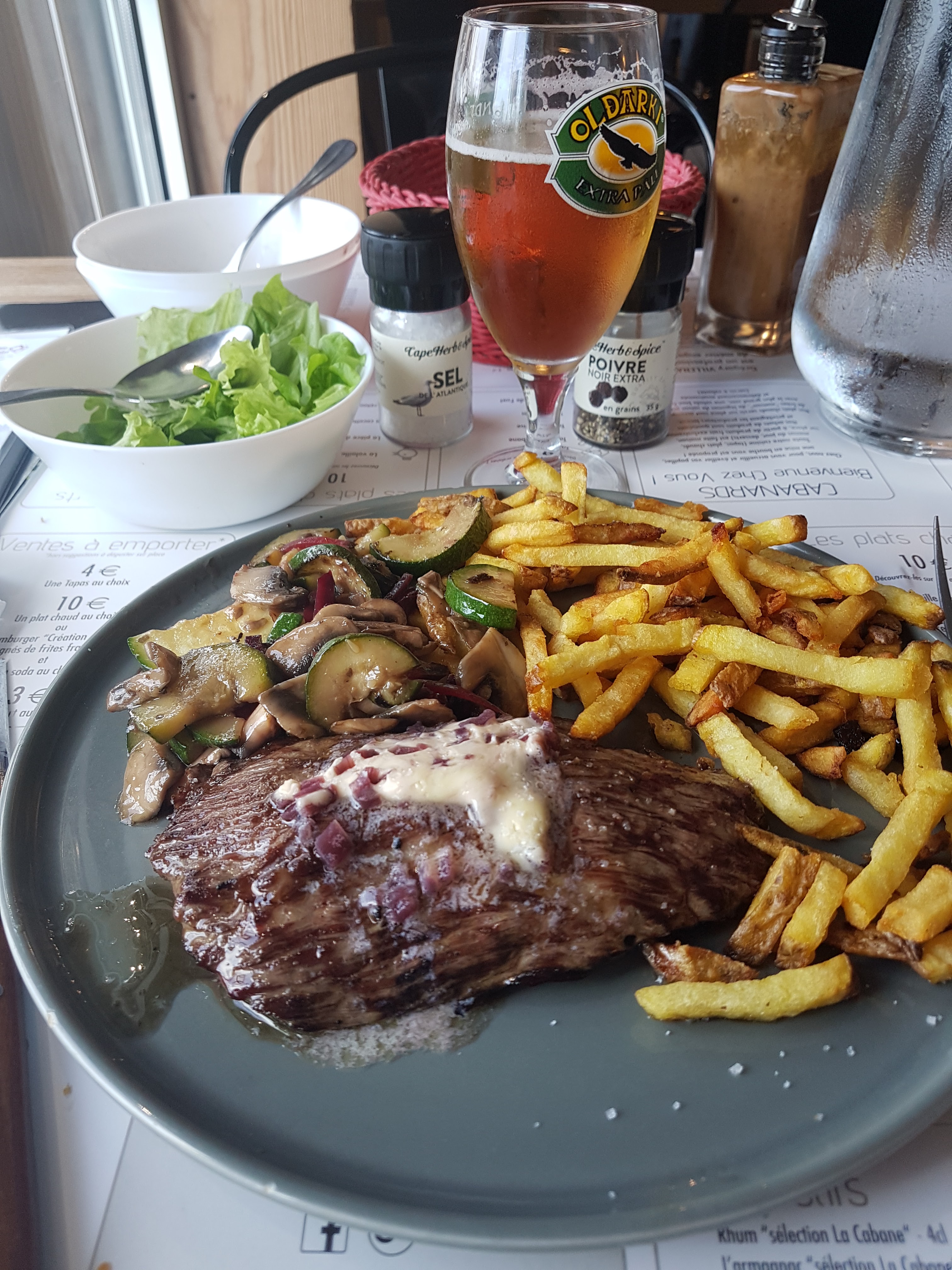 Bon repas, par contre : augmentation du tarif du plat passé à 13 euros, frites tjrs à volonté, légumes en nette diminution, ce soir 3 tranches d aubergine pour deux et un mini saladier de salade alors que nous avons déjà une variété de salade dans l assiette. Si supplément demandé pour les légumes on le facture 2 euros. Pour le dessert : brioche perdue présentée avec confiture dessus caramel beurre salé (sur côté) et saupoudrage de sucre de sucre en plus. Conclusion mieux vaut aimer les frites et ne pas être diabétique