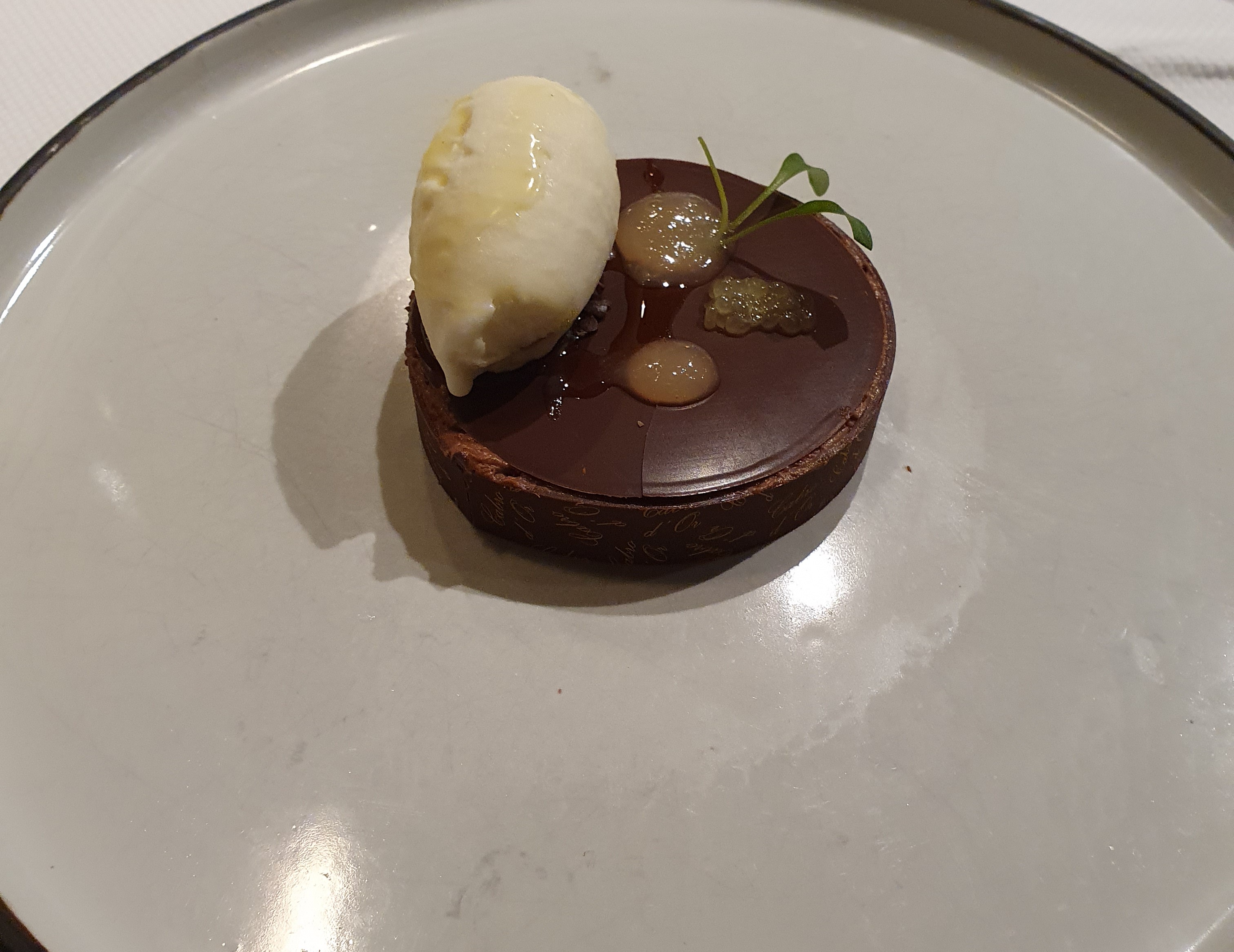 Bon repas , hormis le service. Il est regrettable que pour 8 minutes de retard, un restaurant de ce niveau refuse de vous servir le menu gourmandise après vous l’avoir pourtant présenté et explicité. De plus, il manquait la présentation des bouteilles pour les verres de vin commandés.