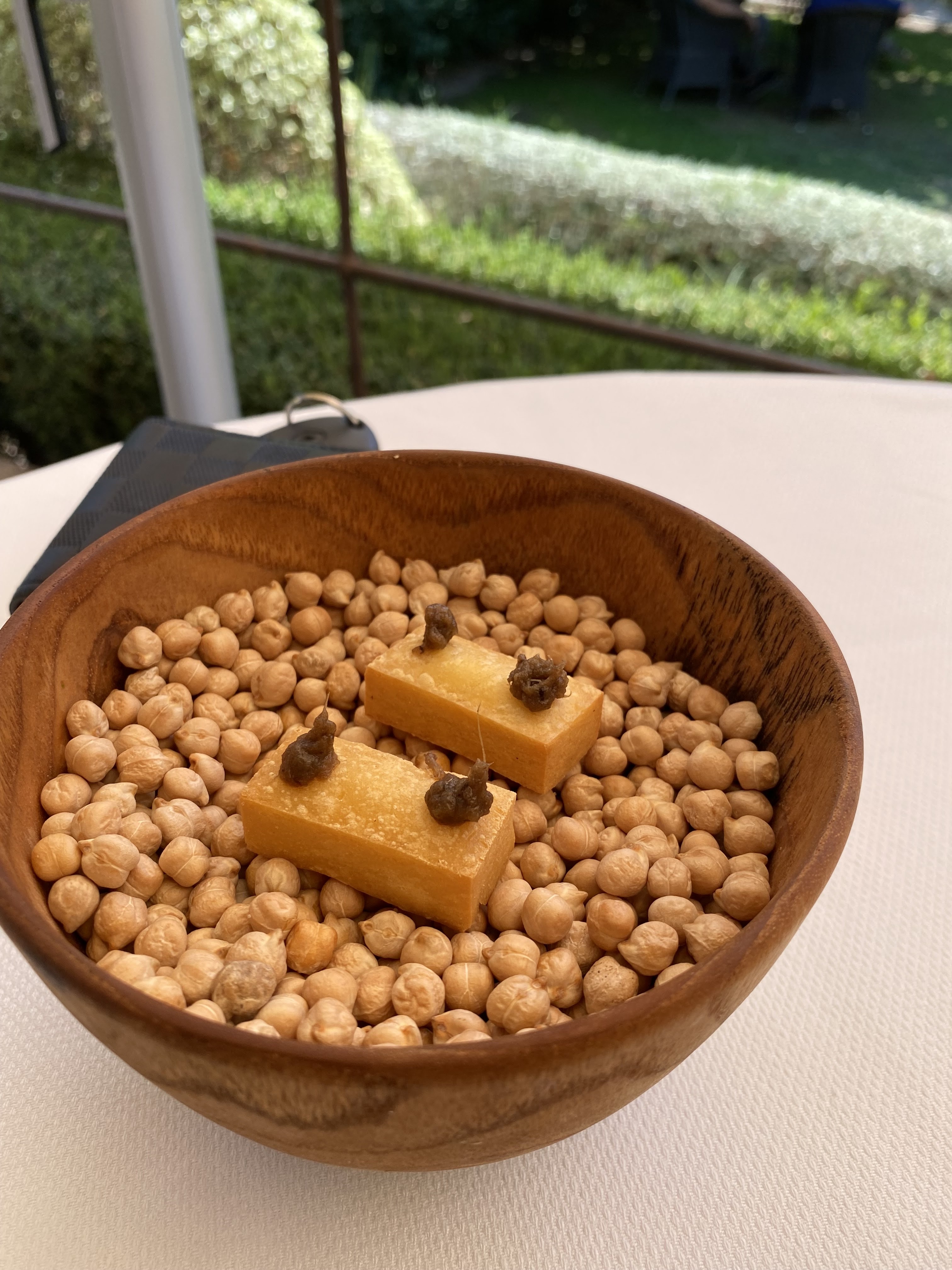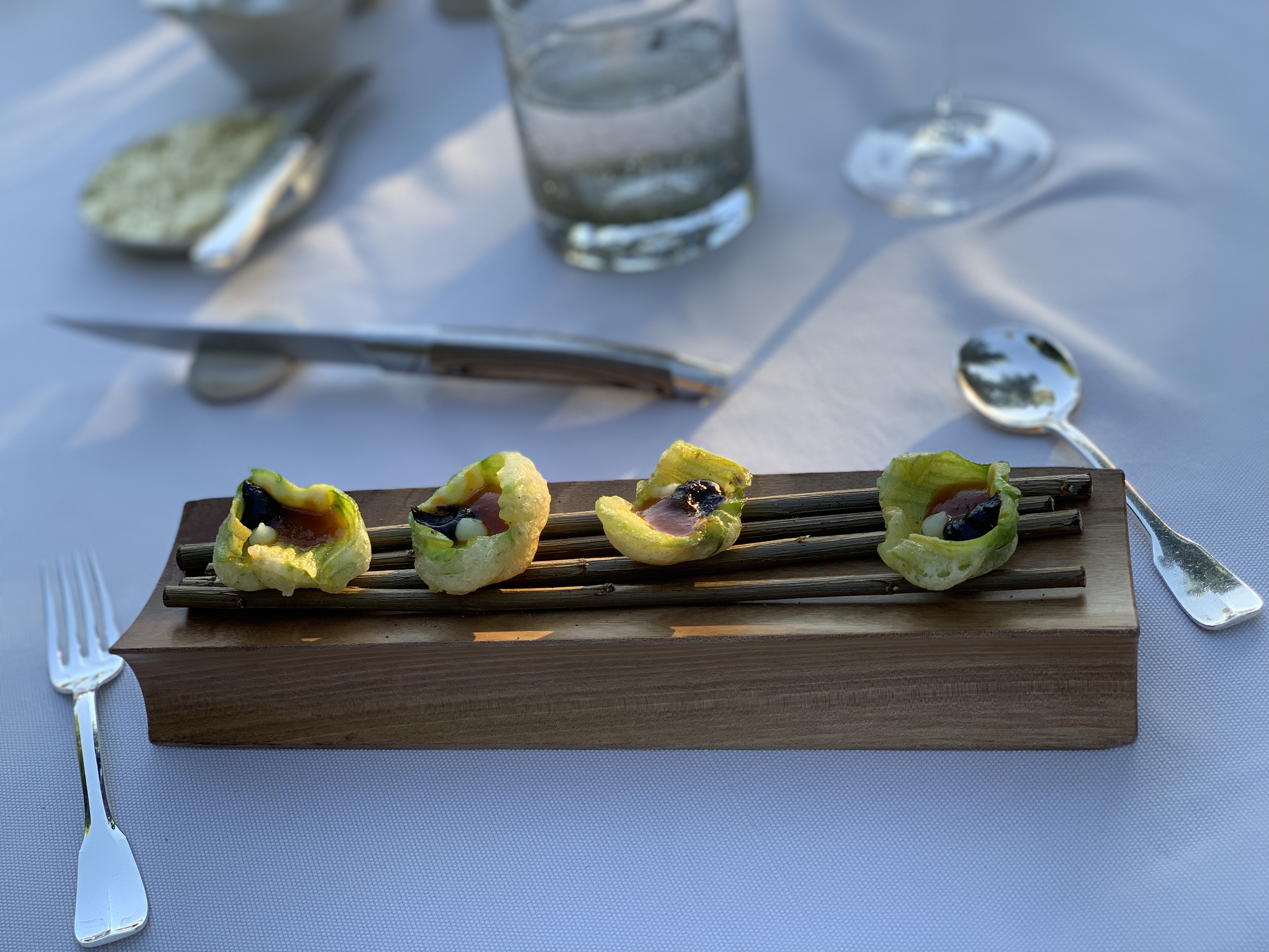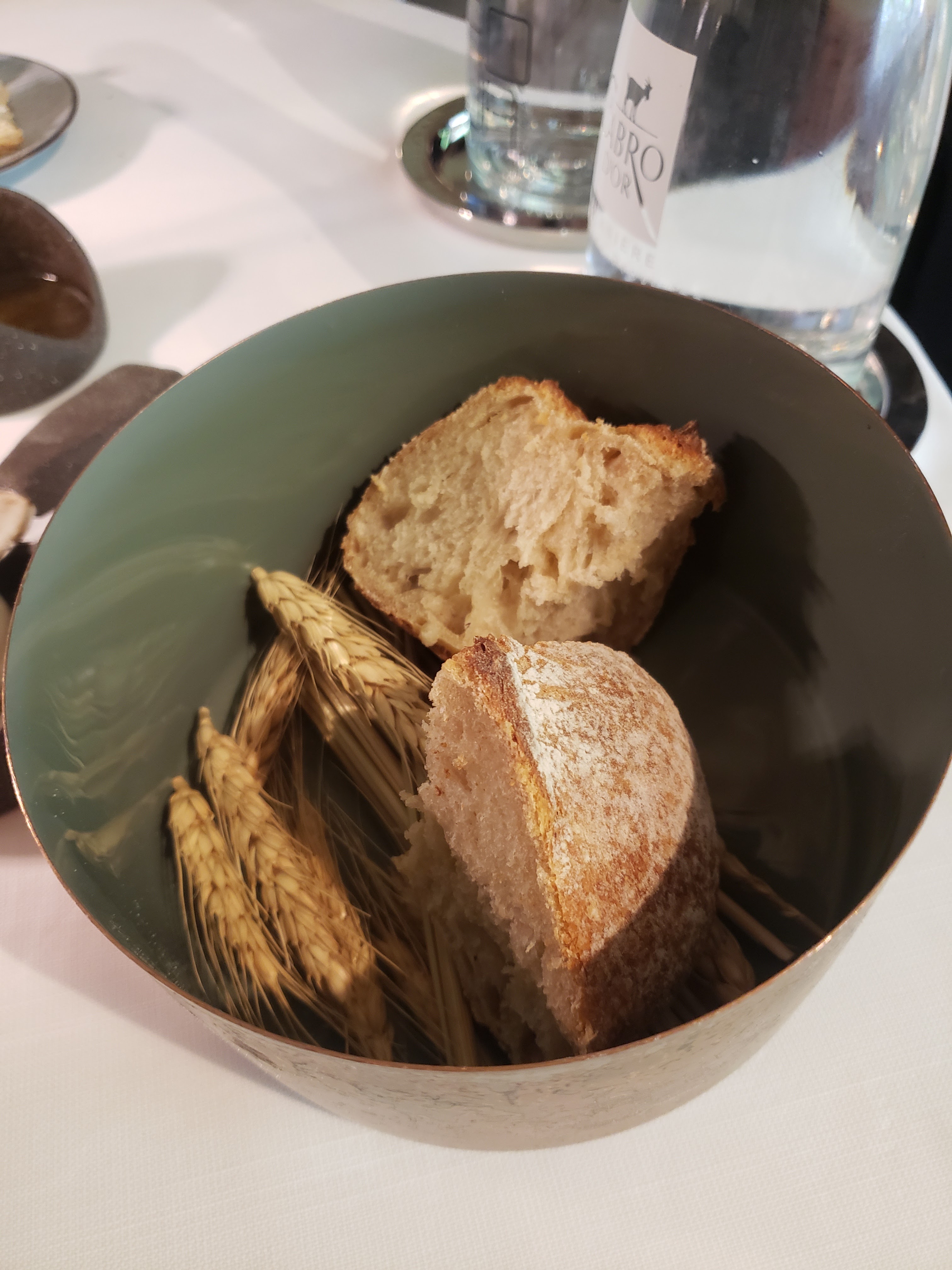 Après avoir dîné et déjeuné ici, j'ai été déçu par la nourriture, le service et la décoration, qui sont probablement magnifiques, pour être honnête, en été. Malheureusement, le pain, l'huile d'olive (DÉLICIEUX), le champagne et le vin rouge étaient les points forts. Le poisson, les crevettes, l'agneau étaient tous corrects et ils ont répondu à ma demande de poisson, sans viande, pour le menu dégustation. Les amuse-bouche étaient savoureux et un régal pour bien démarrer le repas. C'est la première fois que je mange dans un restaurant étoilé Michelin où les serveurs ne parlaient pas assez anglais, ou semblaient se soucier de ne pas parler assez anglais, pour décrire les plats. J'ai eu la chance de dîner dans quelques restaurants à travers le monde, dont Noma, et je peux affirmer en toute sécurité que le personnel de La Cabro d'Or a besoin d'une formation supplémentaire en hôtellerie. Au déjeuner, par exemple, ils nous ont donné le menu et ont disparu pendant 45 minutes. après avoir servi notre champagne. Non, le restaurant n'était qu'à moitié plein. Au retour du serveur, on nous a dit que nous avions d'anciens menus... comme si c'était de notre faute. Il existe de nombreuses autres délicieuses options en Provence, alors profitez-en !