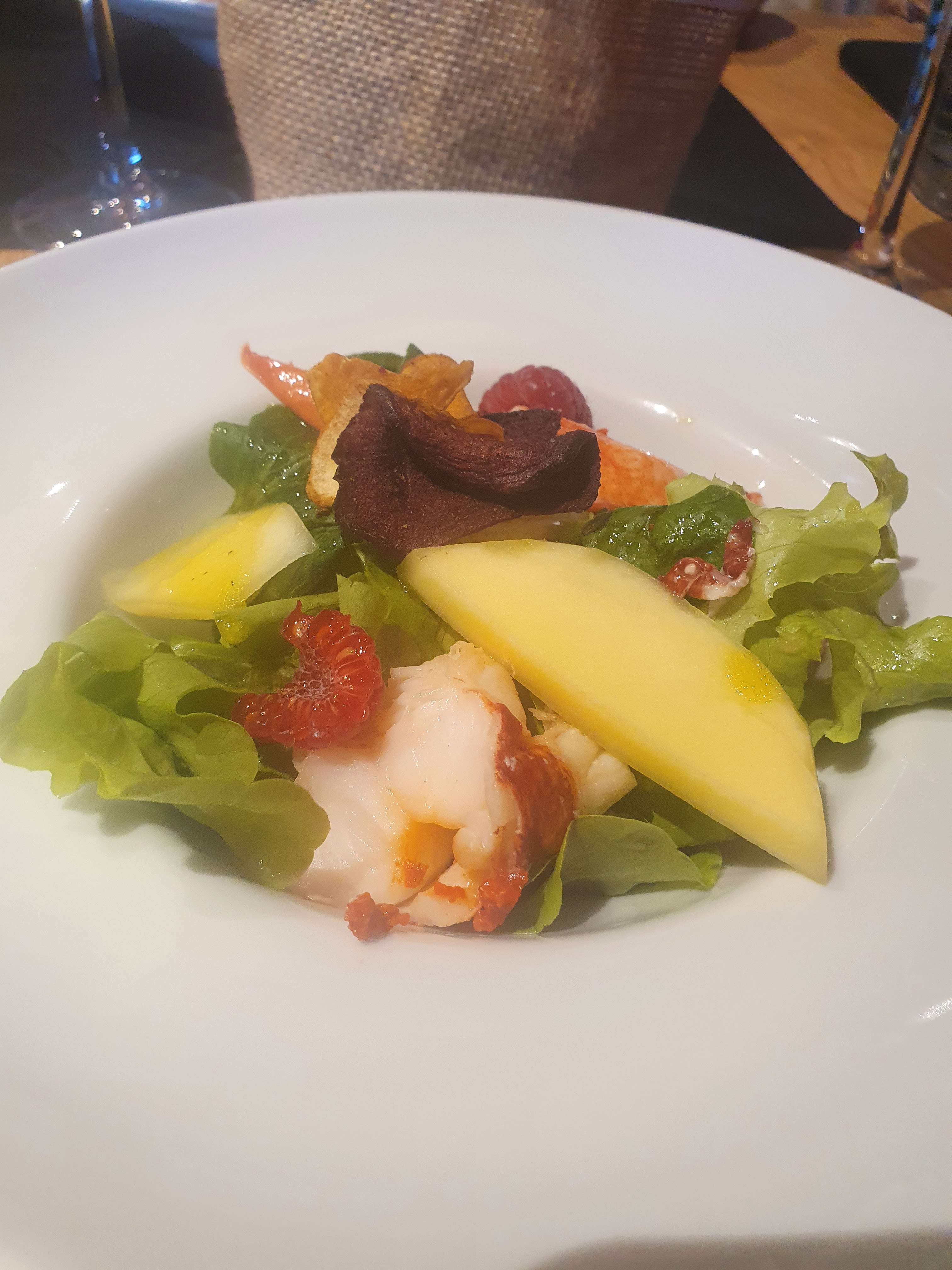 Bon accueil ,vin blanc intéressant entrée correcte, plat de Saint Jacques bien travaillé