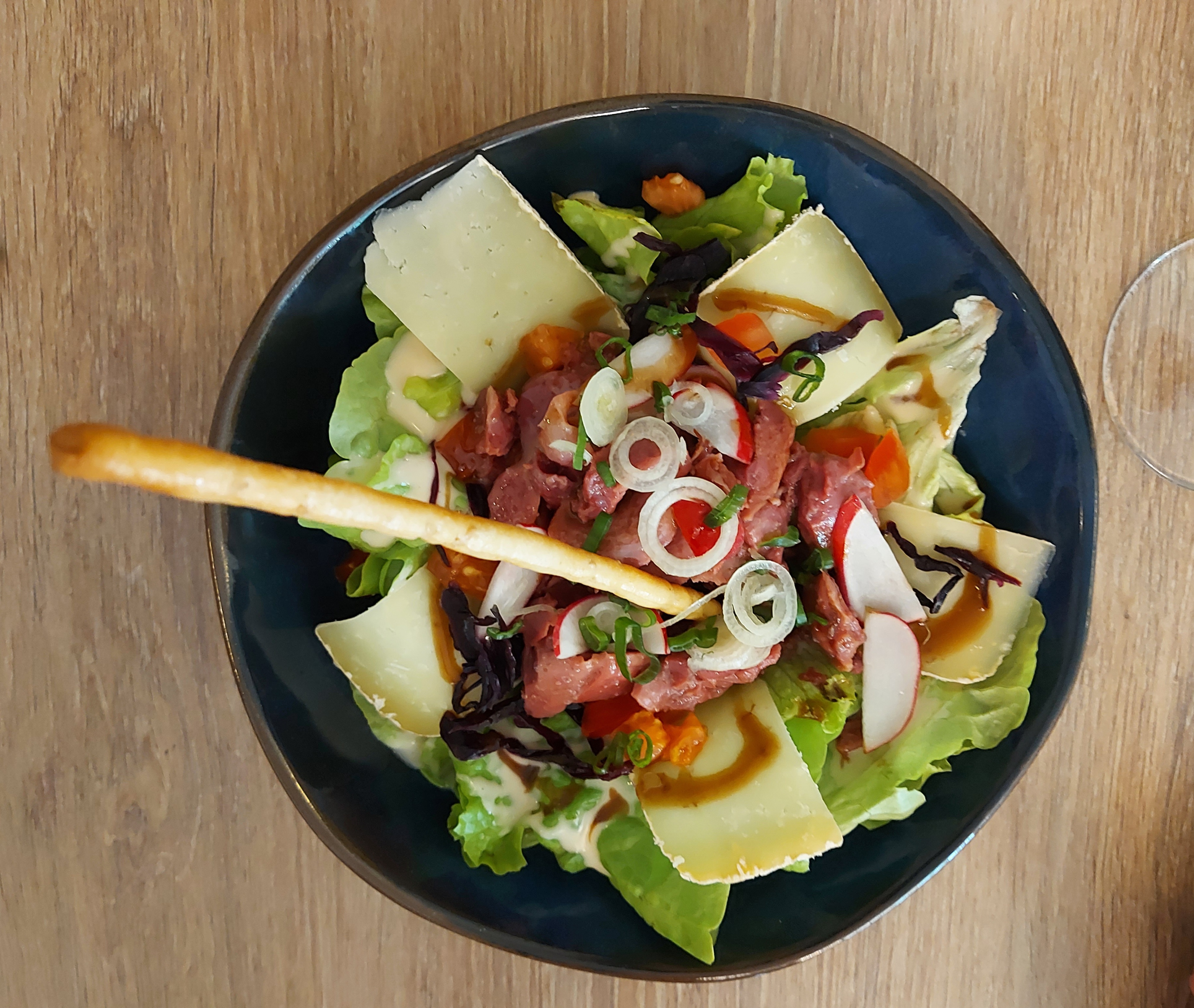 Excellent de l entree jusqu'au dessert.. Pizza à partager à l'apéro. Produits extra frais .joliment présentées les assiettes sont variées et équilibrées nous reviendrons des que possible ! merci aux patrons