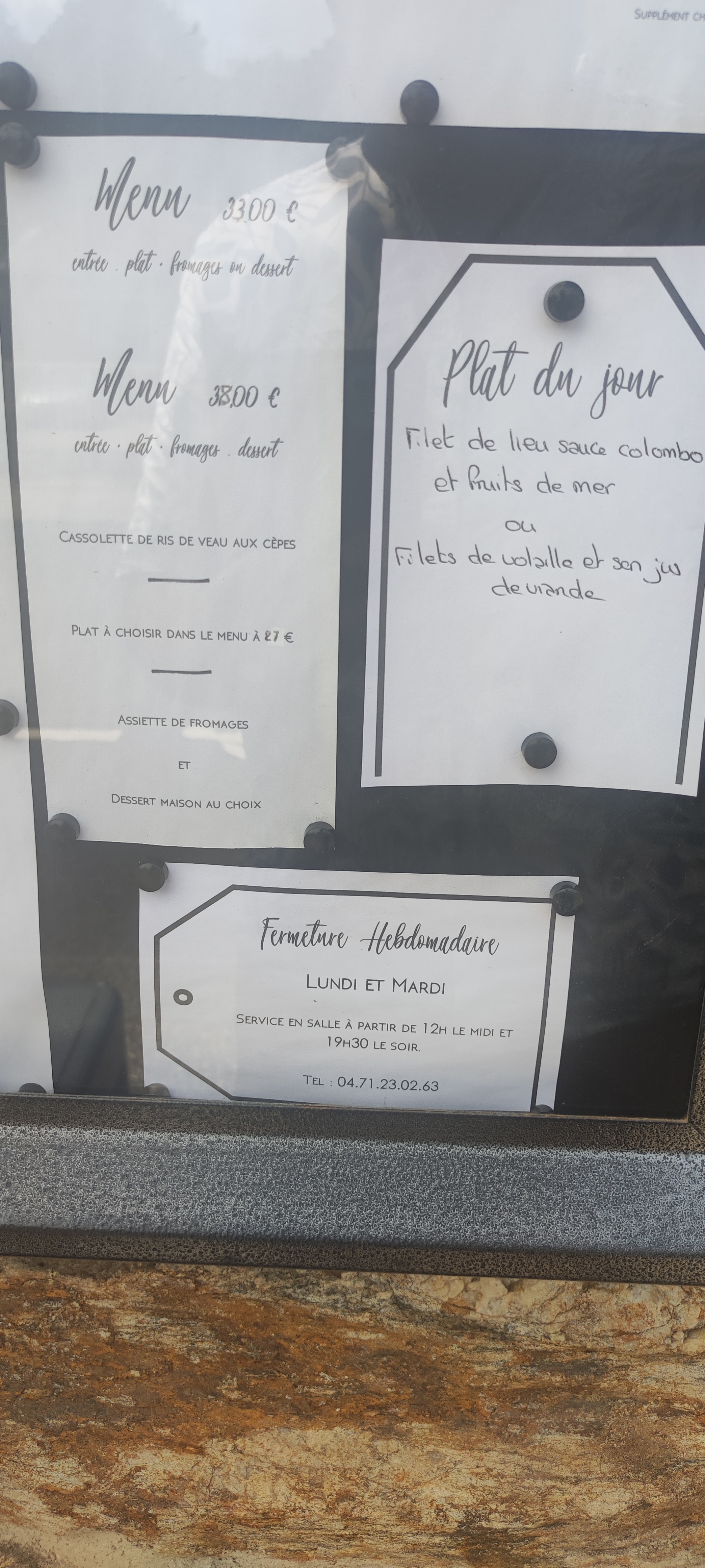 Nous nous y sommes rendus après la visite du parc animalier d’Auvergne et nous partions de blesle, le restaurant était ouvert en cette période s’approchant du JdL. Nous y avons très bien mangé, peu de choix mais en contre partie les produits étaient de qualité et tres bien cuisinés, c’est tres bien ainsi.