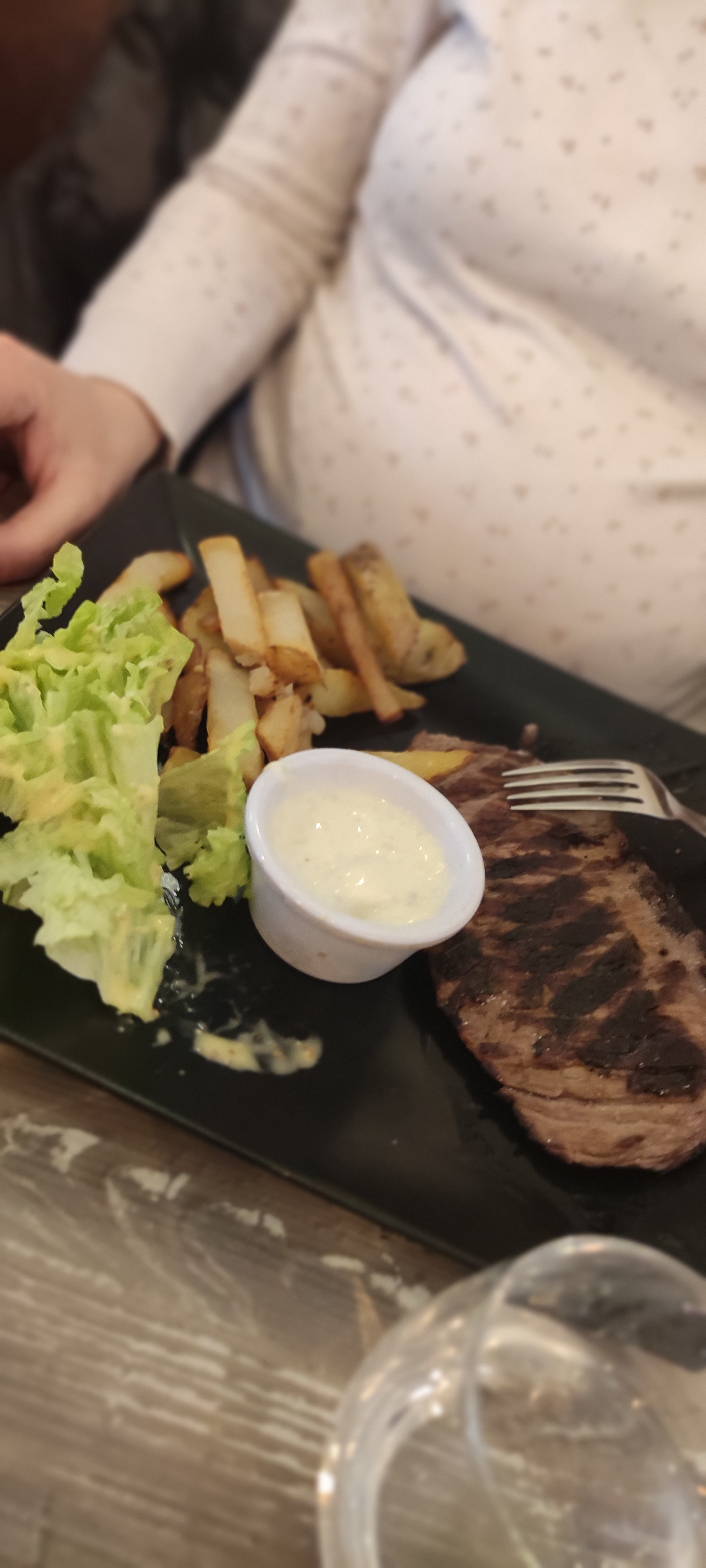 Agréable surprise, le steak haché angus avec les frites maison n'ont pas survécu longtemps, j'ai également pu goûter la purée, un régale, avec un goût de muscade comme je l'aime. Le personnel est agréable et sympathique. Seul point perfectible à mon avis, la décoration intérieure qui ne paille pas de mine.