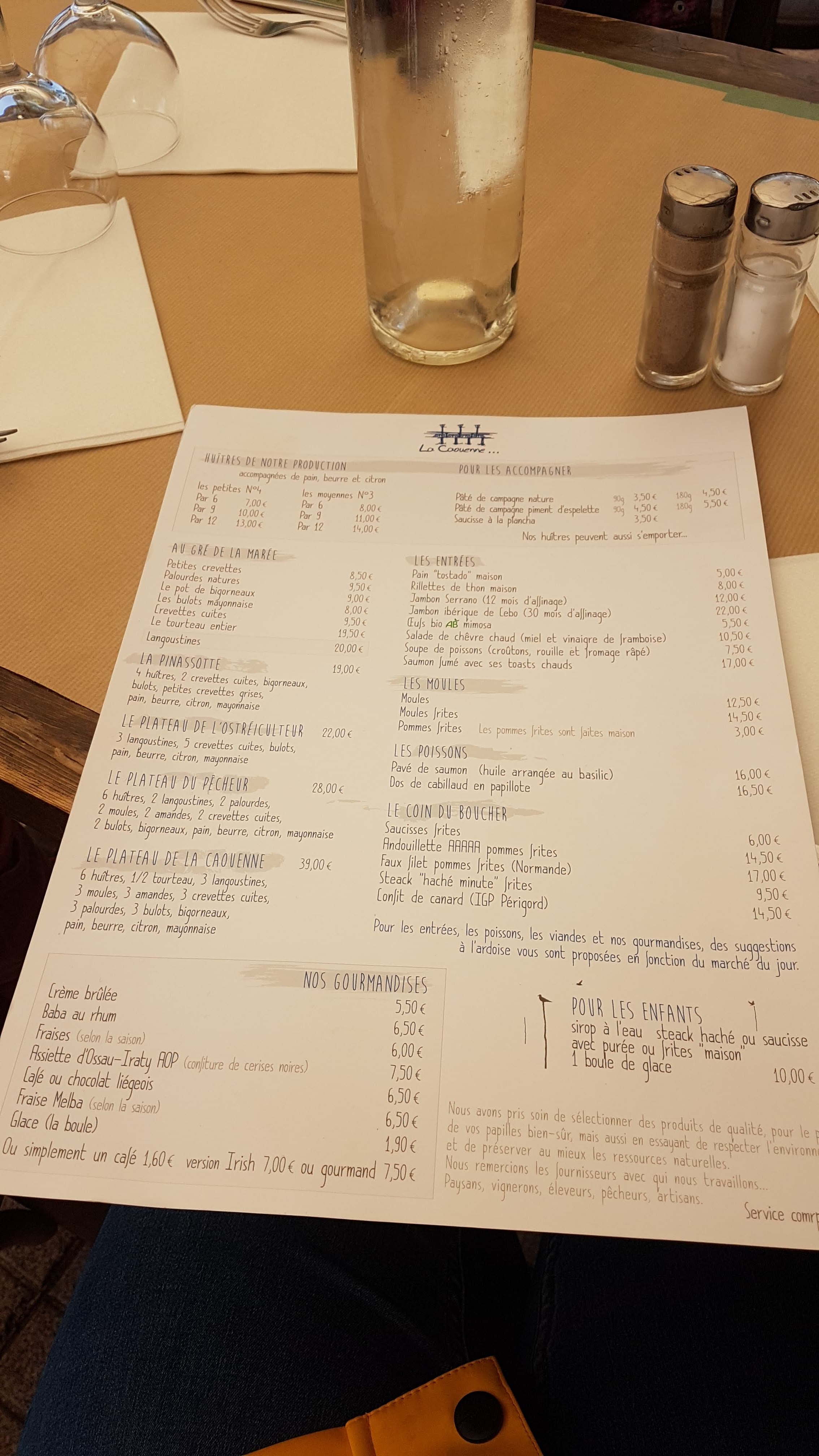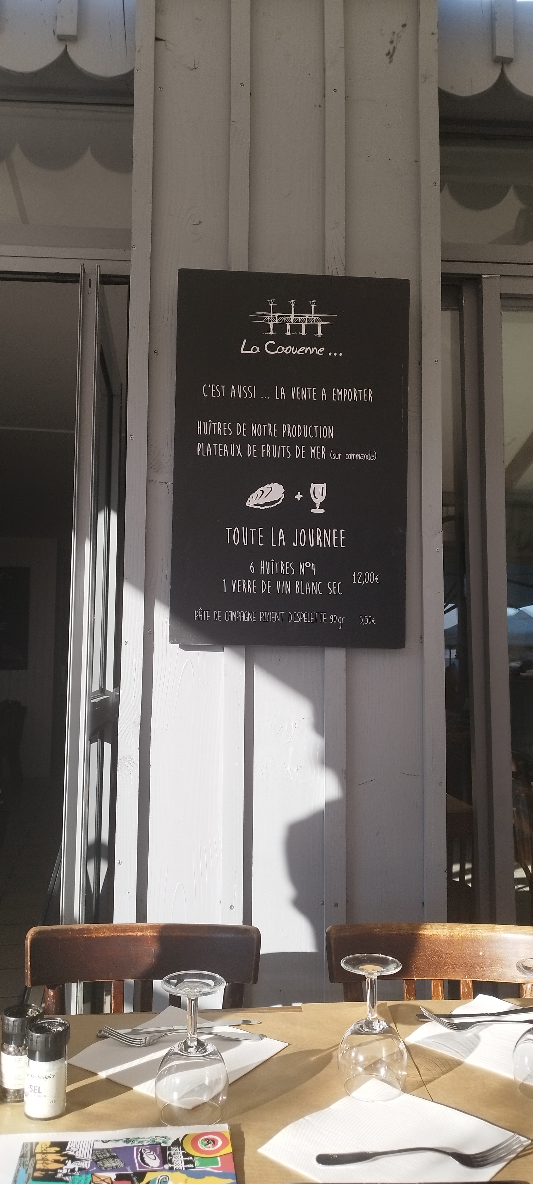 Lieu, ambiance service et plats : supers ! Terrasse face à la jeté, huîtres, moules, tarte aux noix délicieux !