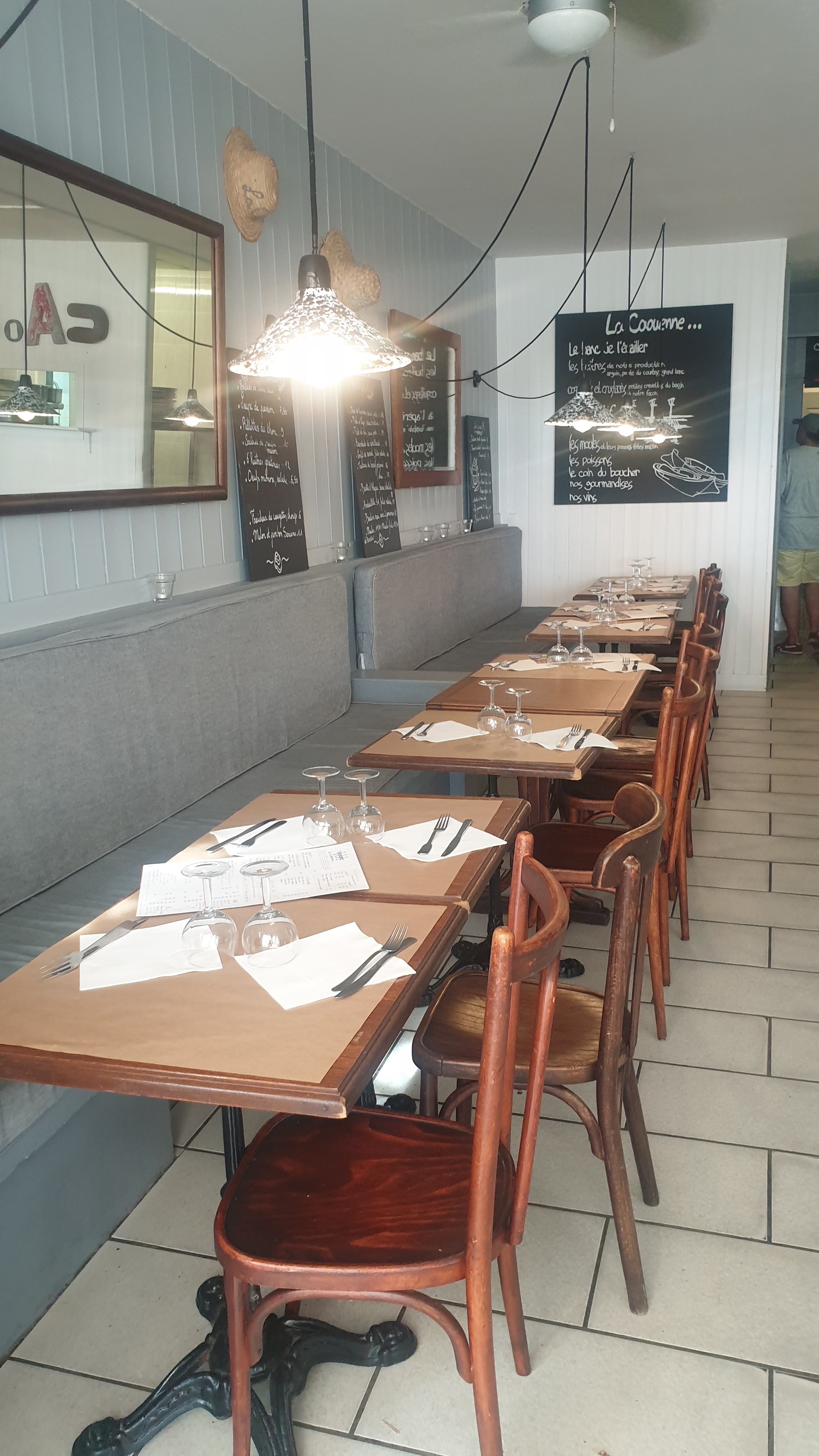Serveur (se) peu agréable (pas tous mais ceux qu'on a eux n'étais pas aimable) le plateaux de fruit de mer pour le prix est clairement abusé.. les fruits de mer n'était pas bon, il n'y a rien en terme de quantités, peu de choix et pour un prix qui avoisine les 50e c'est clairement n'importe quoi. Le restaurant jouis juste d'un emplacement idéale c'est surtout ça que l'on paye, car le cadre/deco et moche, dépassé et vieillot. Certainement pas un restaurant que je recommanderais.
