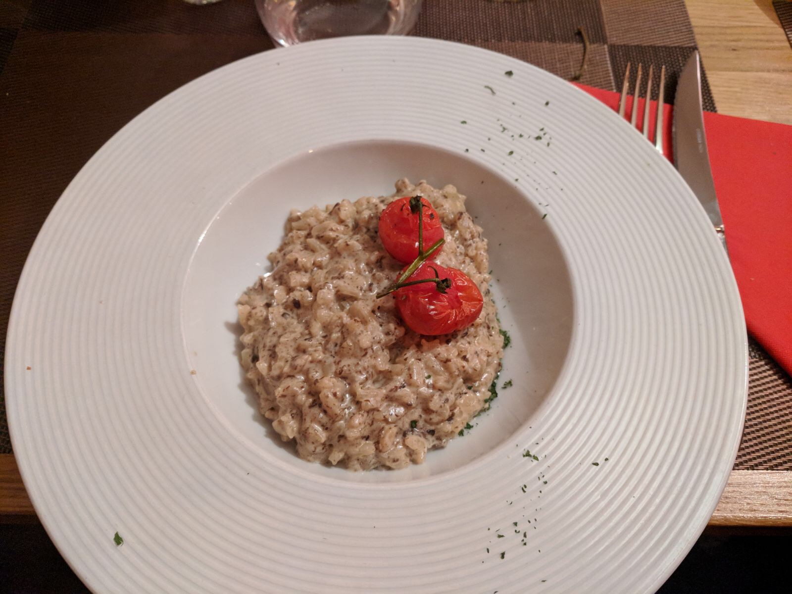 Nous avons eu un risotto tartufe et un risotto parmesan aux crevettes, de première classe ! Nous avons été très satisfaits et le service était rapide et sympathique ! Hautement recommandé!