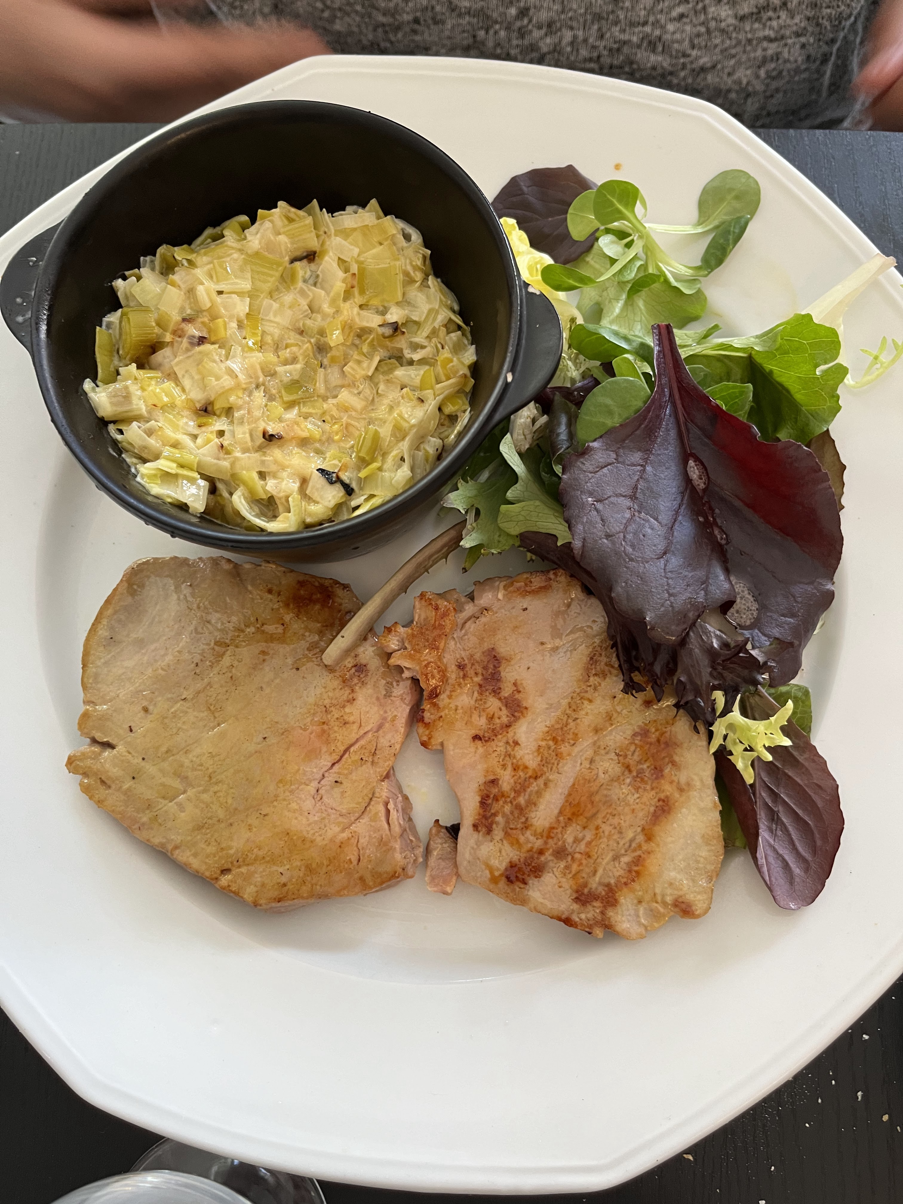 C'est simple et bien cuisiné pour un tarif convenable de 20 € (plat+dessert) Nous étions en terrasse et c'était bien agréable. Le service ce jour là a était très difficile mais c'était semble-t-il dû au désistement d'une serveuse, on ne peut donc pas en vouloir au personnel restant qui a fait tout son possible pour assurer le service et nous les en remercions. Le resto est idéalement situé à proximité du château.