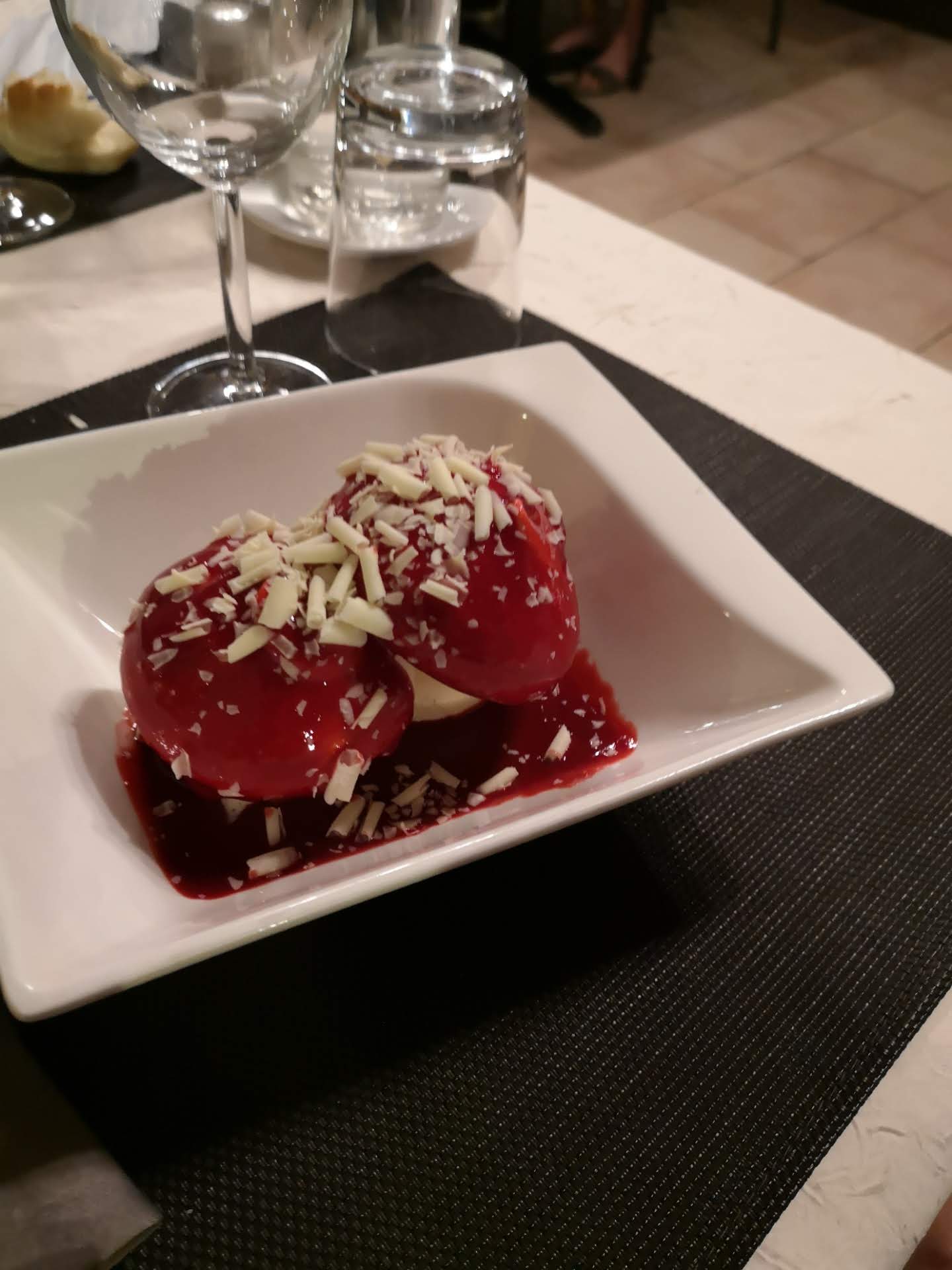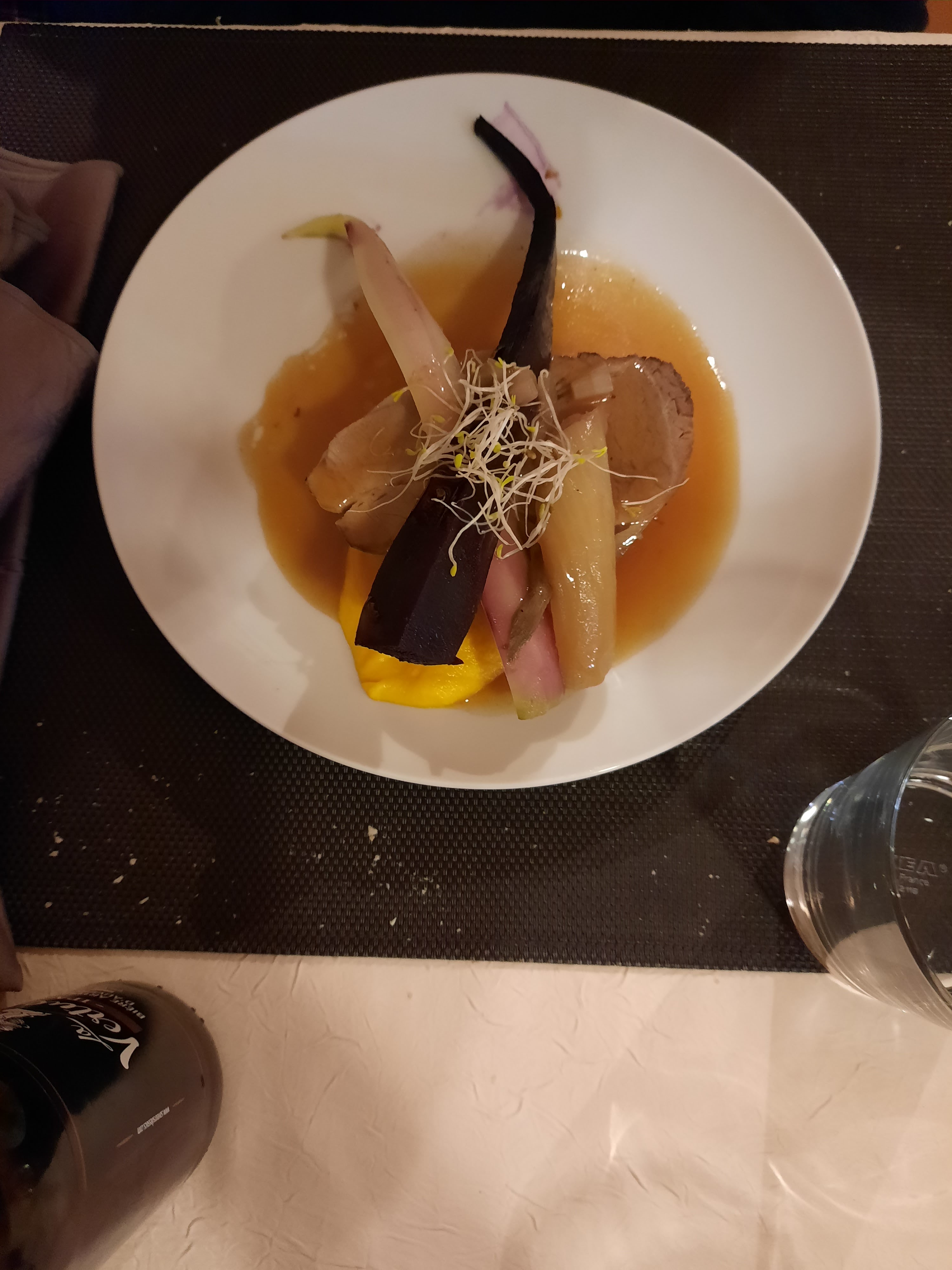 Entrés plat dessert très bon ! Produits locaux ce qui est un gros plus, mais quantité un peu juste ! Les vins sont très chers, comptez 20 ou 30 euros une bouteille de 75cl Nous reviendrons