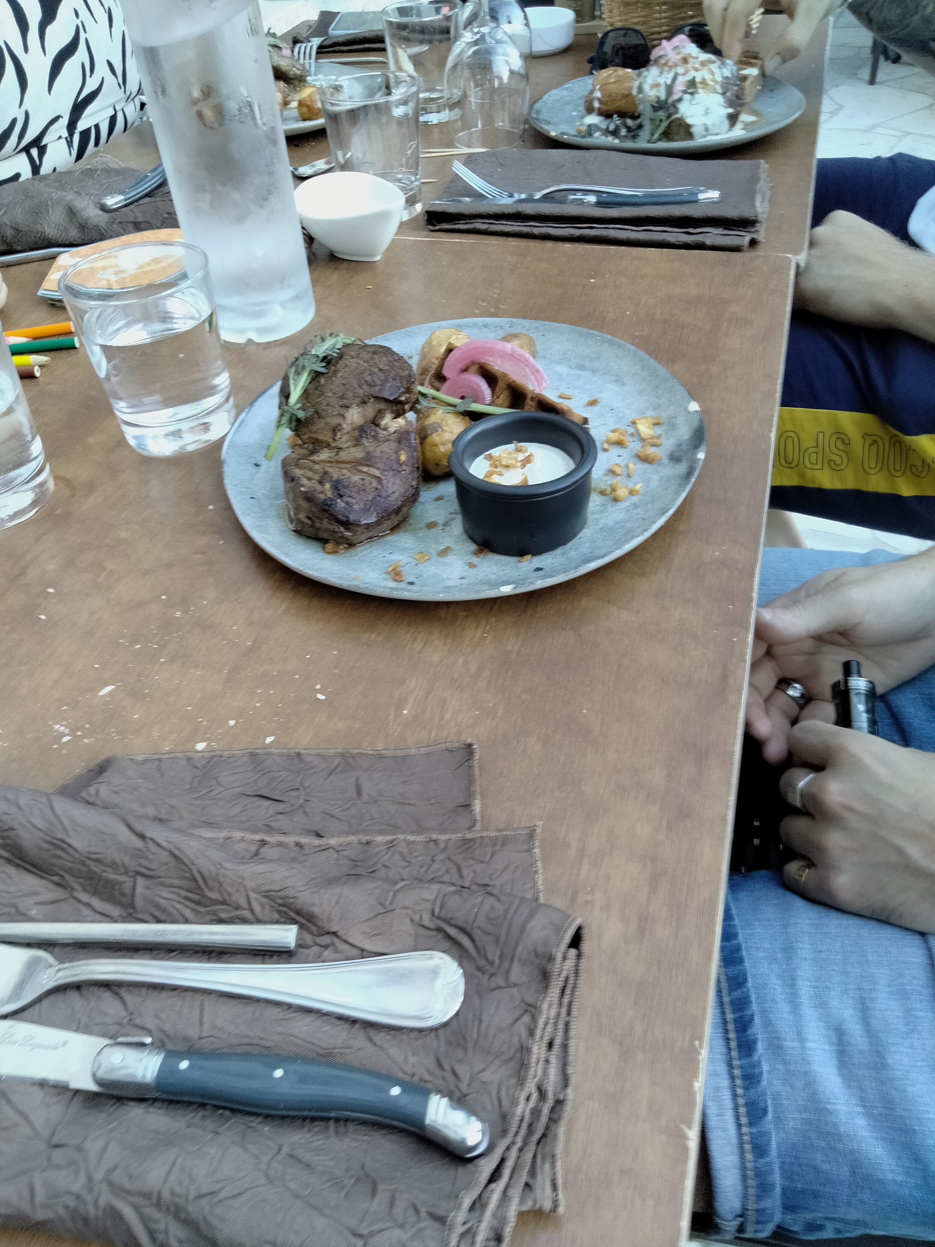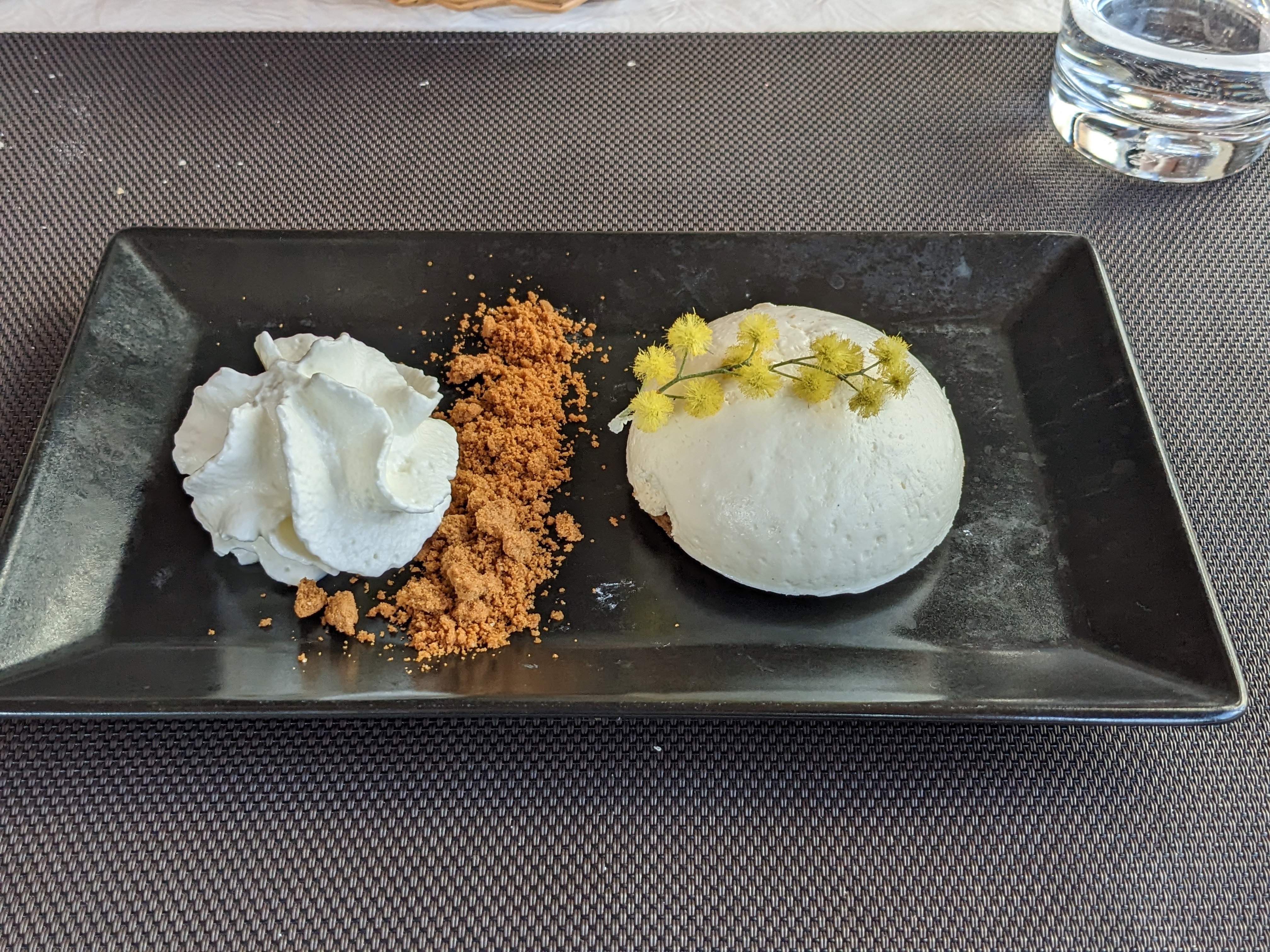 Repas pris en terrasse, le cadre est superbe. La terrasse donne sur le barrage. La cuisine est excellente et raffiné. La carte indique si les plats sont végétariens, sans gluten ou sans lactose, ce qui est vraiment un plus. Très bonne expérience, je recommande!