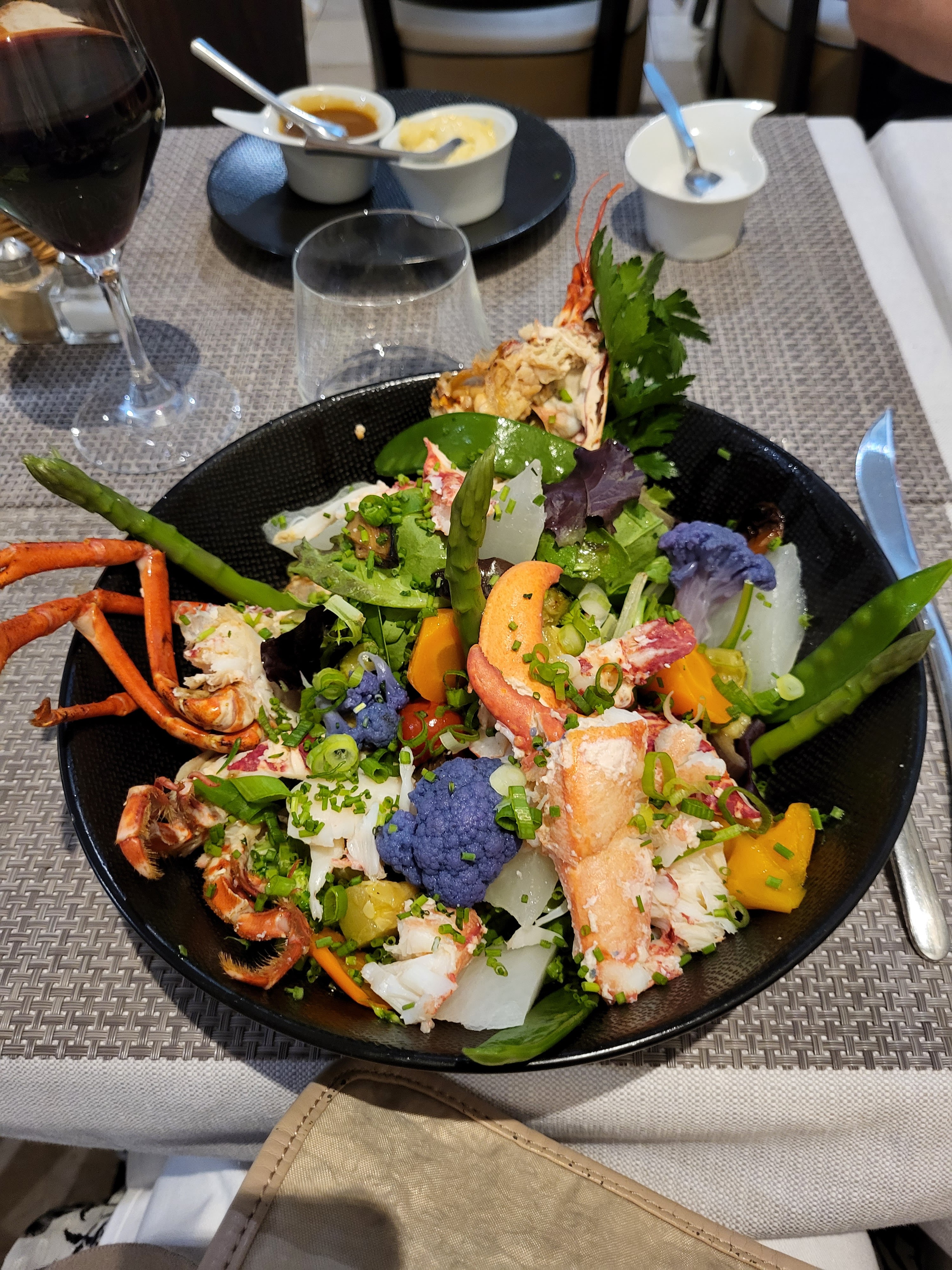 Déjeuner délicieux et copieux, et le service a été impeccable! Deux petites mises en bouche m'ont été offertes pour mon plus grand plaisir. En entrée, j'ai pris la remoulade de Tourteau, et en plat le bar entier grillé. Tout était très bon et frais, ainsi que les petits légumes d'accompagnement. Je recommande!