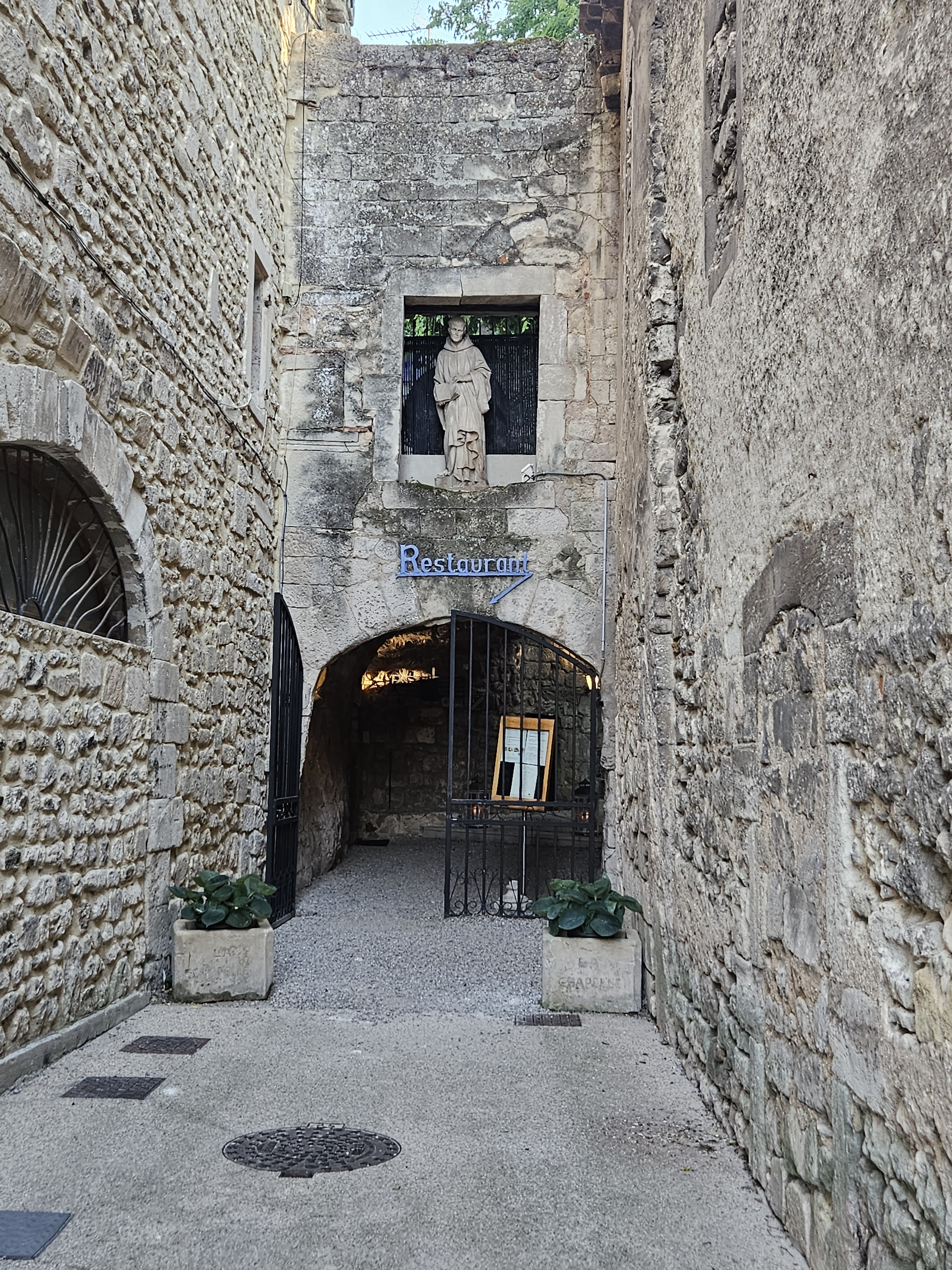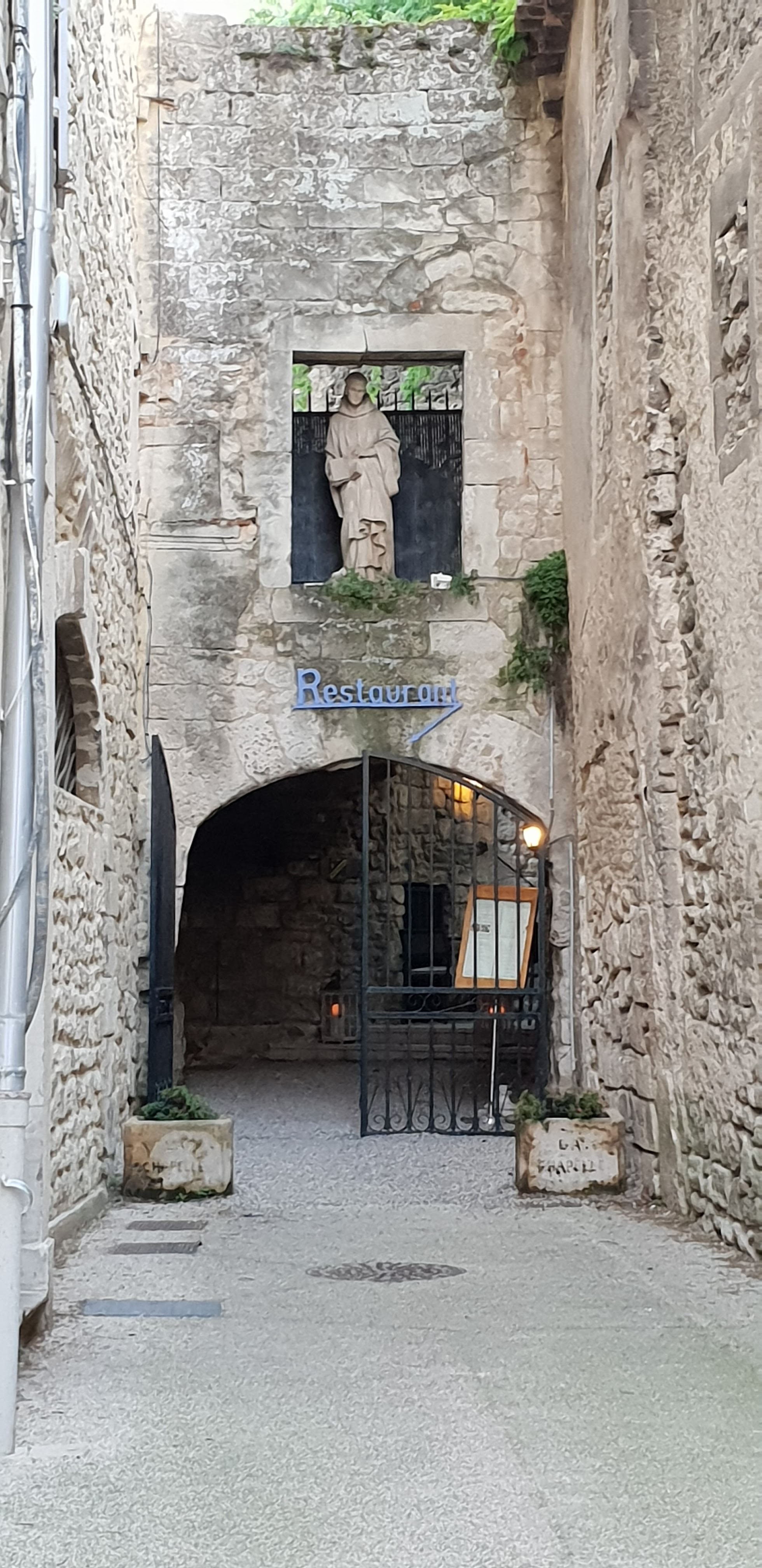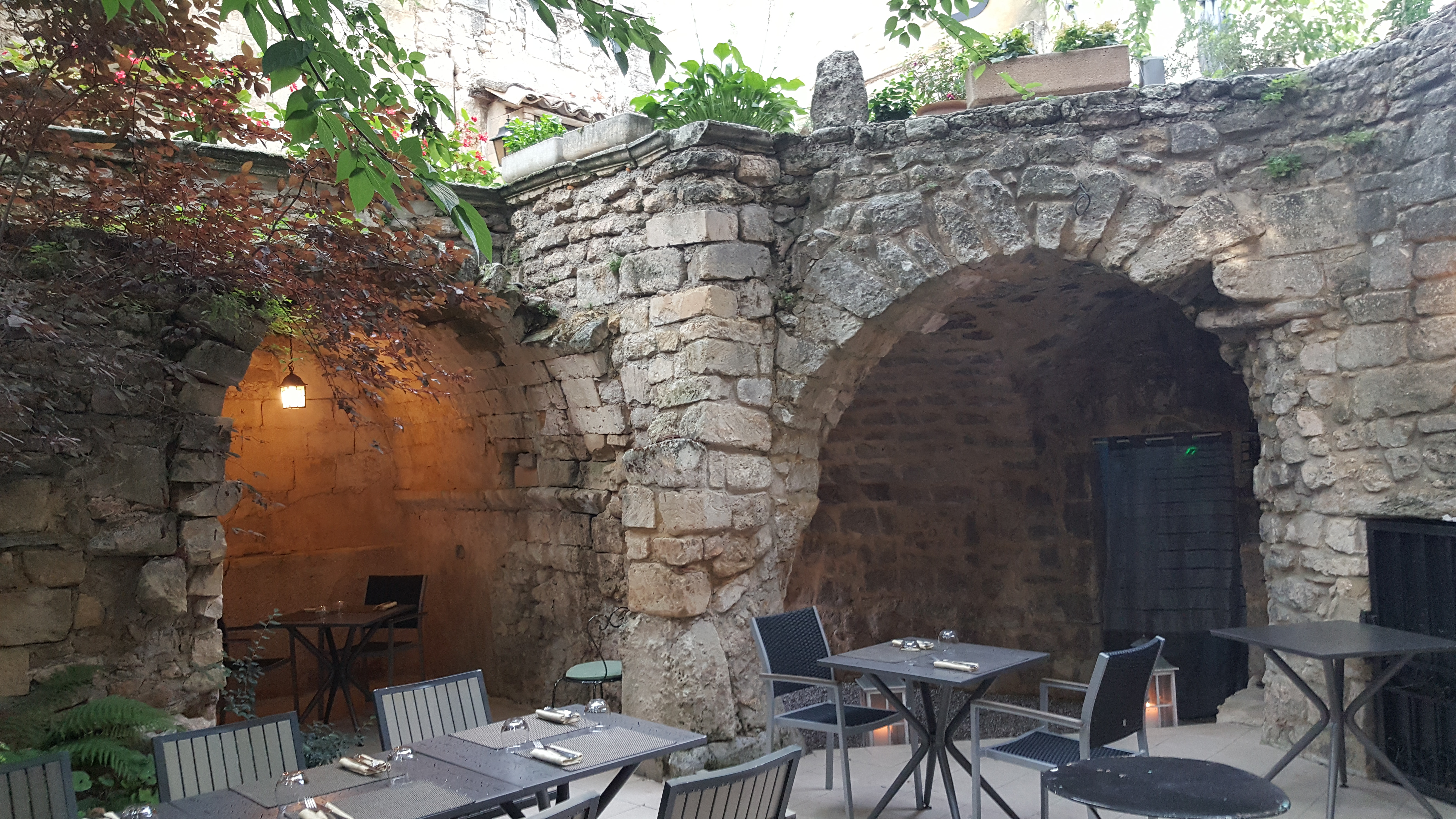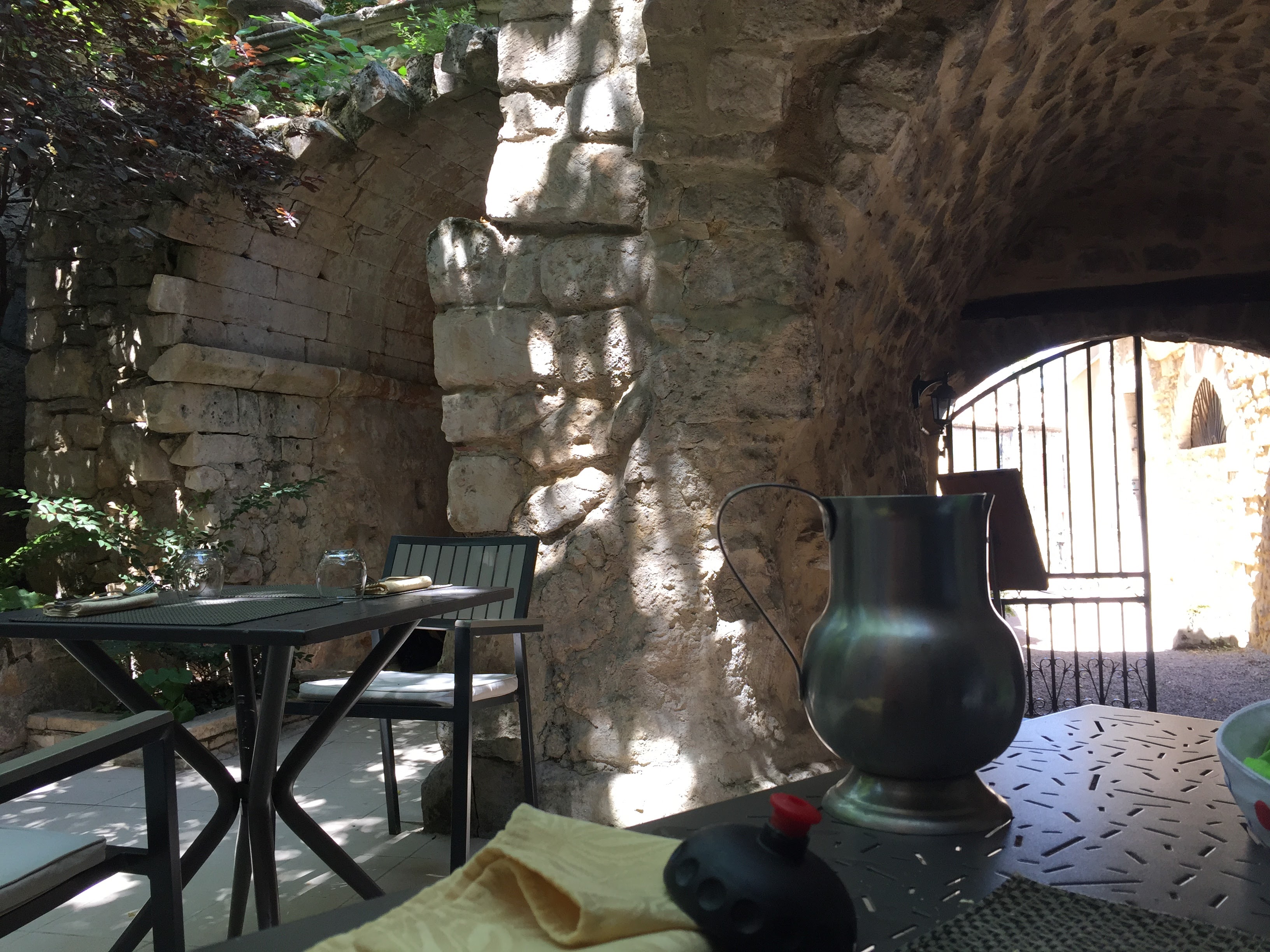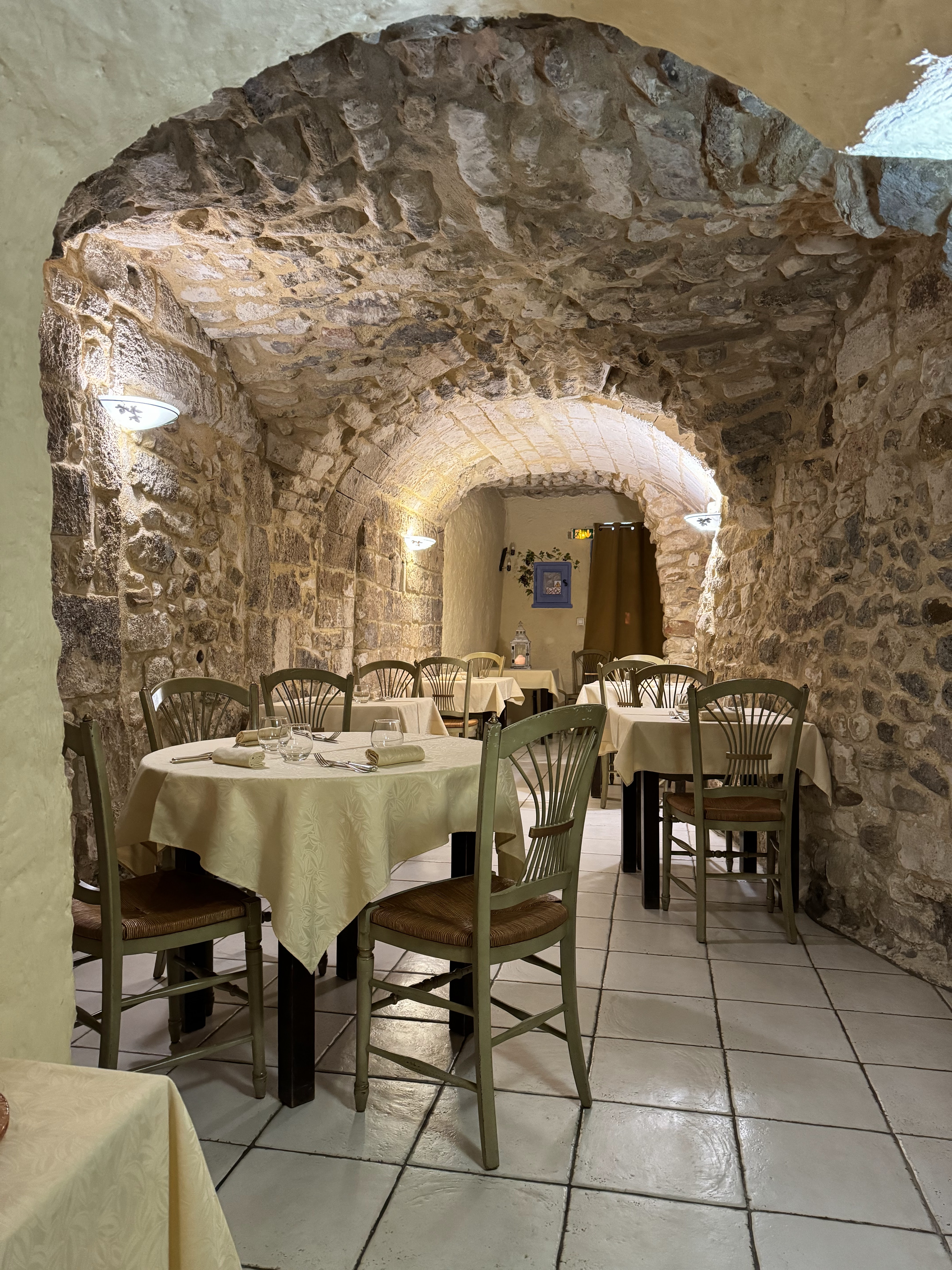 Un restaurant dans un lieu très agréable au milieu de pierre, cave voûtée et terrasse ombragée