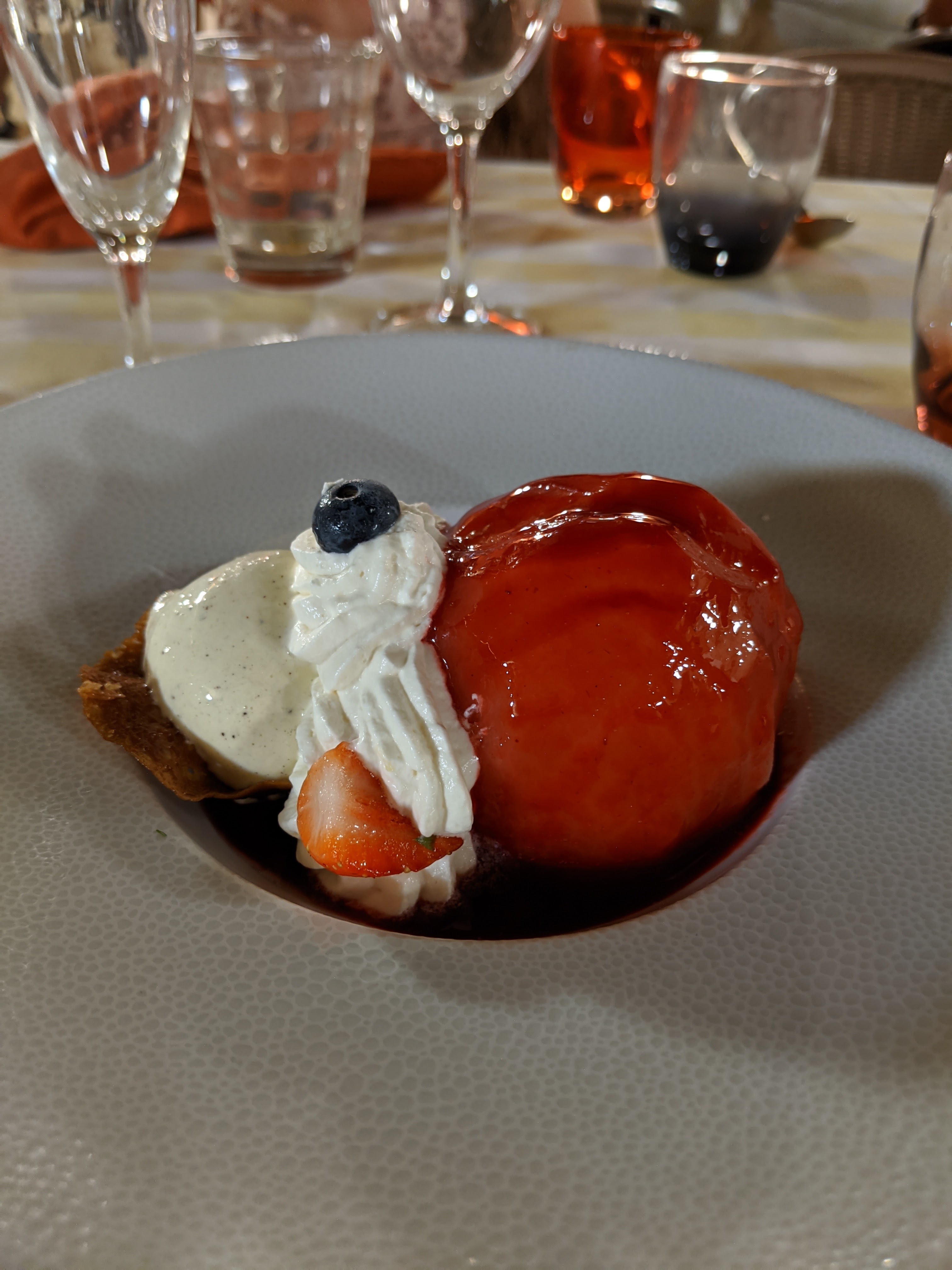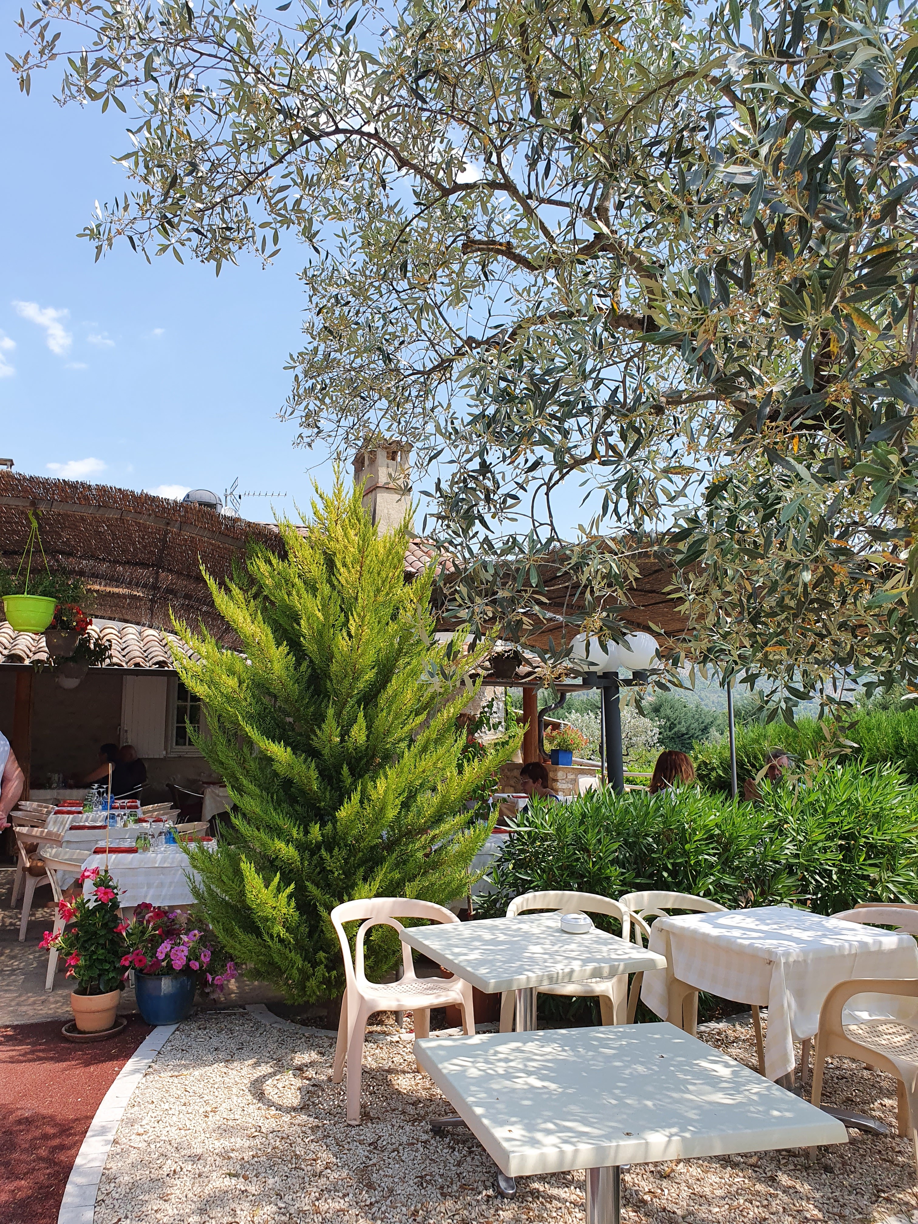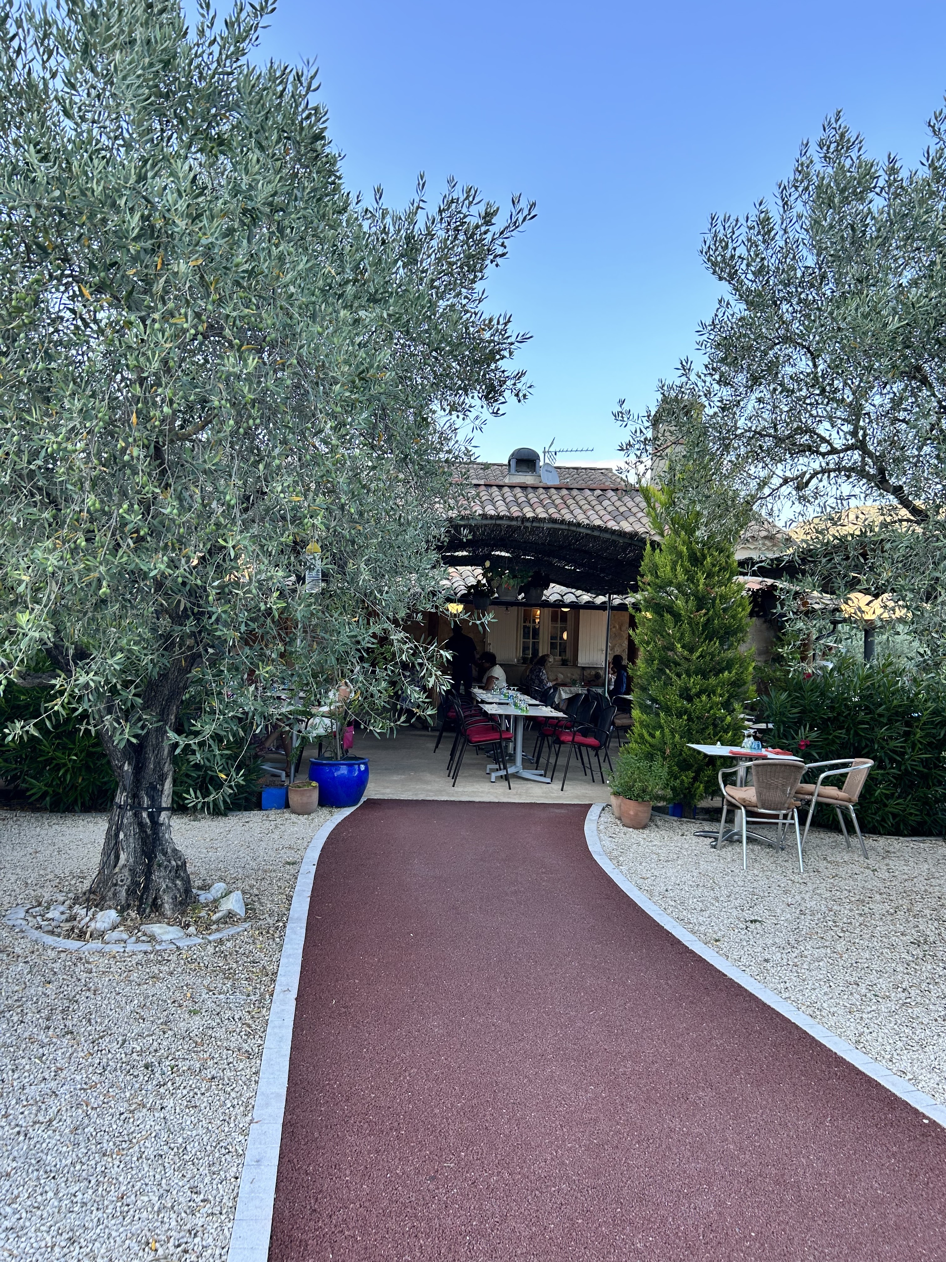 Je ne sais pas par où commencer car en fait tout était excellent, le service, les plats servis, les vins locaux provenant du Domaine de la Bastide à Visan, rosé et rouge. Le beau temps est venu apporter la touche finale.