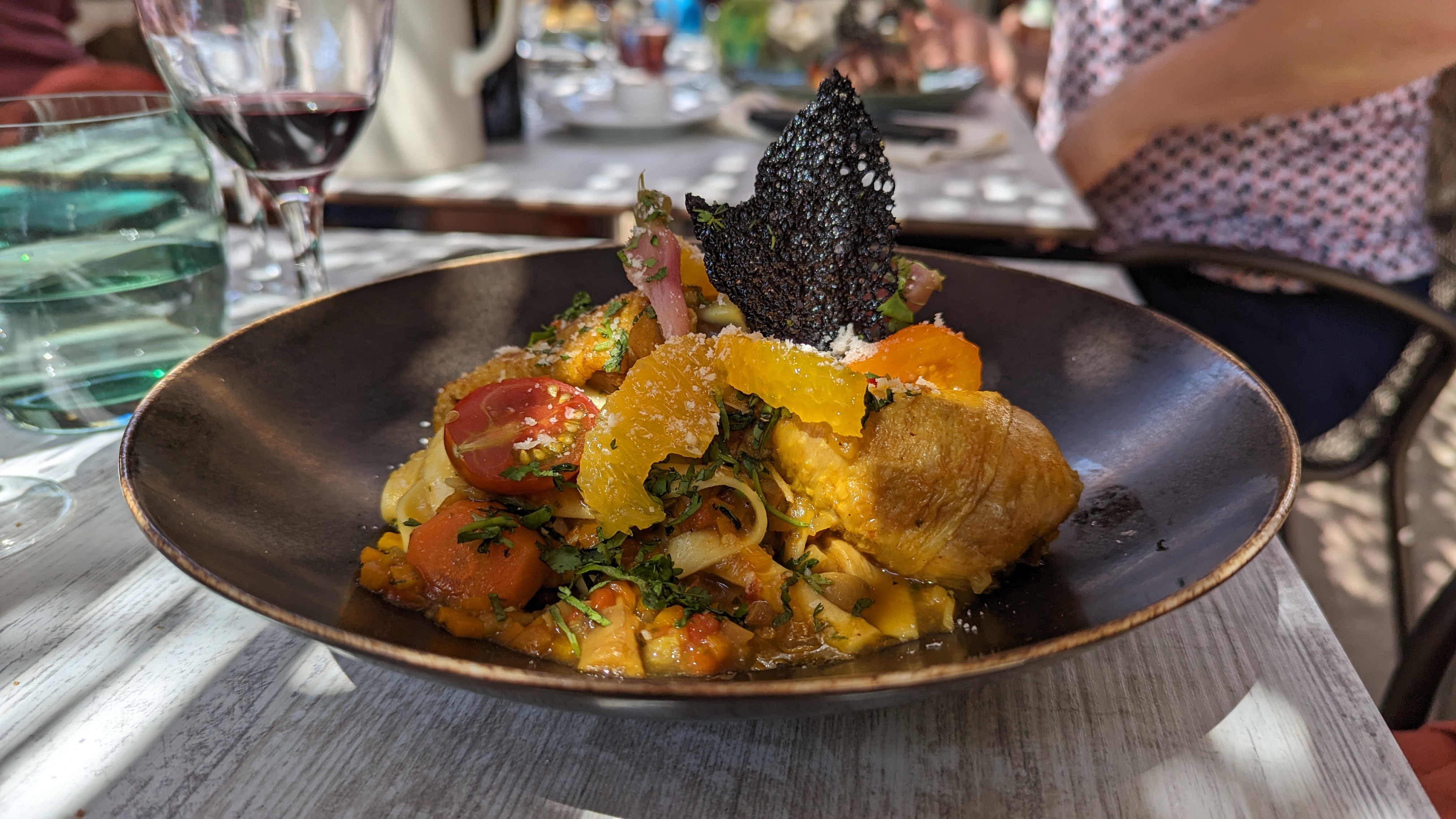 Nous avons redécouvert ce restaurant quatre à cinq années après notre dernière visite. Le beau temps nous a permis de déjeuner sous la jolie tonnelle. Les assiettes sont délicieuses, et une très jolie présentation donnant envie. Un seul petit bemol quelques épices orientales qui (pour nous) ne s'imposent pas. Nous y reviendrons.... ça s'est sur !!!
