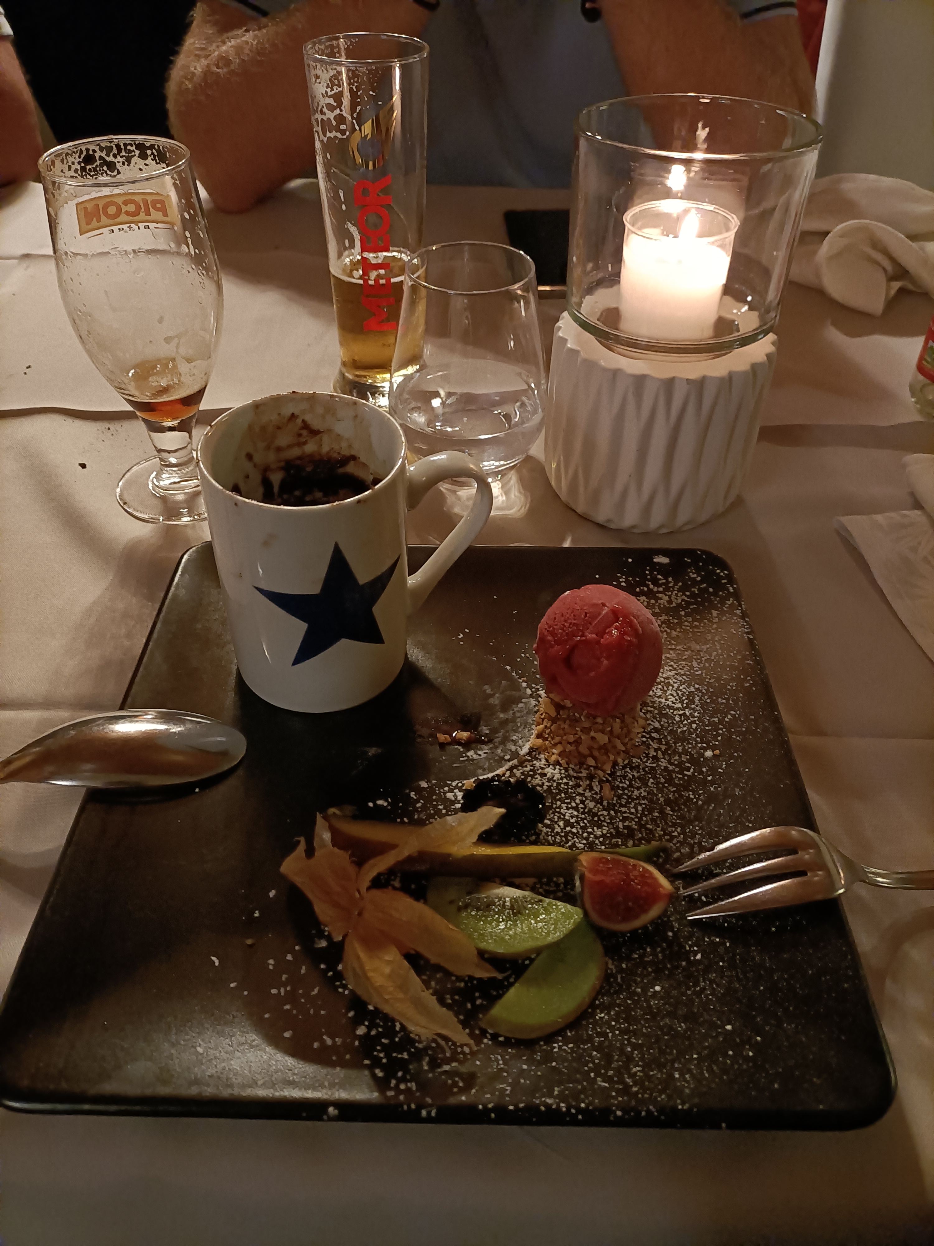 Nous y avons dîné avec Yolande, famille et amis. C'était super 🤩. La tarte flambée était un rêve, l'ambiance faisait du bien et ma belle-mère a eu une sérénade pour son anniversaire. Nous nous sommes sentis complètement chez nous et nous reviendrons certainement ! Un grand merci à la super équipe !