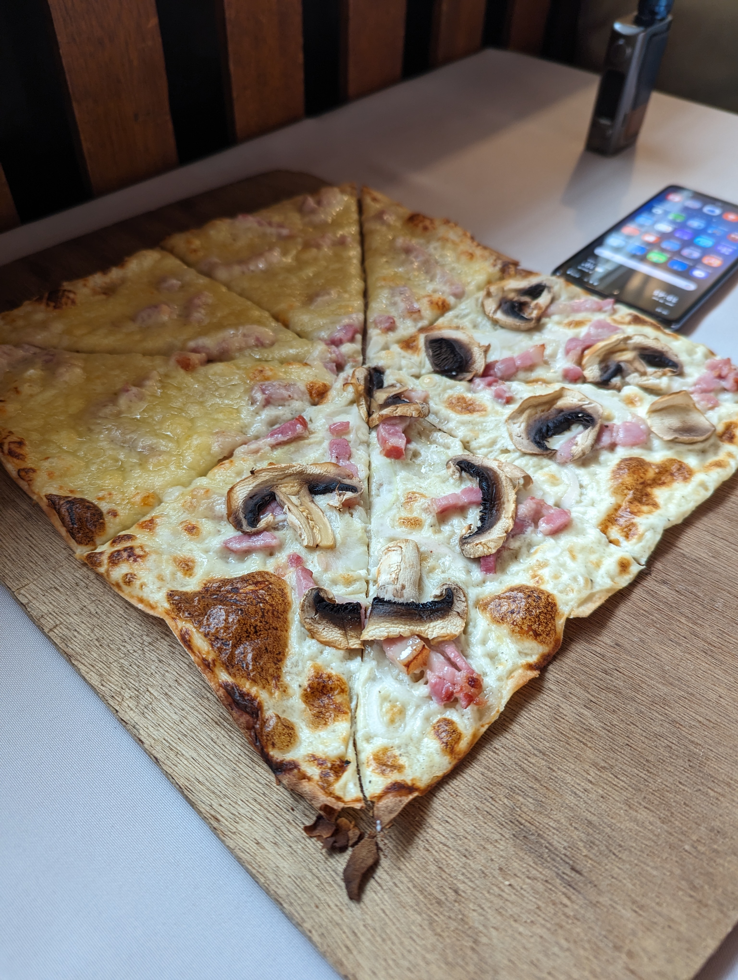 Très bonne tarte flambée et les pizzas une tuerie !!!!