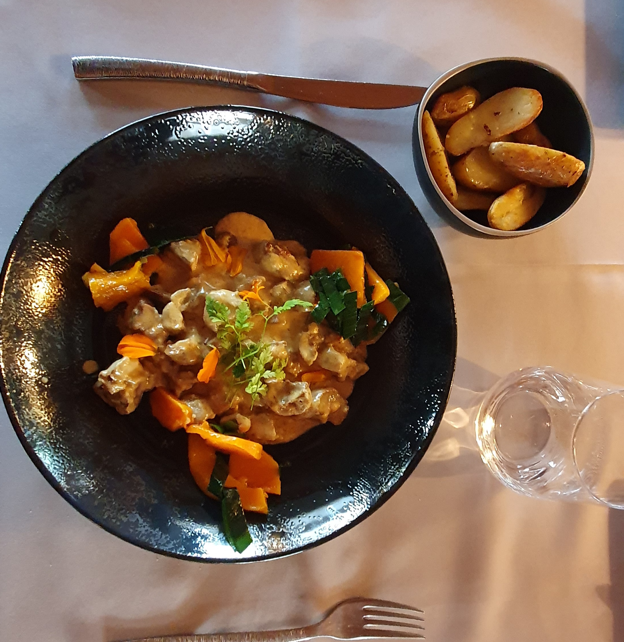 Lieu sympathique , service pro ! Le petit velouter après 10 minute une surprise goûteuse que ma fille de 7 ans a adorer ainsi que nous ! Rumsteck bleu légume frite excellent et le risotto aux coquilles saint jaques un régale ! Ont reviendras 🤤 ☺️ plat enfant escalope frite sa change des nuggets 😂😀 merci 🙏