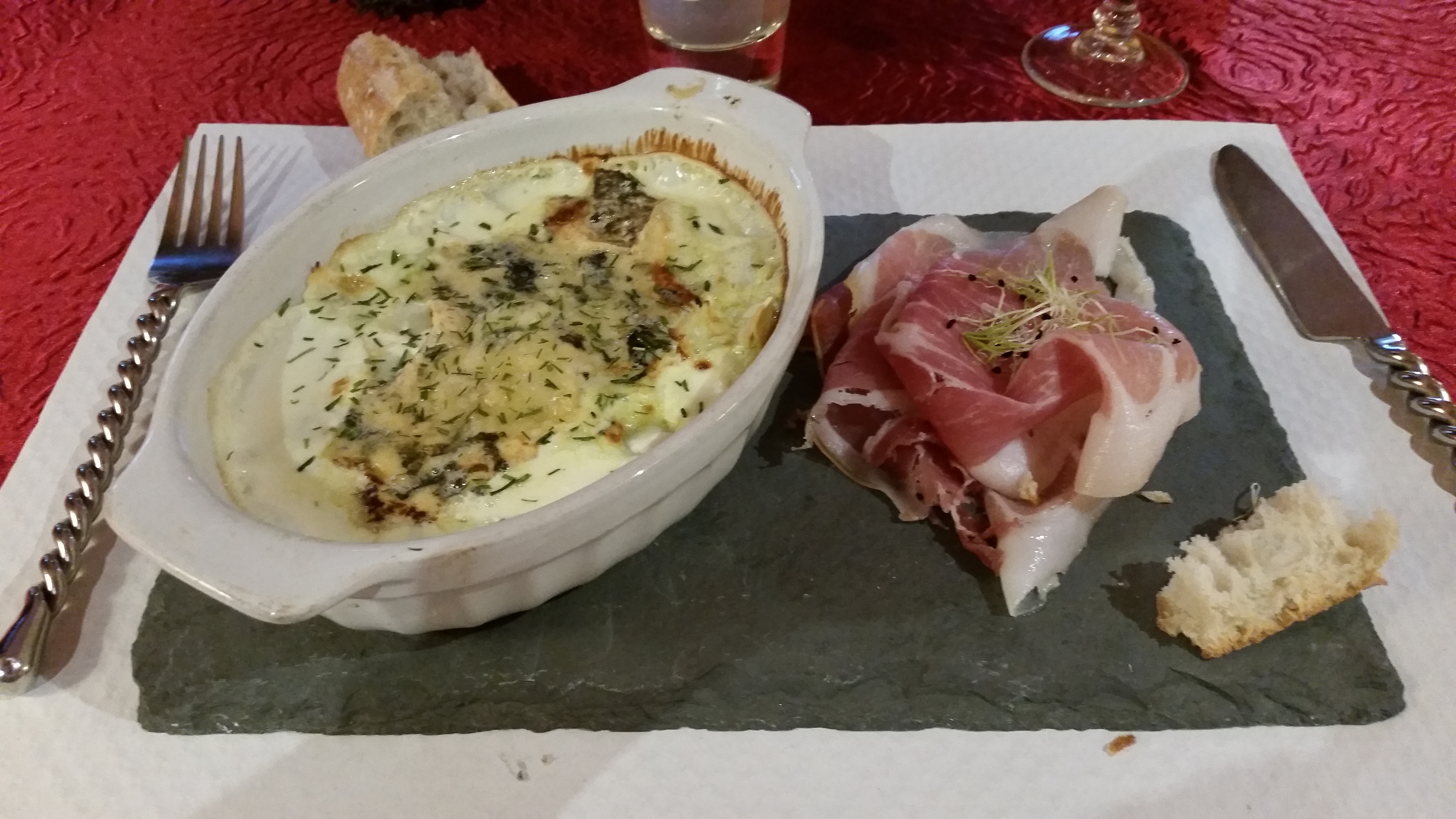 Excellent !!! Très bon repas!!! Cassolette savoyarde (jambon, pain, oignon, crème et fromage à raclette) et gratin de ravioles au bleu et jambon cru succulents !!! Le tiramisu, le fromage blanc à la myrtille et la coupe glacée à la vanille et aux marrons tout aussi excellents. Très bon accueil !!! À refaire sans hésiter dès notre retour dans la région !!!
