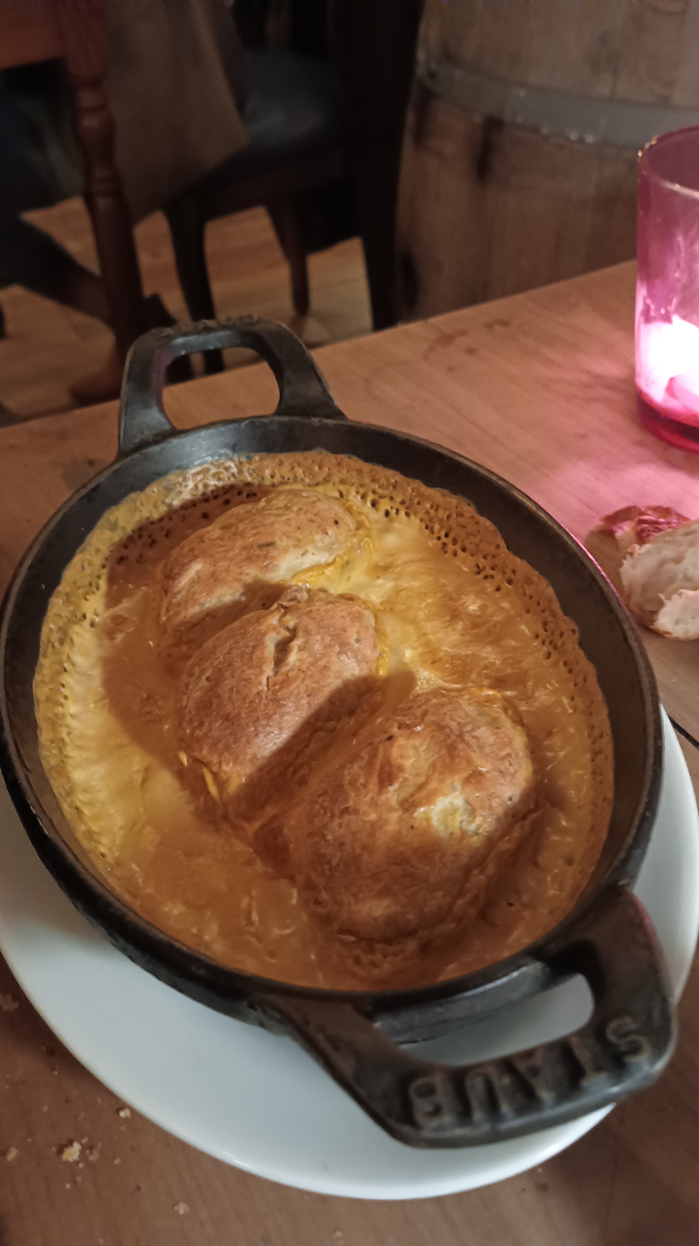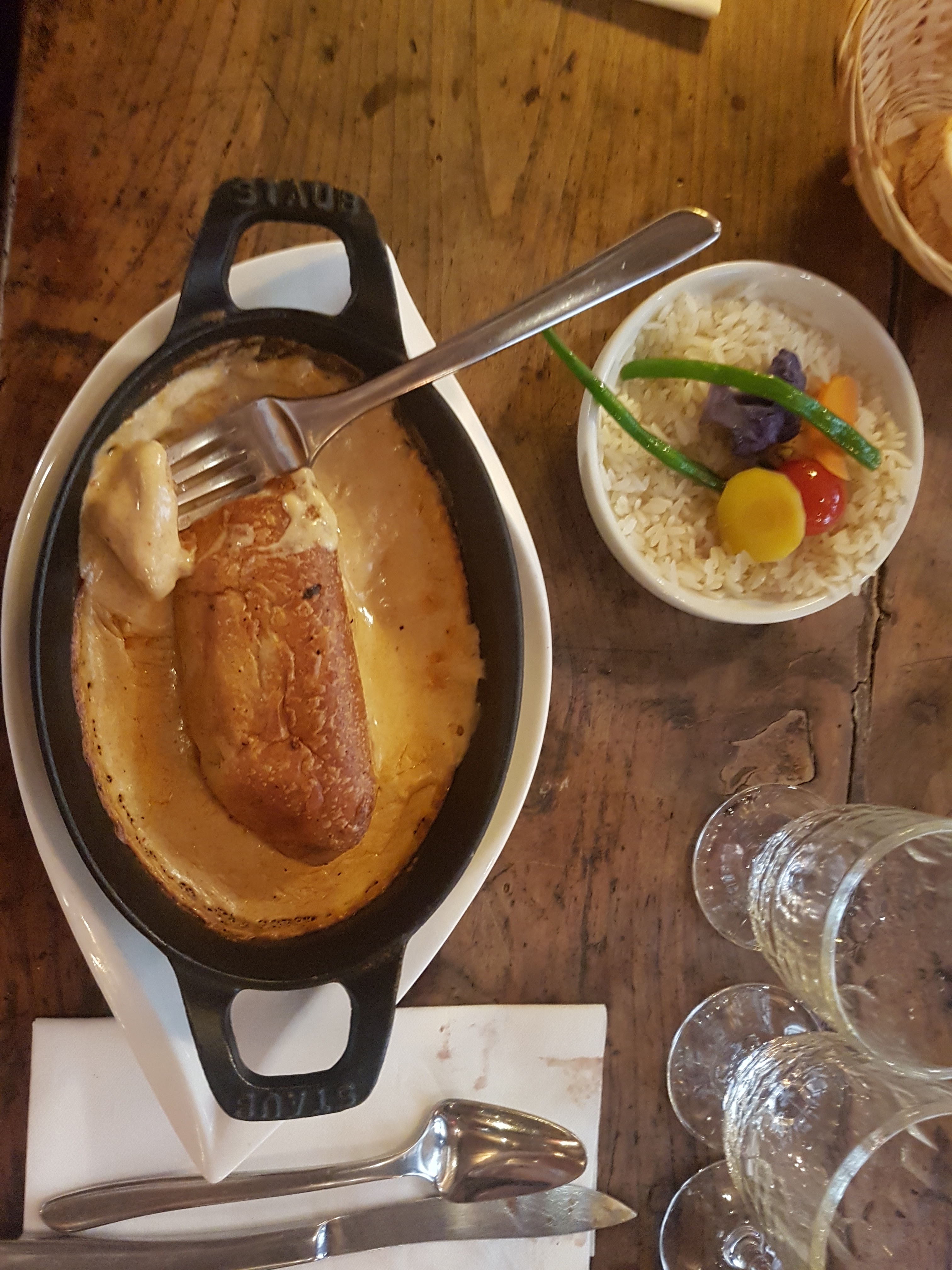 Cadre vraiment dépaysant,atypique ,très joli . Personnel agréable et souriant. Concernant le repas impeux cher pour un plat principal œufs meurette ( 2 œufs comme pour une entrée) + un kir en apéritif + un verre de vin rouge du pays et un café. Environ 28e.