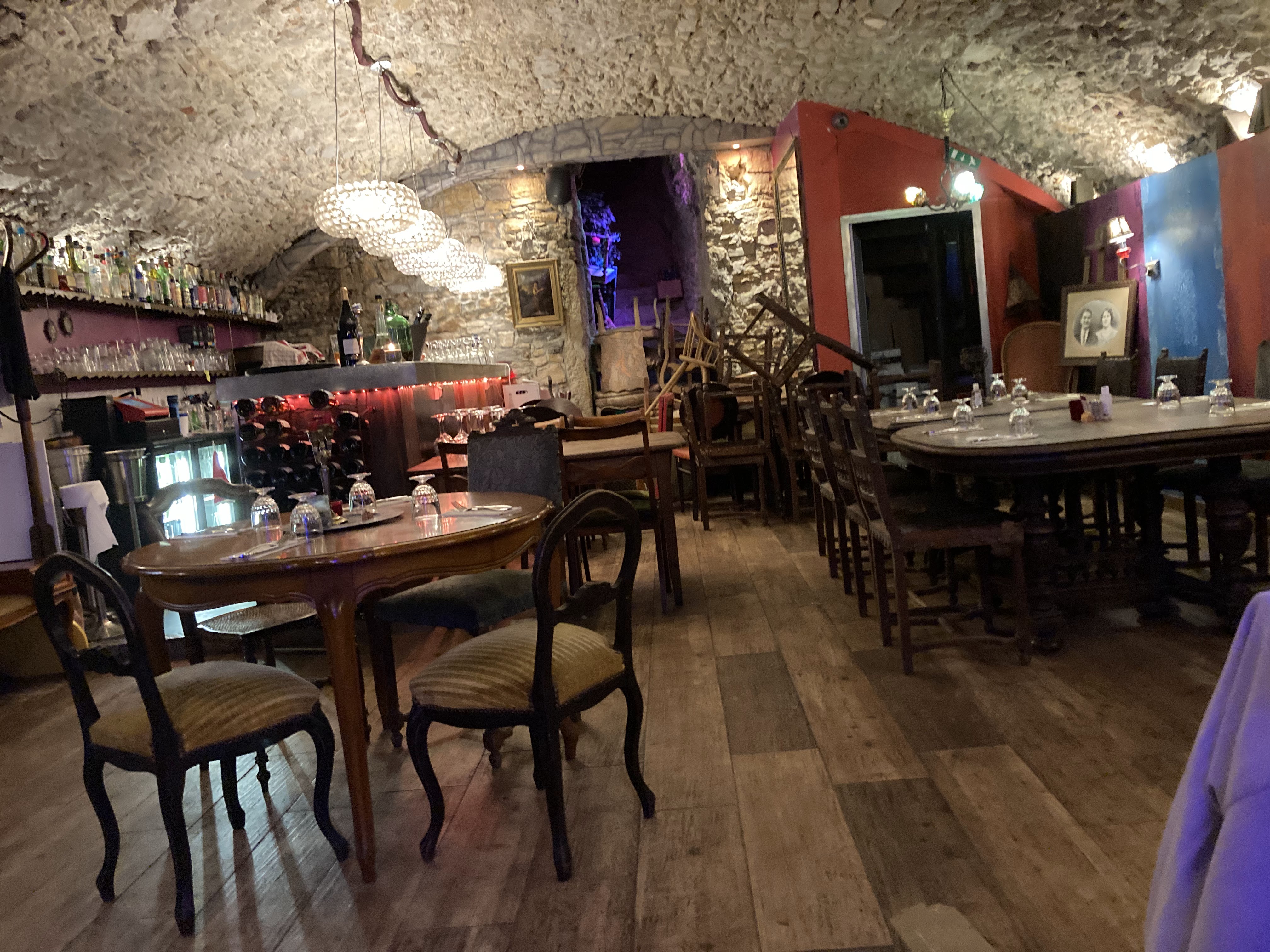 Restaurant au décor atypique où les objets du siècle dernier sont exposés le long des murs en pierres et sous un plafond en bois authentique. D'ailleurs vous mangerez sur des vieilles tables tordues par les années qui confèrent au lieu un peu plus de rusticité. Cette ambiance tamisée séduit et pose le décor d'une cuisine traditionnelle et majoritairement locale bien maîtrisée à l'instar de cet œuf meurette poché à la perfection. Mais vous pouvez optez pour la fantaisie d'une fondante souris d'agneau façon tajine. La carte et les menus proposés sur le site internet du restaurant ne sont pas actualisés. À ce jour, vous pouvez choisir entre 3 menus à 18€90, 22€90 et 28€90 en plus des mets proposés à la carte. Même si les plats sont différents pour certains, l'esprit reste le même.